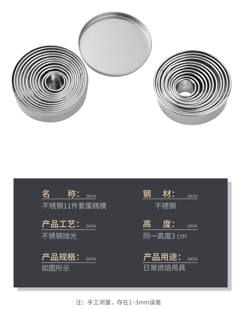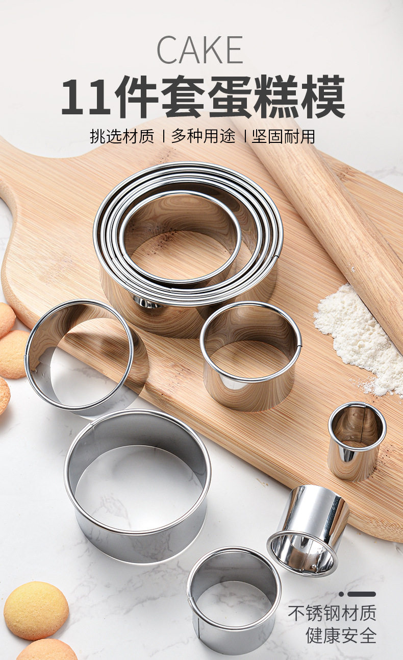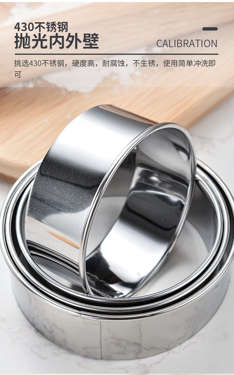 Round Cutting Mold Mousse Ring Stainless Steel Cake Mold Tower Ring Bubble Cup Tiramisu Fruit Cutting Mold Baking