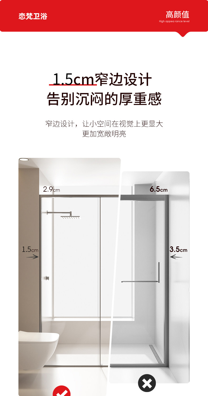 Extremely Narrow Buffer-Type Linear Shower Enclosure with Dry and Wet Separation, Glass Partition, Bathroom Sliding Door, Shower Screen