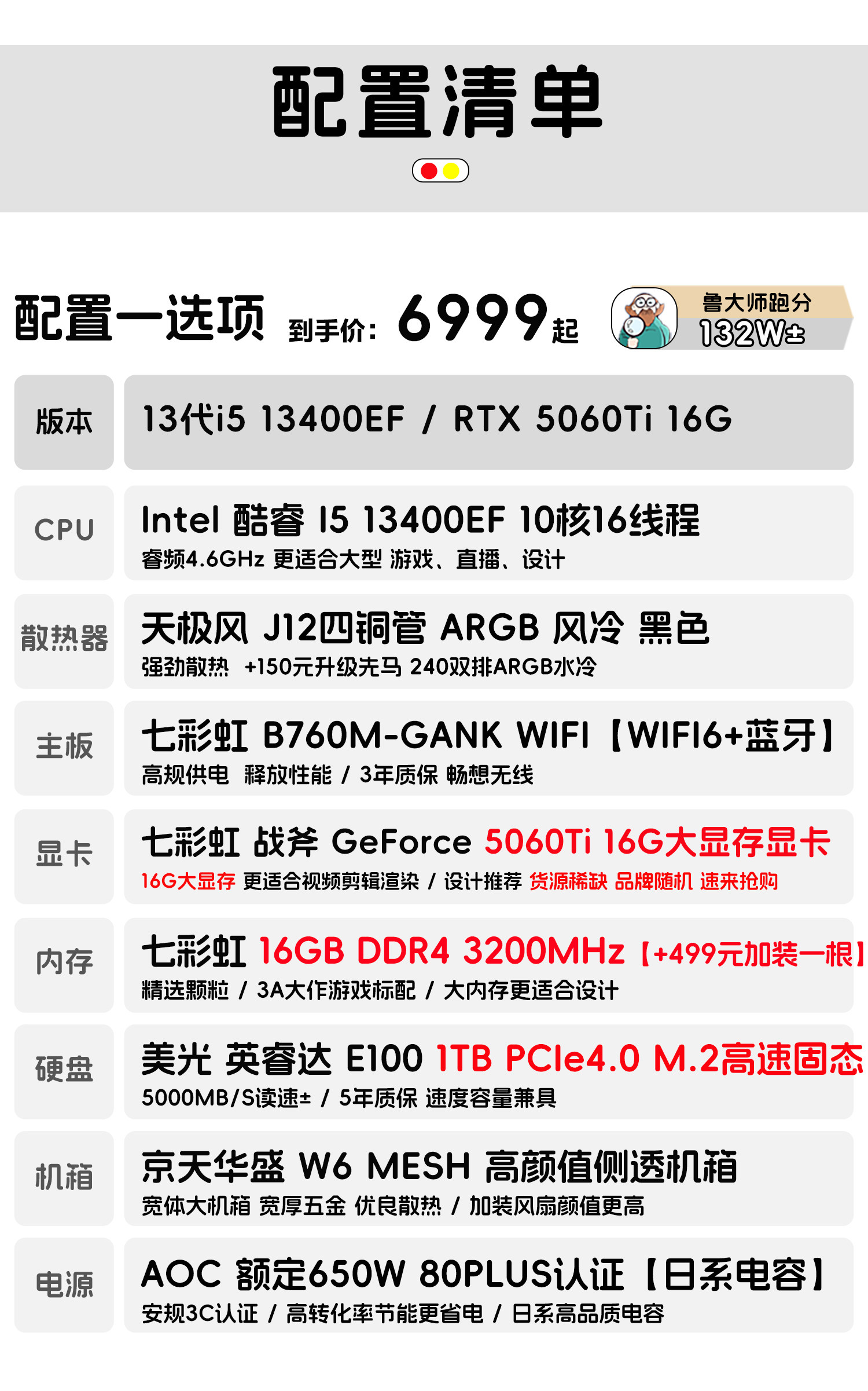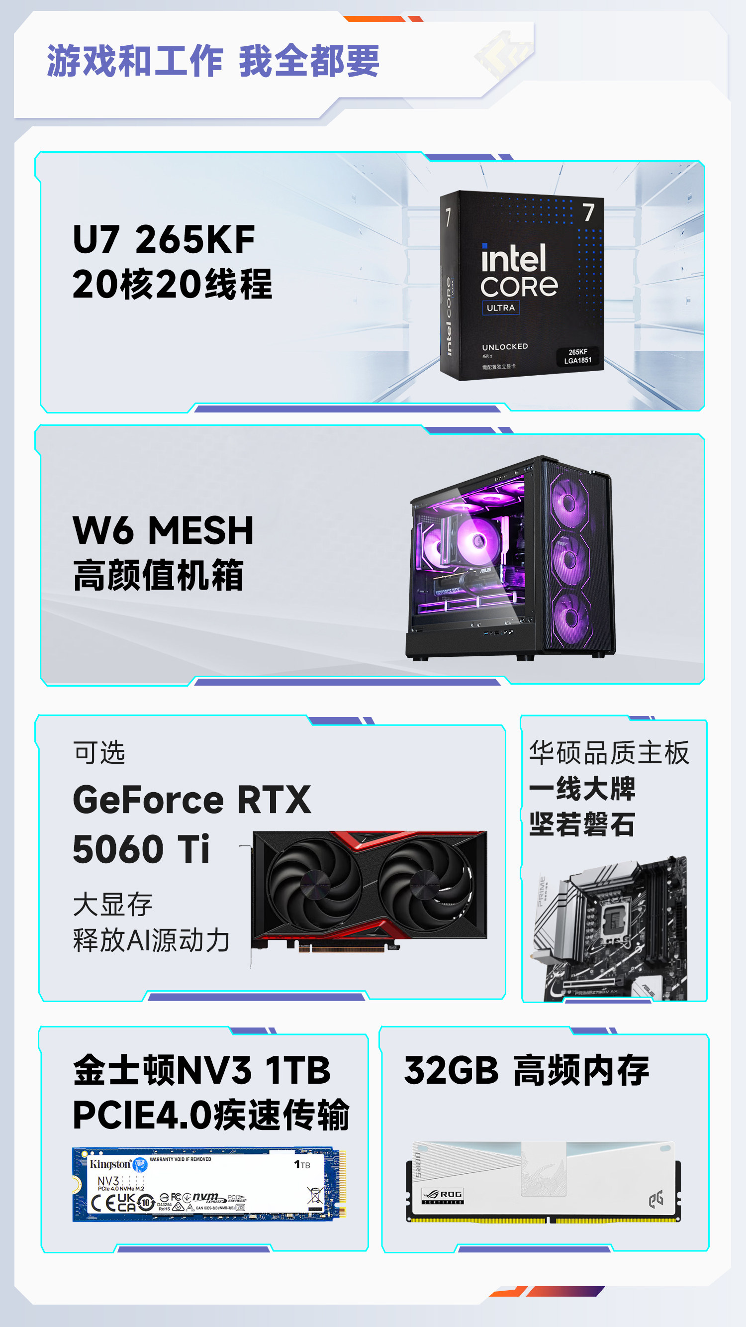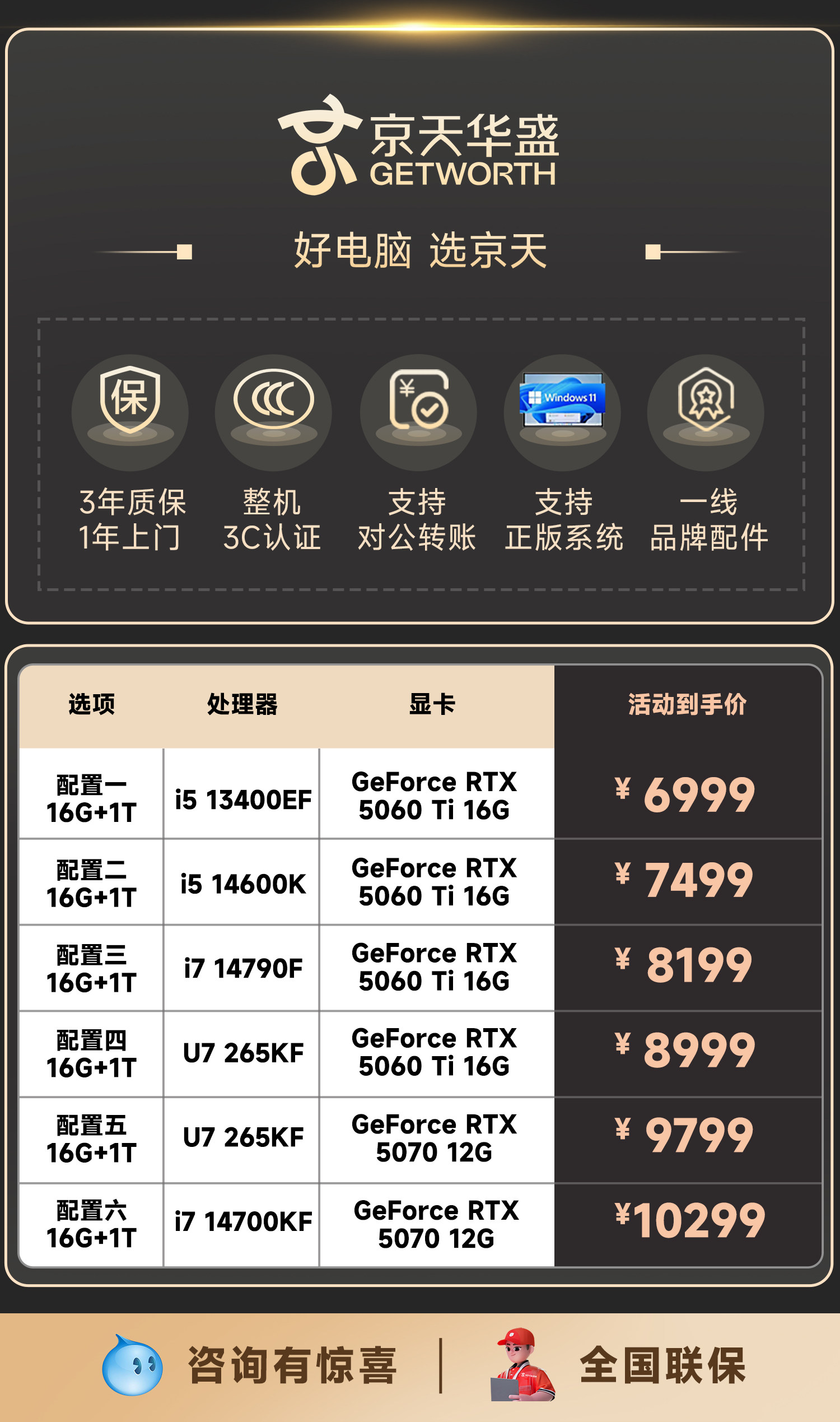 [National Subsidy 10% + 16g Video Memory]Jingtian Huasheng I7 14700Kf/I5 14600Kf/Rtx5060Ti Complete Computer for Modeling and Design, DIY Assembly Gaming Brand Desktop Computer