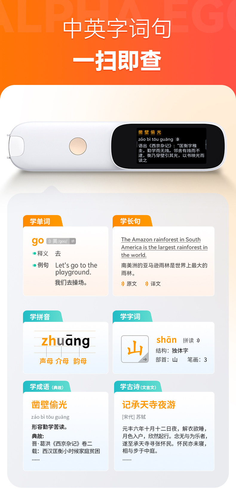 Alpha Egg Dictionary Pen D1S/D1Plus Electronic Dictionary English Reading Pen Official official store English Learning Tool for Primary and Secondary Schools Translation Pen Word Pen Scanning Pen Reading Pen