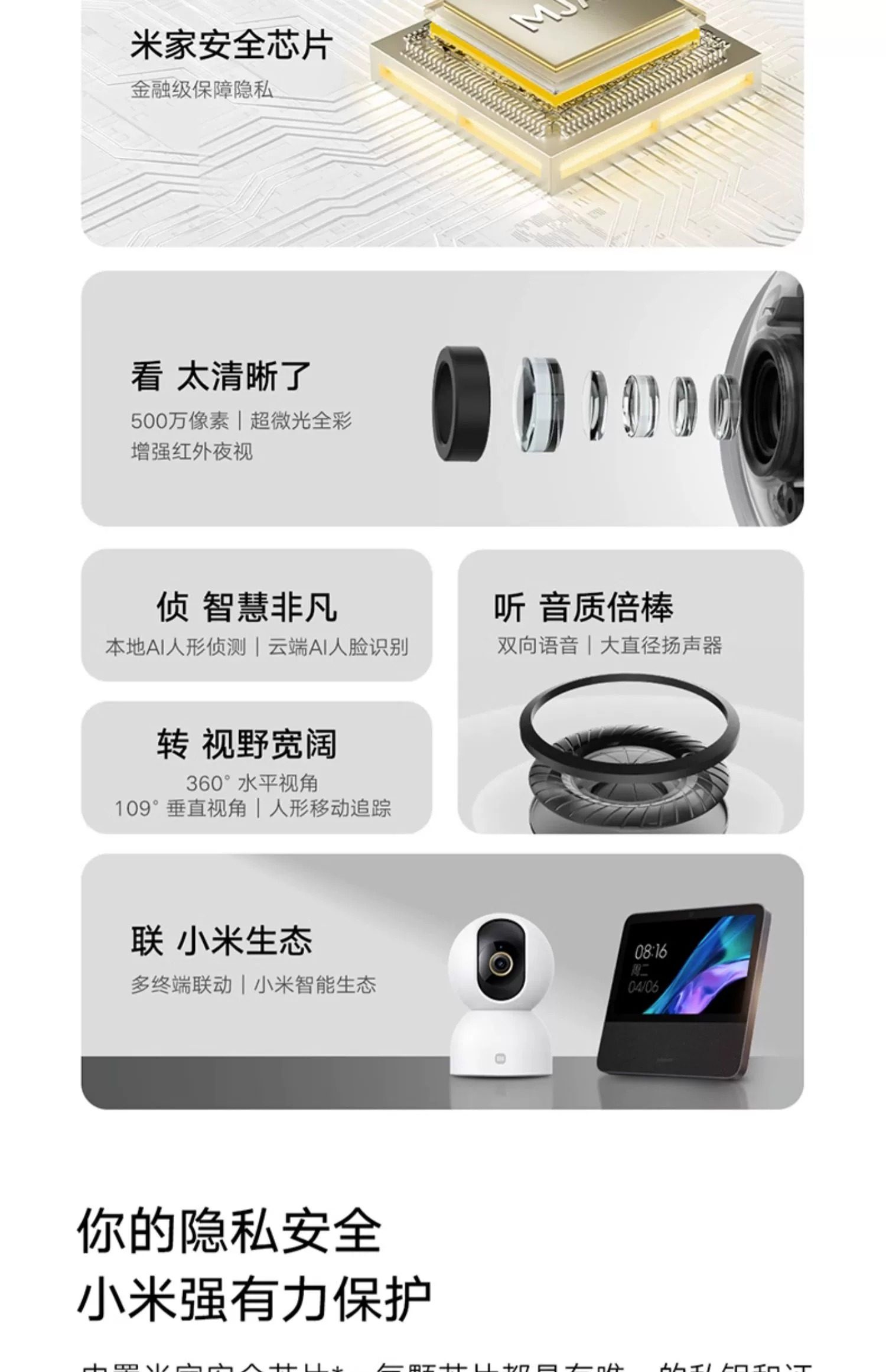 Xiaomi Smart Camera 3 Pan-Tilt Version 5Mp Monitor Hd Kit Indoor Home Wireless Wifi Connectable to Mobile Phone Remote 360-Degree No Blind Spot Night Vision Pet Monitoring Camera