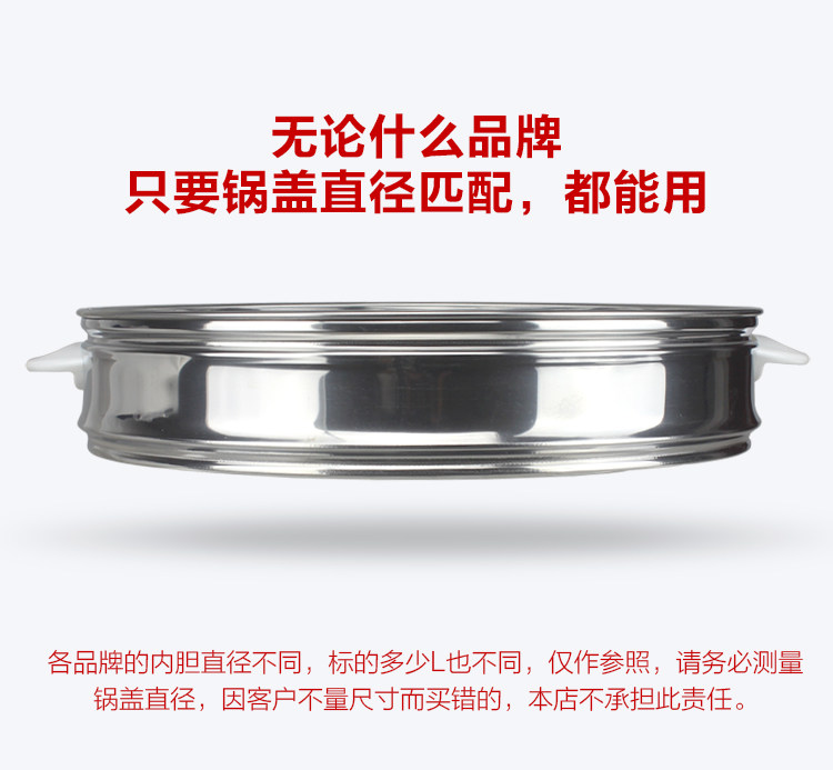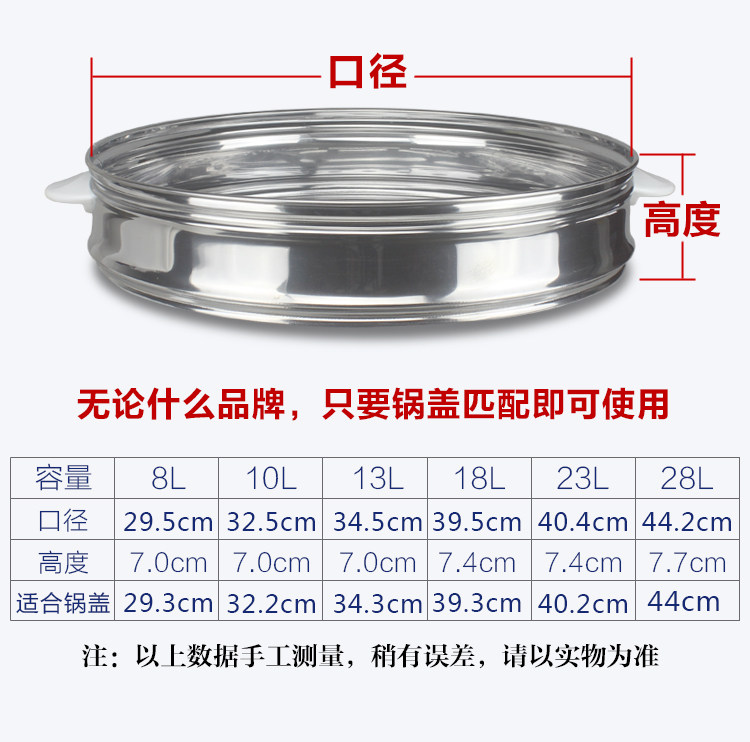 | Color Classification | 8-Liter Steamer [Pot Lid Outer Diameter Within 29.5cm],8 Liter Steamer + Lid,10-Liter Steamer [Pot Lid Outer Diameter Within 32.5cm],10 Liter Steamer + Lid,13-Liter Steamer [Pot Lid Outer Diameter Within 34.cm],13 Liter Steamer + Lid,18-Liter Steamer [Pot Lid Outer Diameter Within 39.5cm],18 Liter Steamer + Lid,23-Liter Steamer [Pot Lid Outer Diameter Within 40.5cm],23L Steamer + Lid,28-Liter Steamer [Pot Lid Outer Diameter Within 44.5cm],28L Steamer + Lid,36-Liter Steamer [Pot Lid Outer Diameter 46cm],36 Liter Steamer + Lid,45L Steamer [Pot Lid Outer Diameter 46cm],45 Liter Steamer + Lid,Measure the Diameter of the Rice Cooker Lid before Placing an Order |
