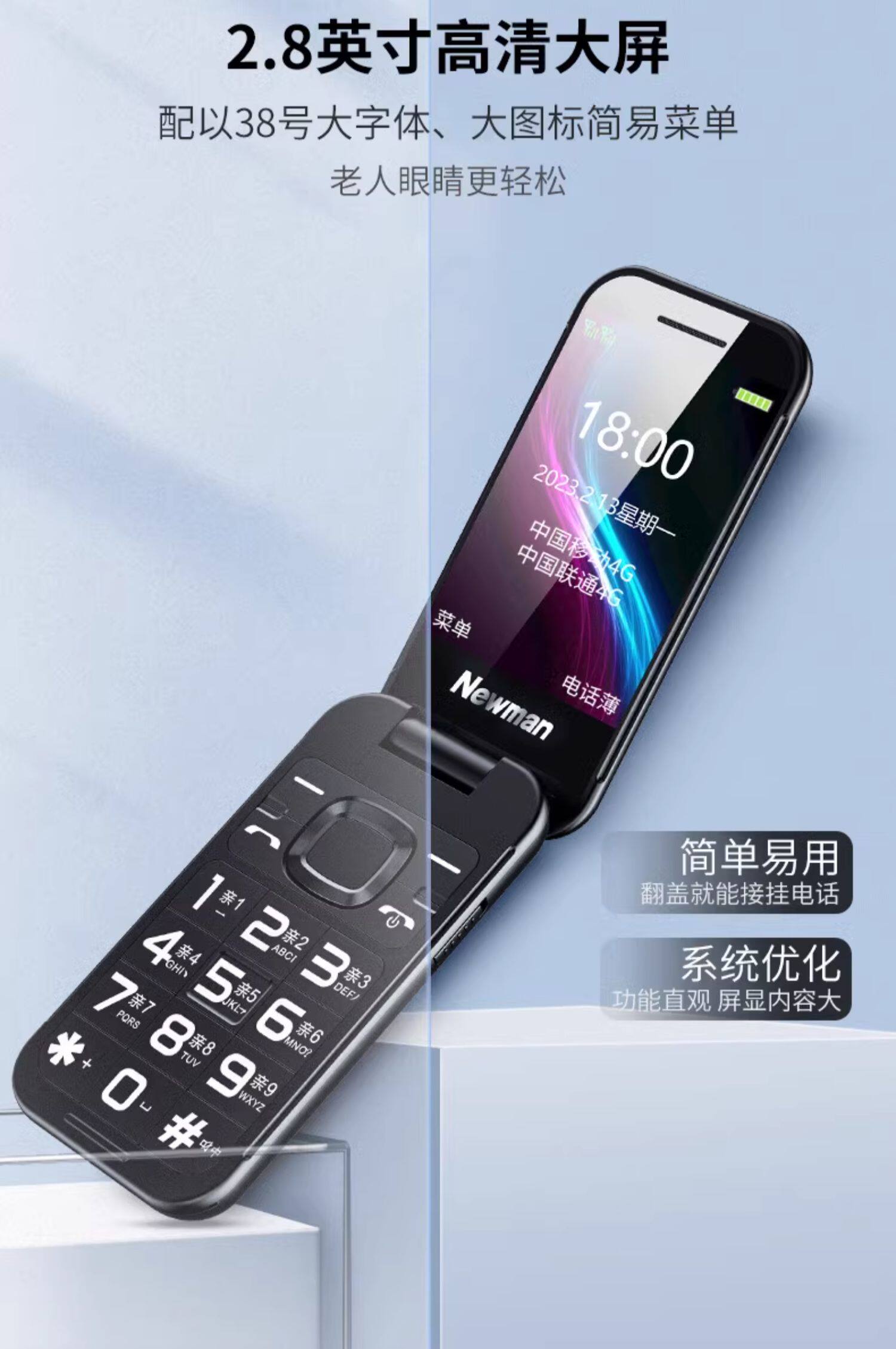 Newman W88 Flip Phone Genuine Dual-Screen Ultra-Long Standby Voice Announcement Mobile Telecom Version 4g All-Network Phone for Seniors with Large Font and Loud Sound, Suitable for Men and Women, Business, Students, and Elderly People
