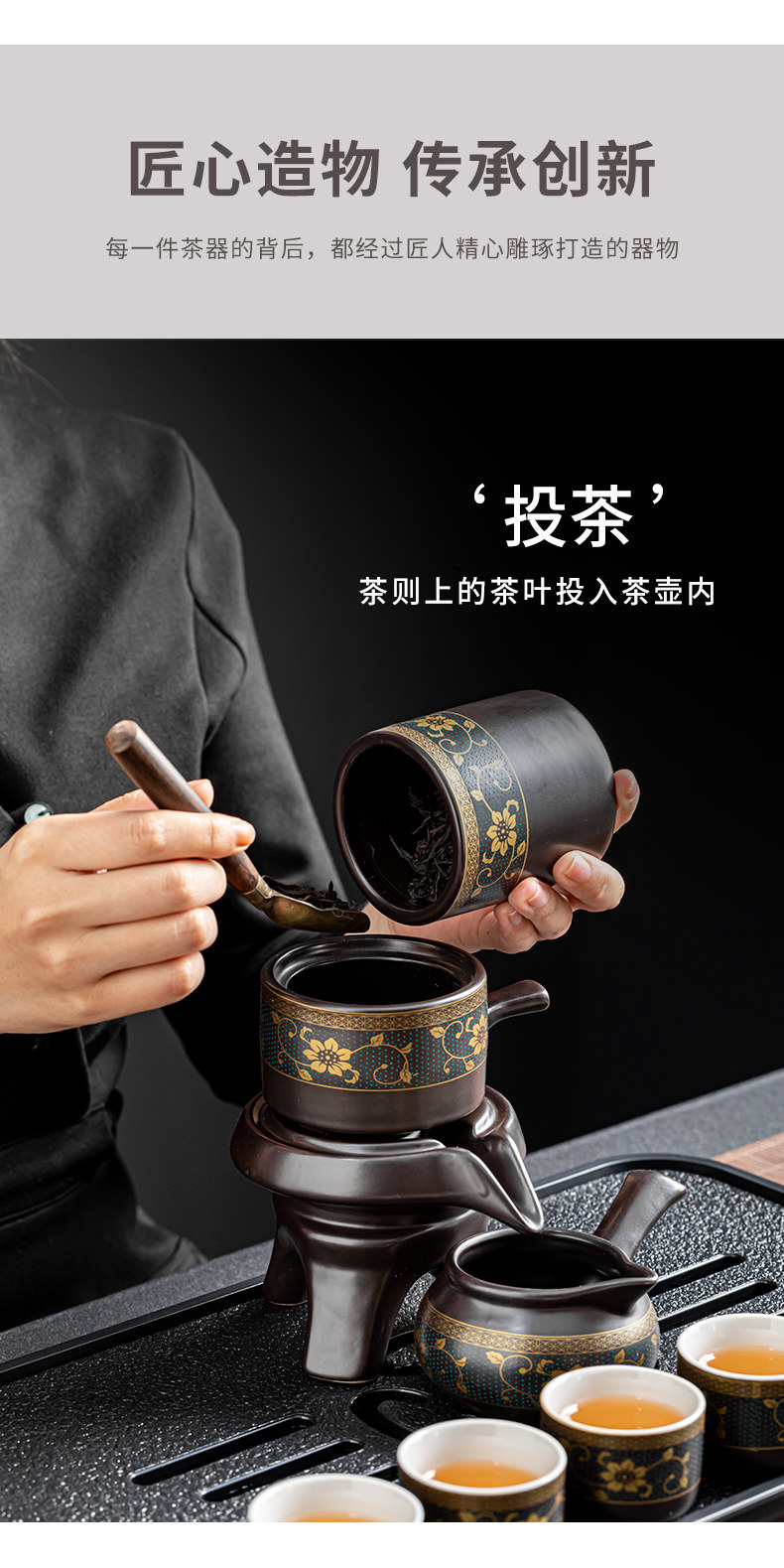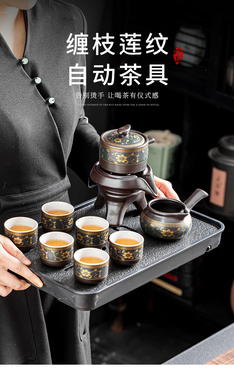 Stone Mill Lazy Automatic Tea Set for Home Use, Light Luxury High-End Tea Brewing Device, Office Kung Fu Teapot and Teacup