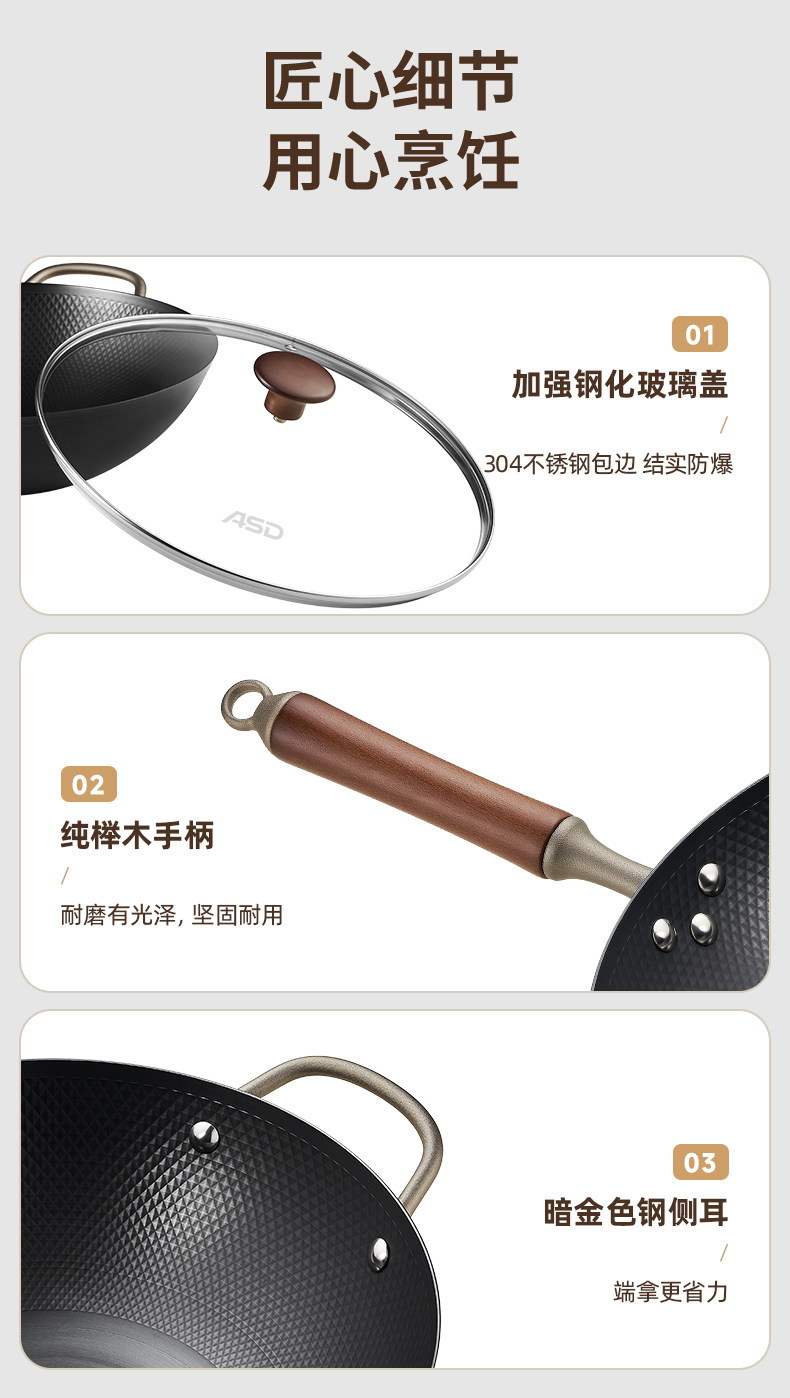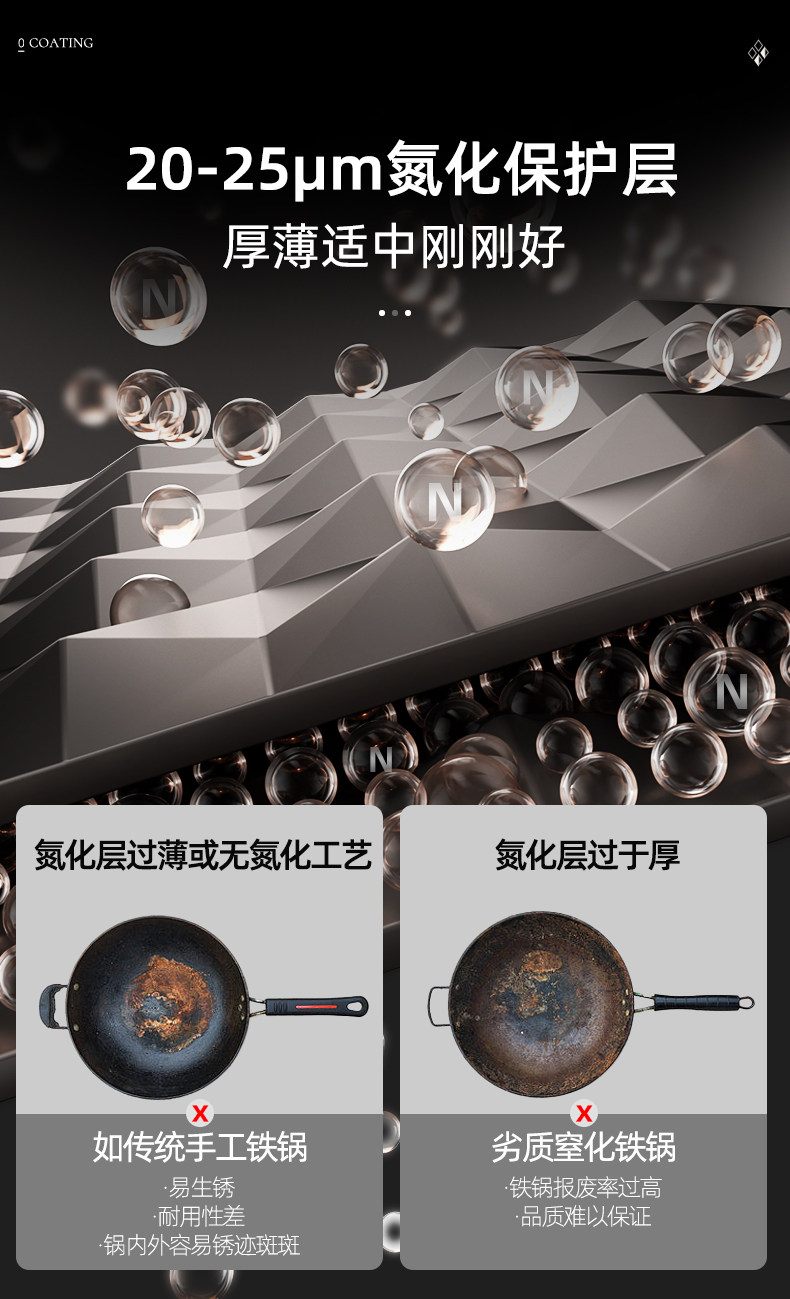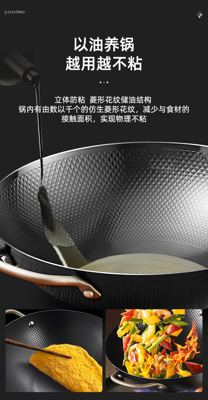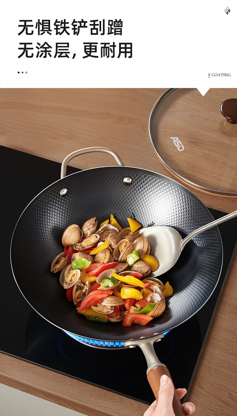 Aistar Extremely Lightweight Iron Wok, Non-Coated Cooking Pan, Flat-Bottomed Pan, Nitrided Iron Pan, Suitable for Induction Cookers