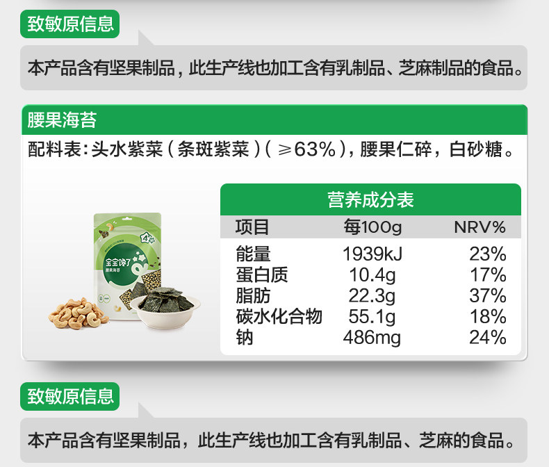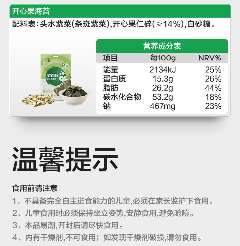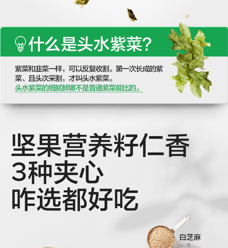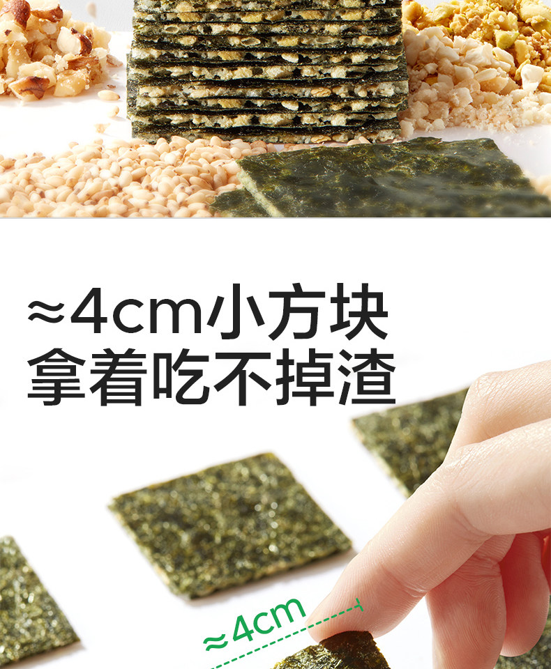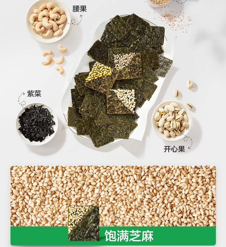 | Taste | 8 Bags of Sandwiched Seaweed (Sesame 18G*4+Pistachio 18G*2+Cashew 18g*2),8 Bags of Sandwiched Seaweed (Sesame 18G*6+Pine Nuts 18g*2) |