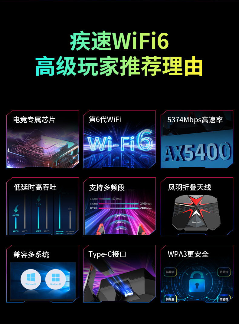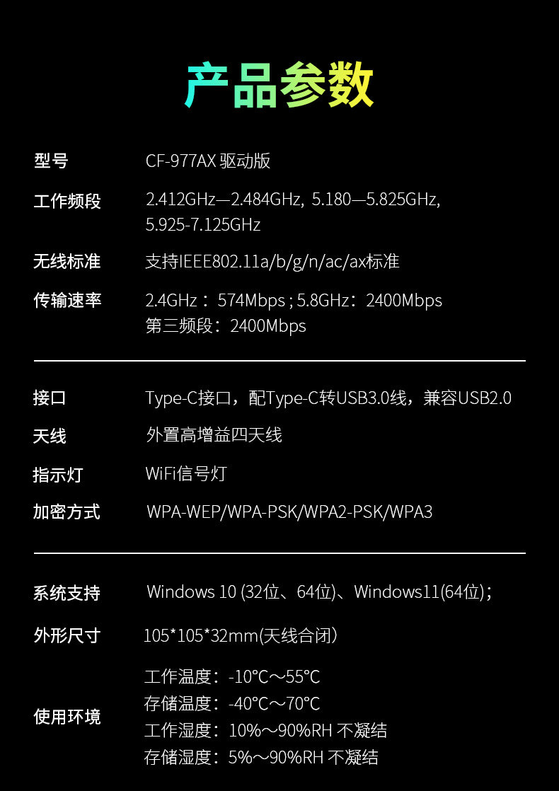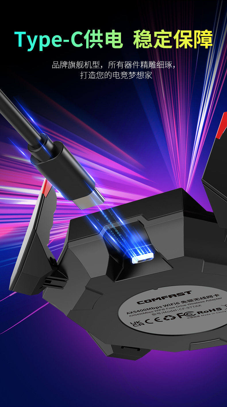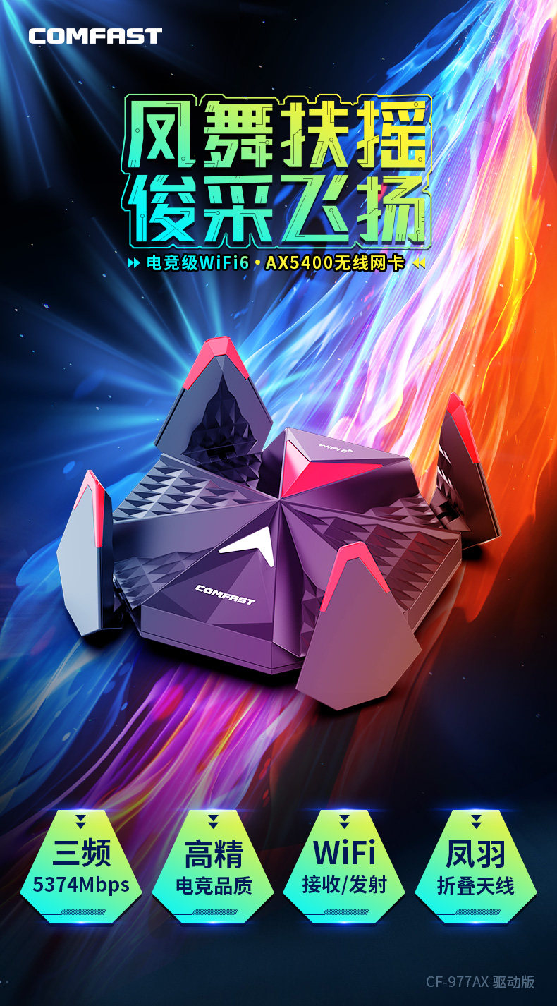 [5374M Tri-Band]Comfast Gaming Wifi6 Wireless Network Card Desktop Gigabit 5g Dual-Band Network Signal Receiver Laptop External USB Wireless Network Card Cf-977Ax