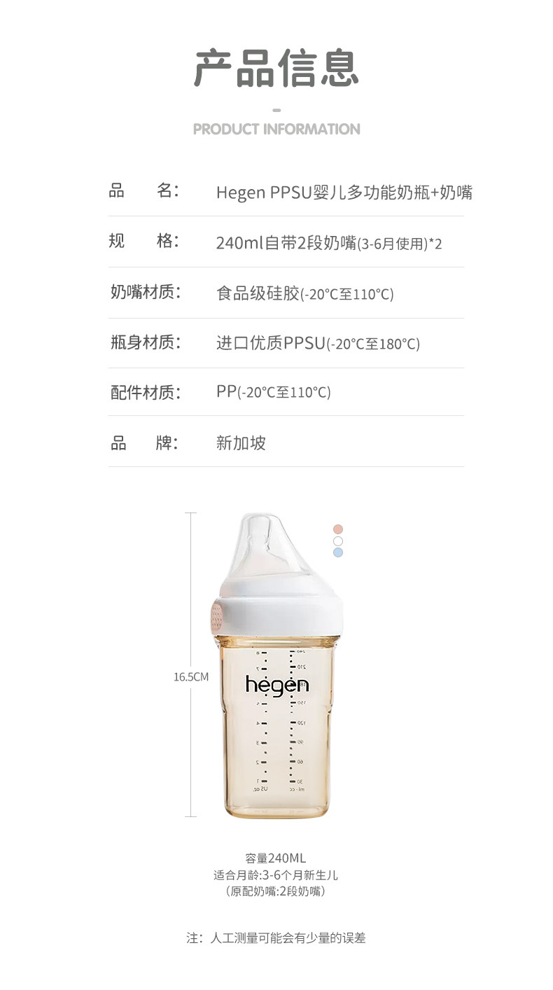 Hegen Original Wide-Caliber Baby Bottle Newborn Ppsu Baby Anti-Flatulence Baby 240ml Resistant to Falling