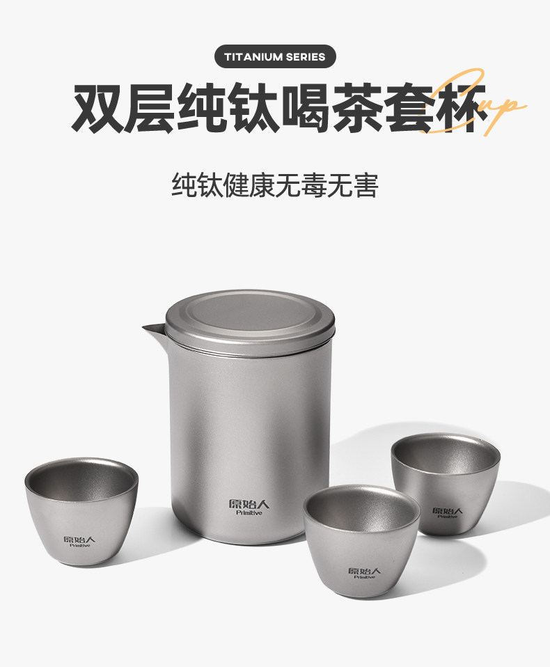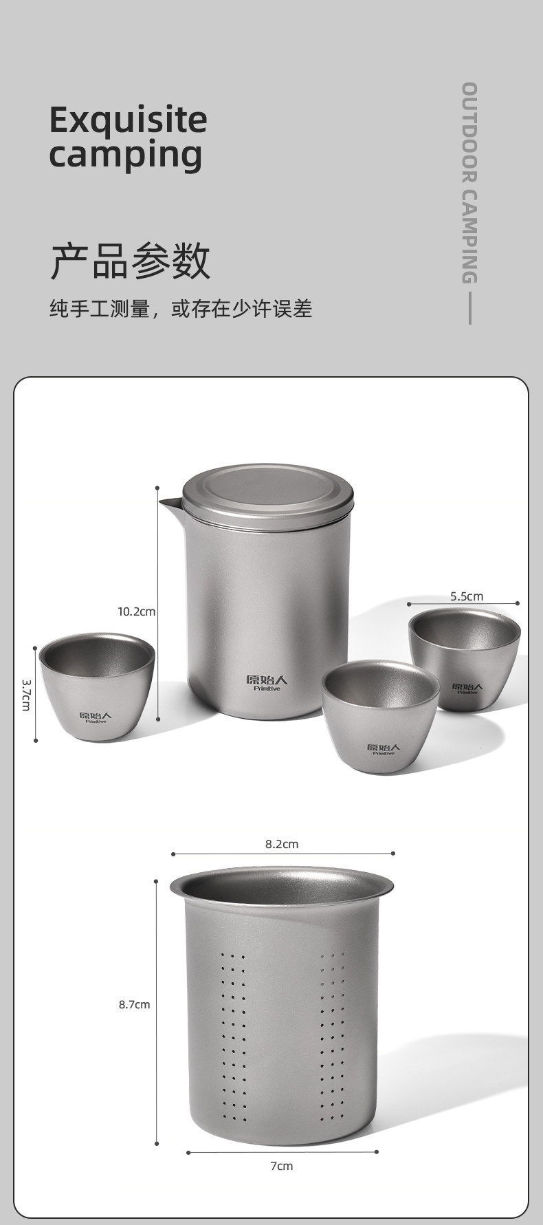 Primitive Titanium Cup Tea Set for Outdoor Camping, Pure Titanium Camping High-Temperature Resistant Portable Travel Cup, Titanium Water Cup Supplies