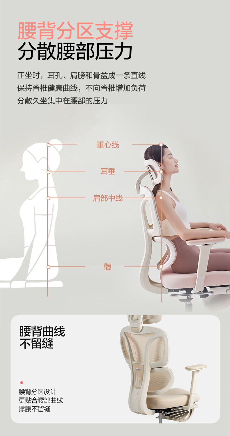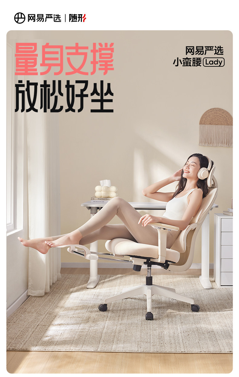 Netease Carefully Selects the S9Lady Ergonomic Chair, a Computer Chair, Gaming Chair, and Comfortable Waist Support Chair for Girls, Suitable for Home and Office Use