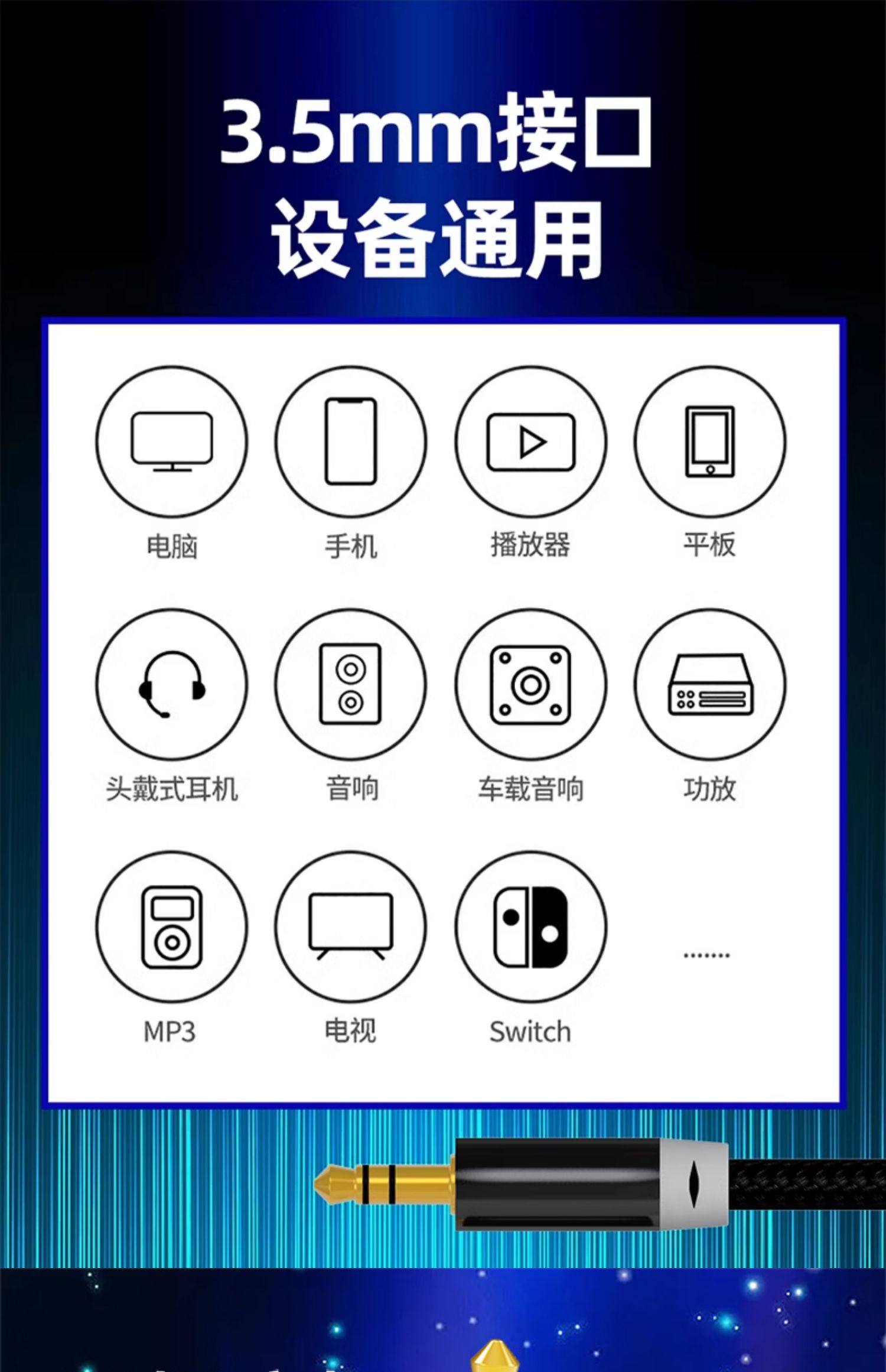 Tengfei Audio Cable for Car Audio Speakers, 3.5mm Dual-Head Plug for Connecting to Computer and Mobile Phone, Output Adapter for Car Player, Over-Ear Headphones, Aus Data Male-To-Male Dedicated Cable