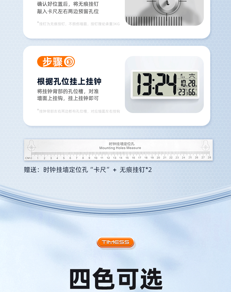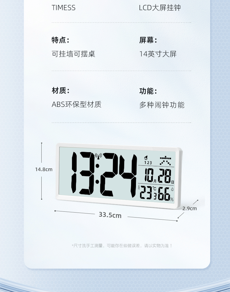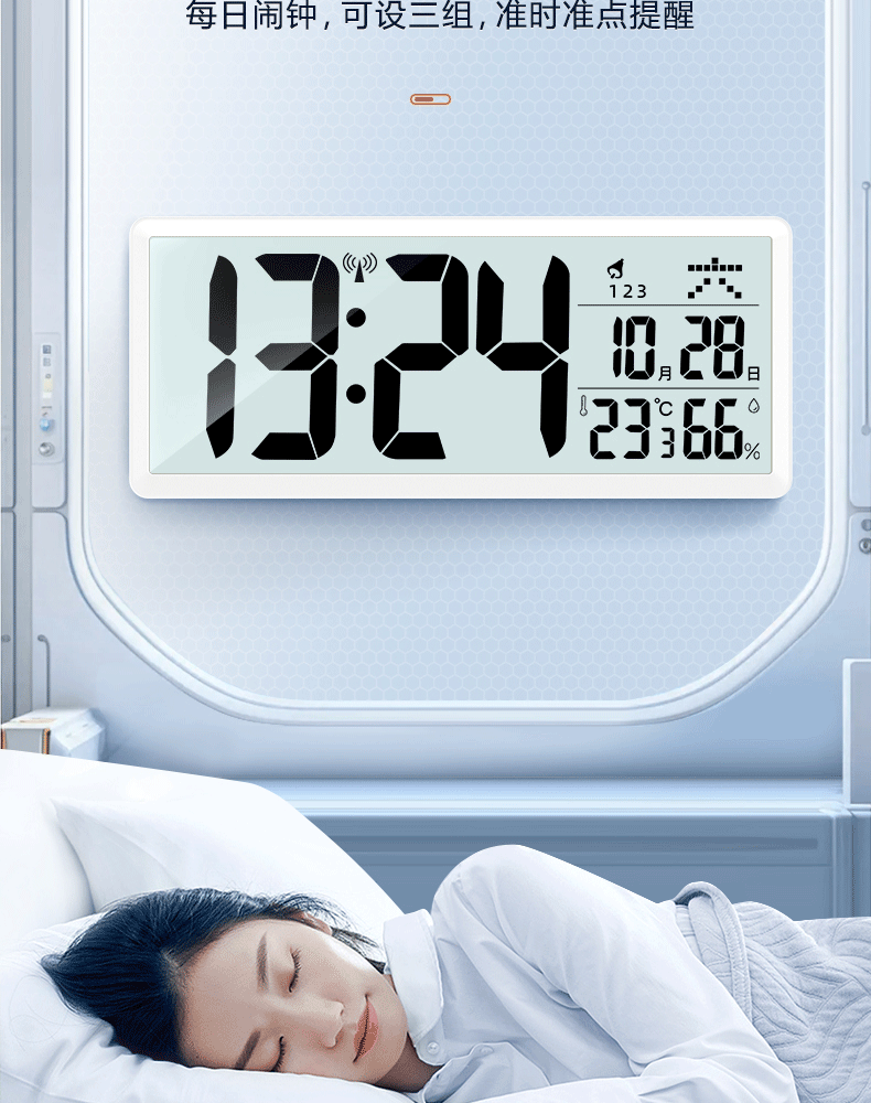 Timess Calendar Clock Electronic Wall Clock Living Room Home Perpetual Calendar Silent Radio-Controlled Clock Wall-Mounted Smart Alarm Clock