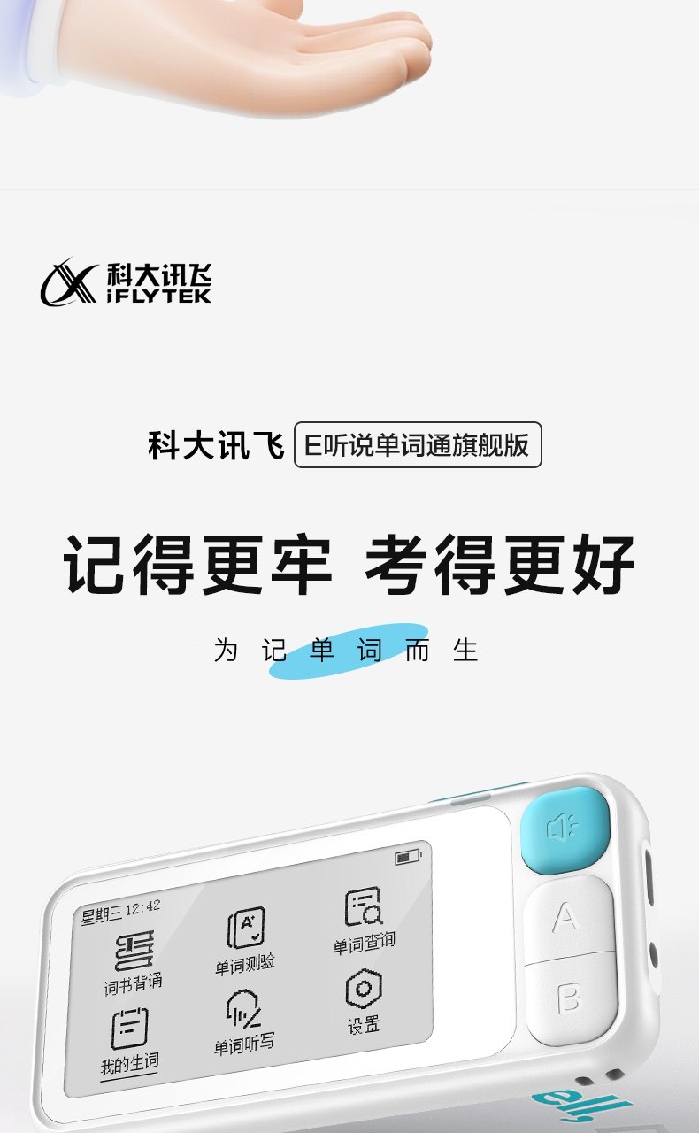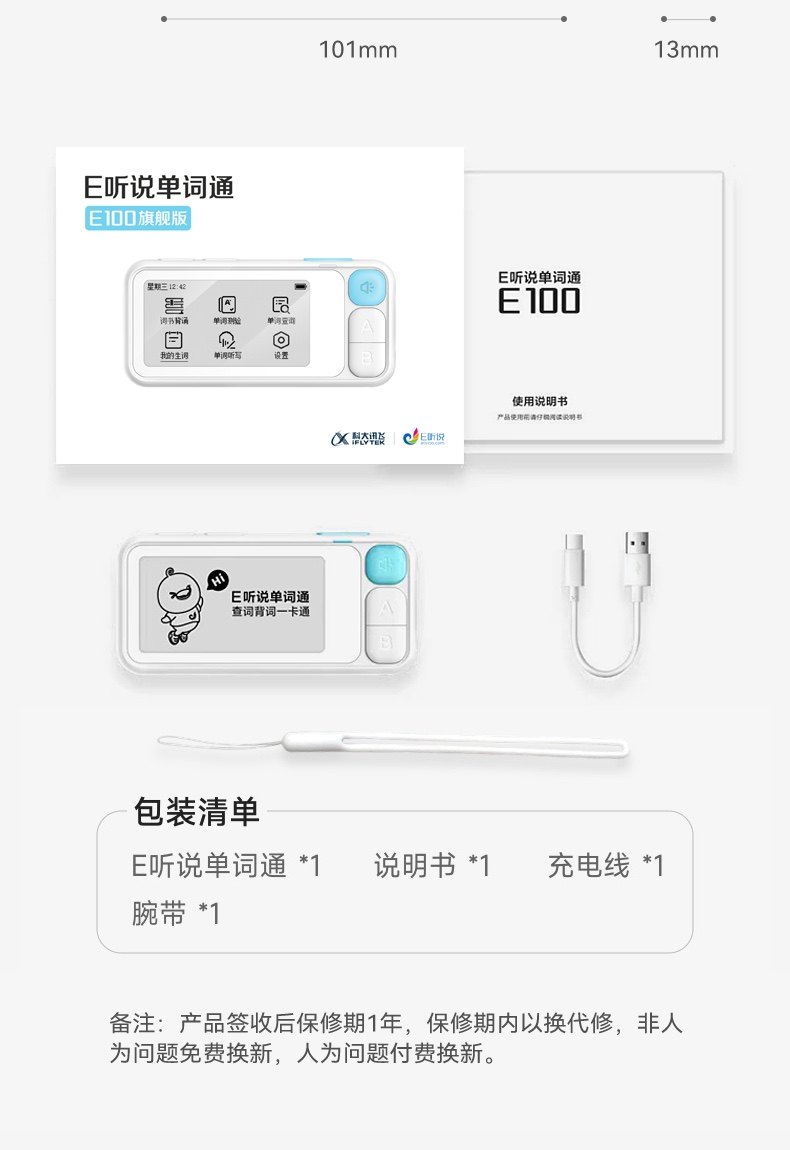 Iflytek E-Learning Vocabulary Communication Device E100 Vocabulary Machine with Real Human Pronunciation, Vocabulary Cards, and E-Ink Screen