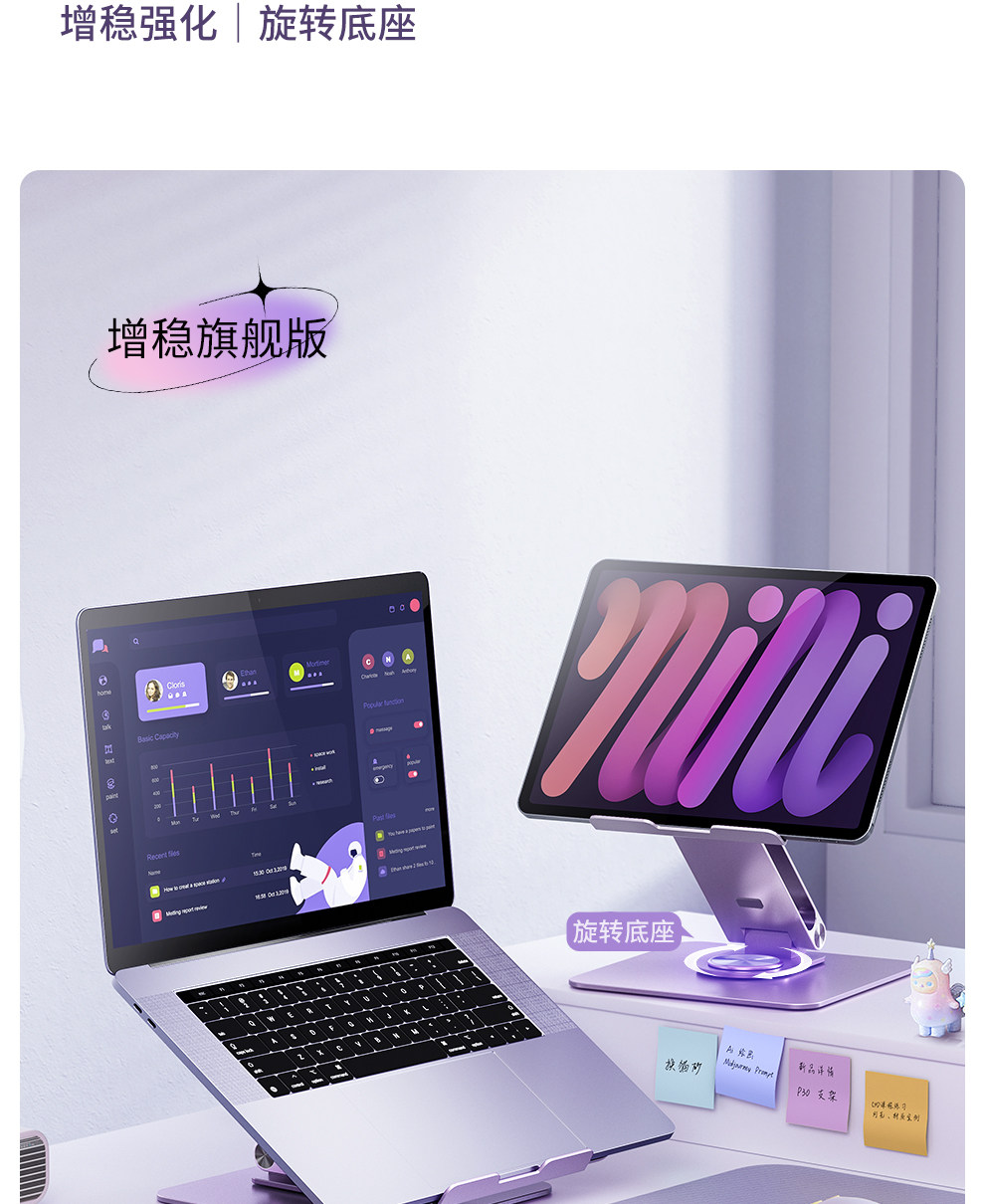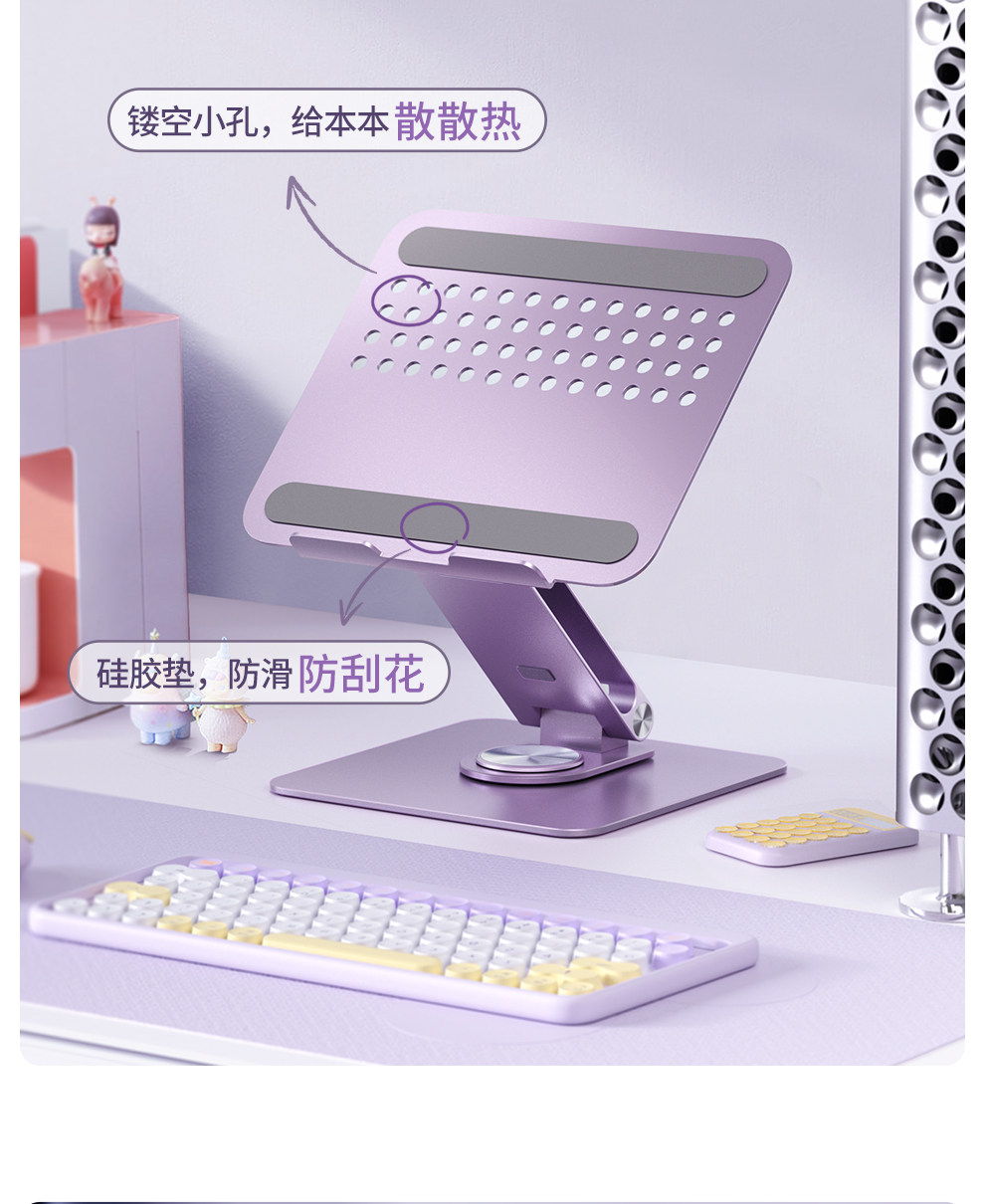 Laptop Stand Bracket Is Rotatable, Expandable, Suspended for Cooling, Adjustable Height, Desktop Heightening, Standing Tablet, Two-In-One Keyboard, Metal Aluminum Alloy, Gaming, Foldable, Office, Fixed