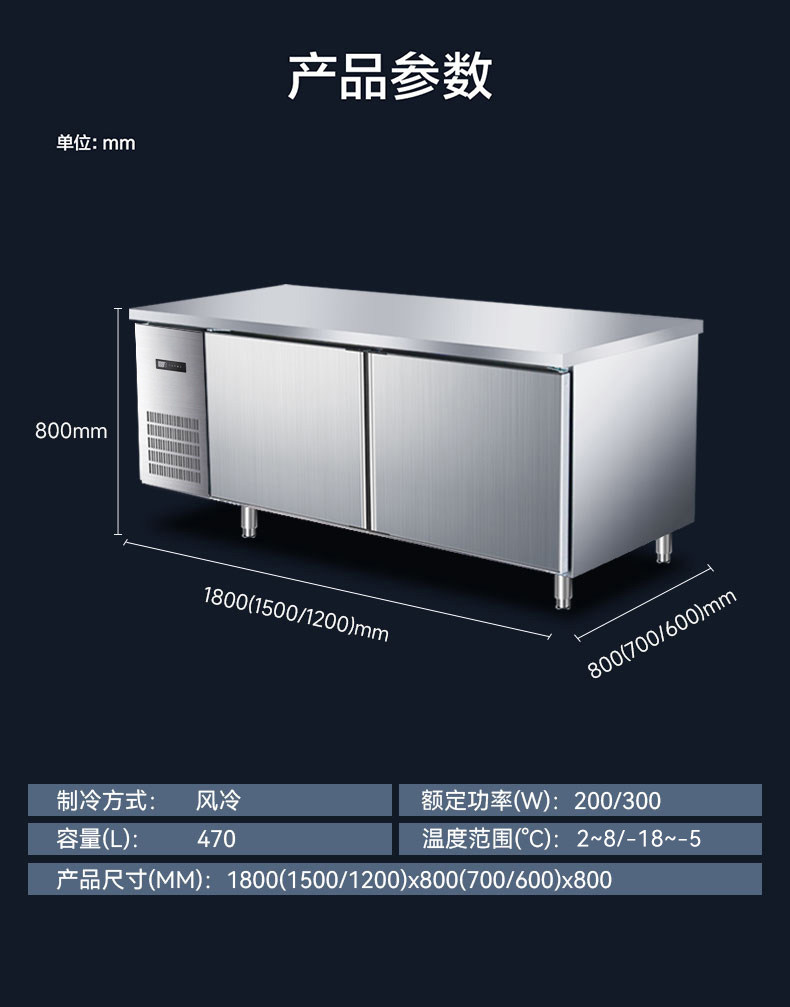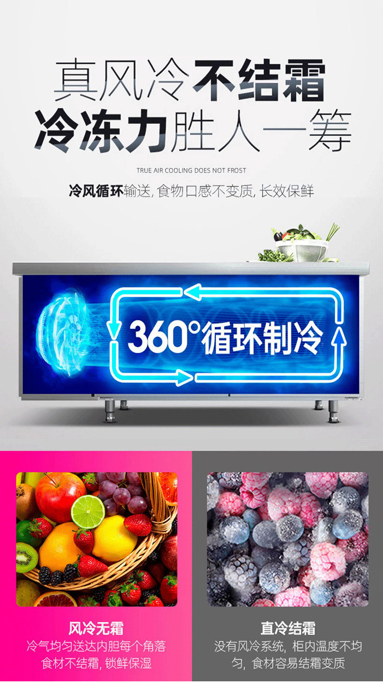 Air-Cooled Frost-Free Commercial Refrigeration Workbench Fresh-Keeping Freezer 1.8m Flat Freezer Kitchen Workbench Refrigerator