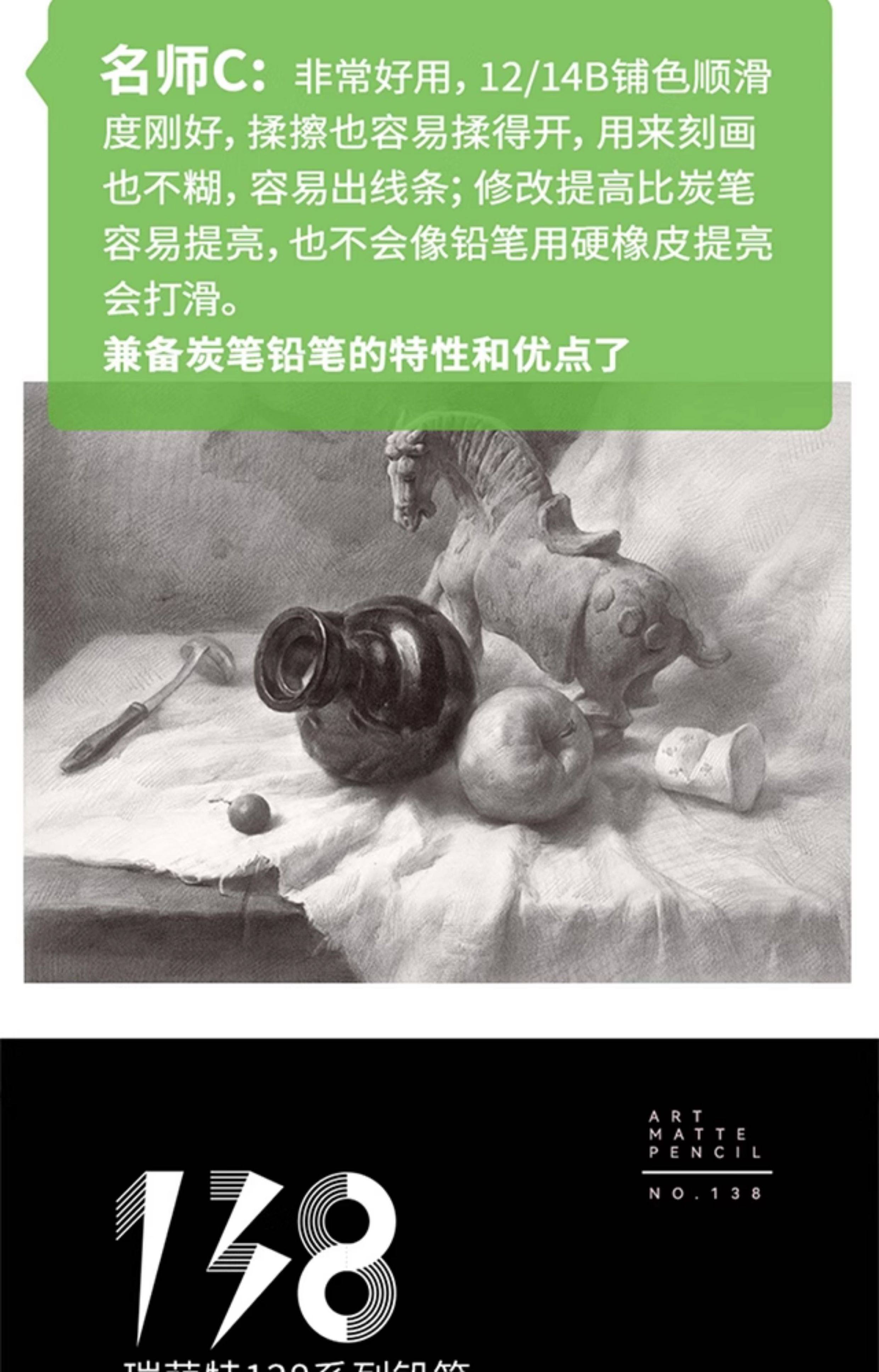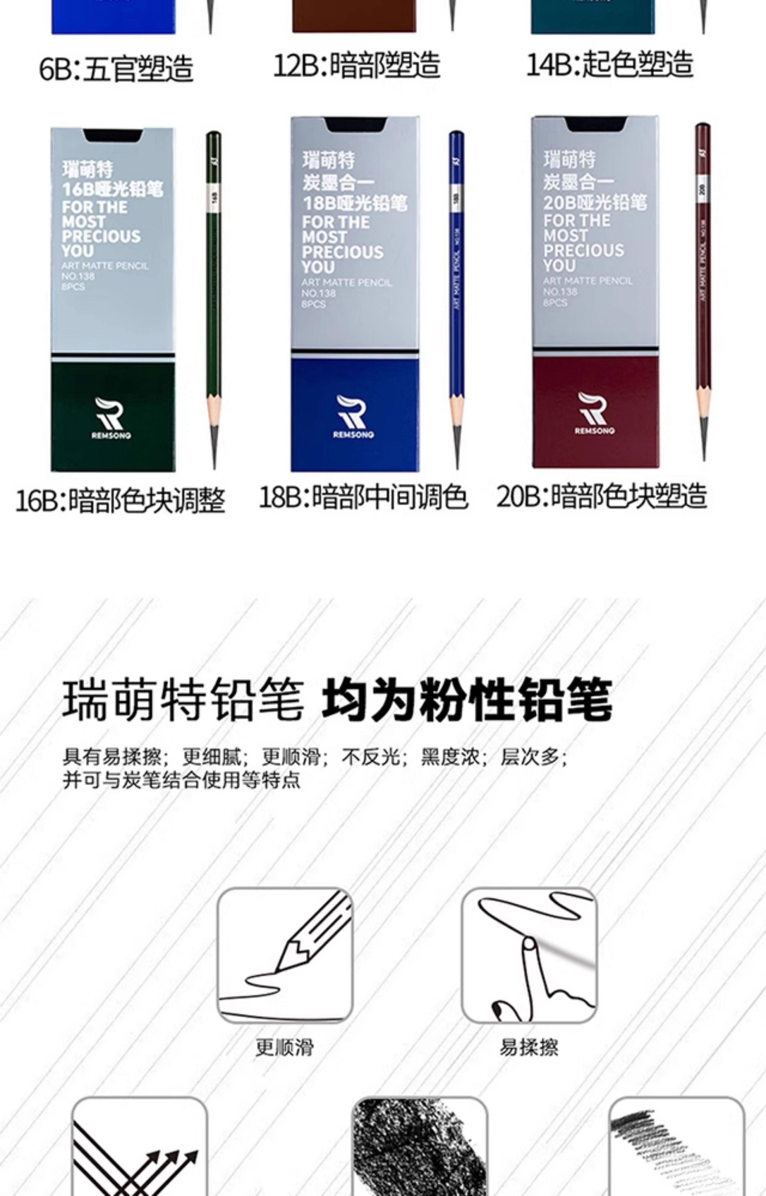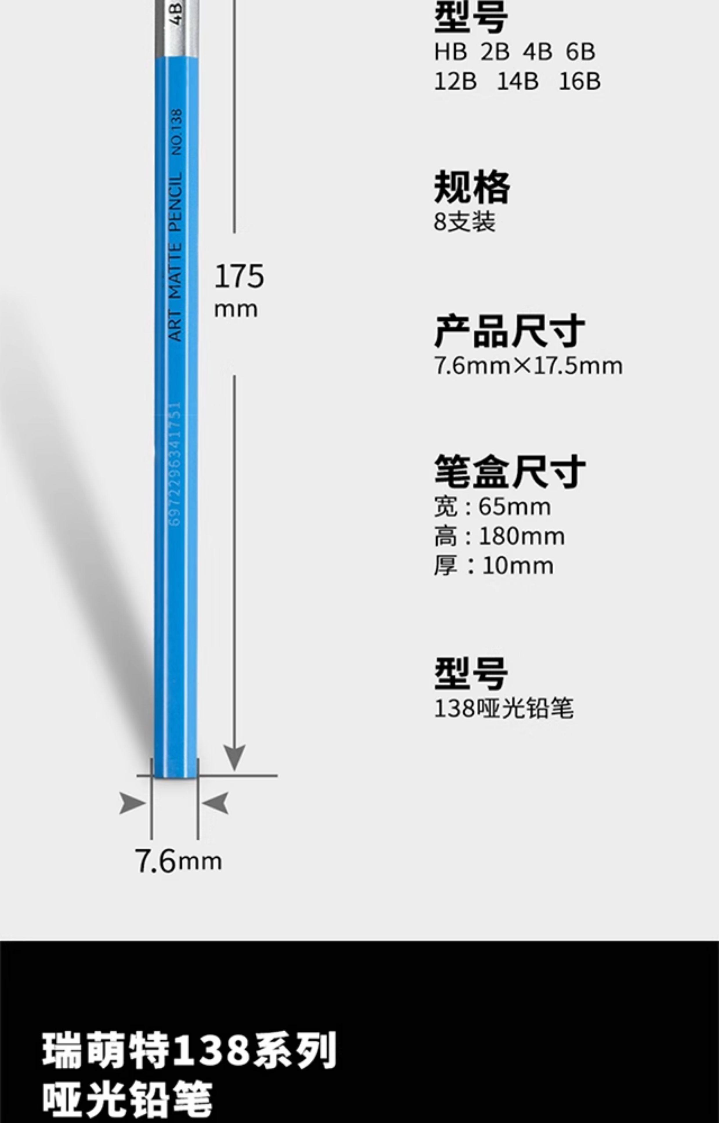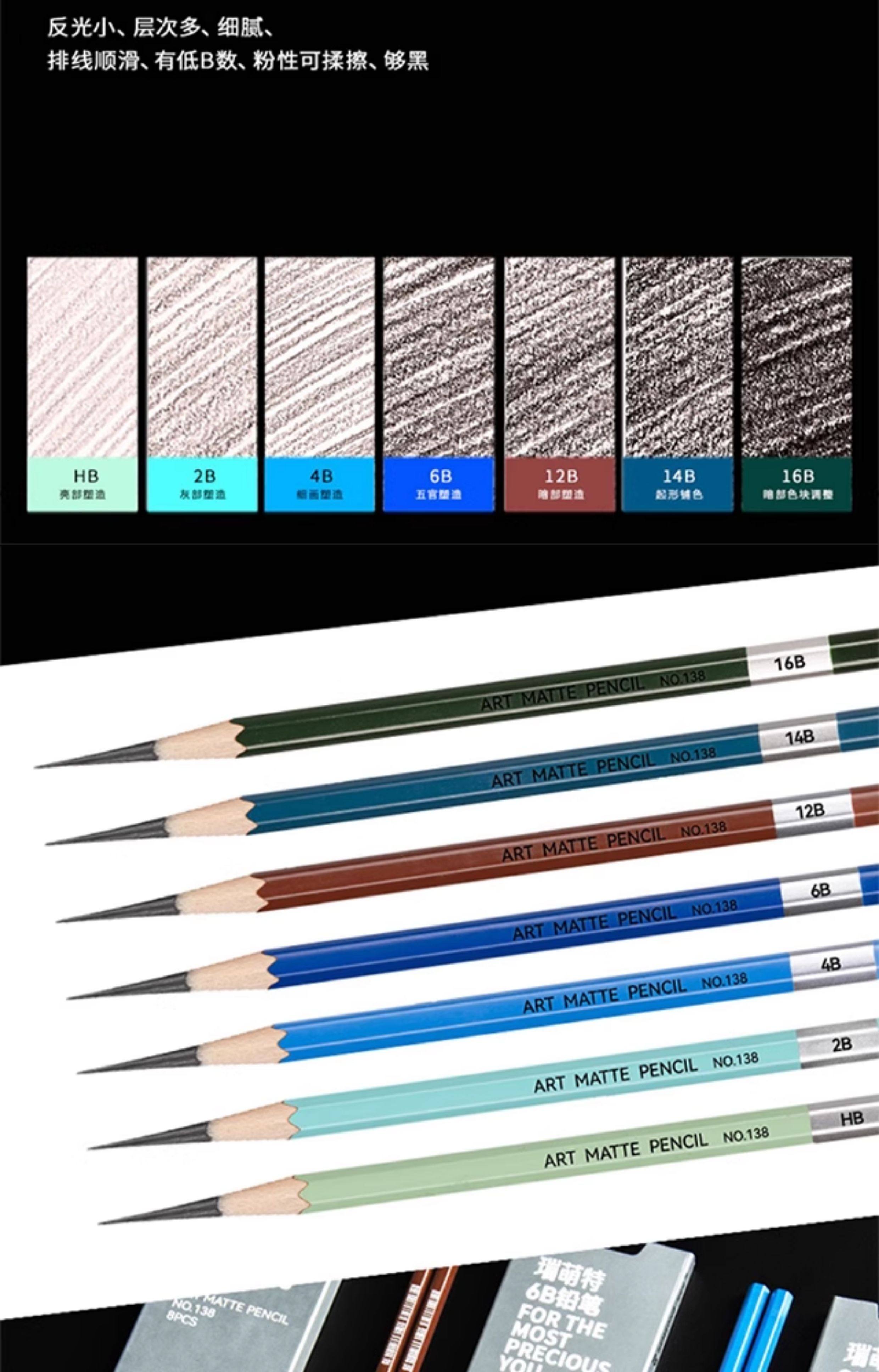 Ruimengte 138 Matte 14B Pencil for Figure Sketching, Soft Sketching Pencil, Charcoal Pencil for Art Students, Special Soft-Medium Hard Charcoal Pencil for Art Exams, Ruimengte Full Matte 18 and 20B Pencil