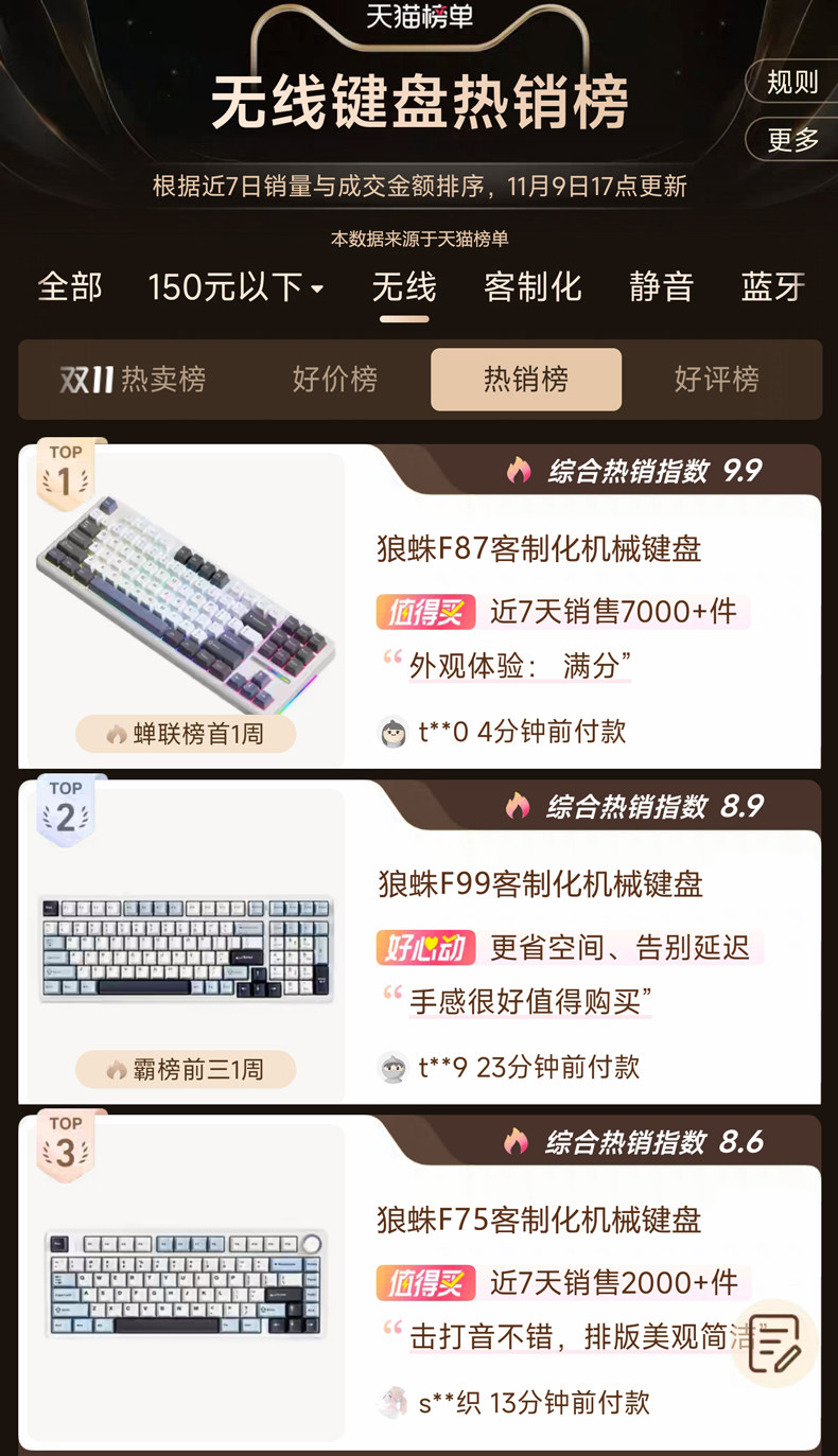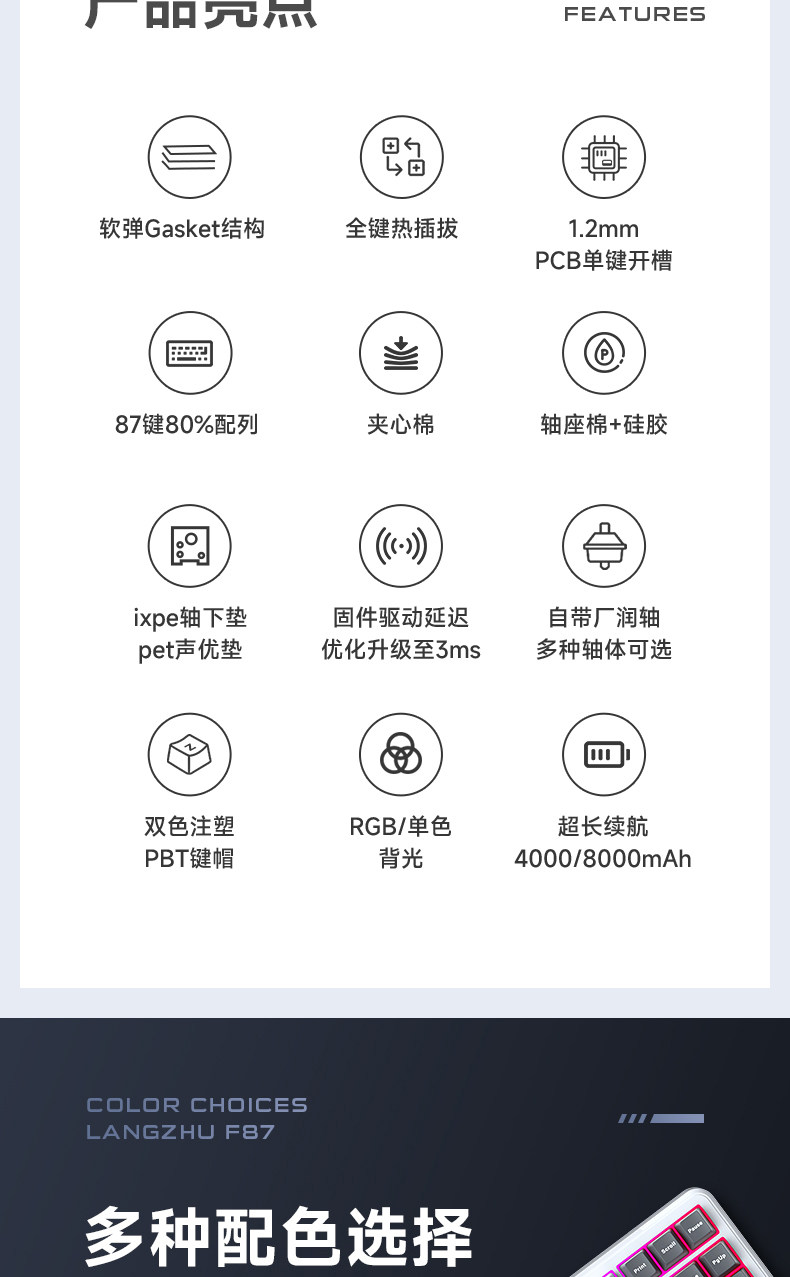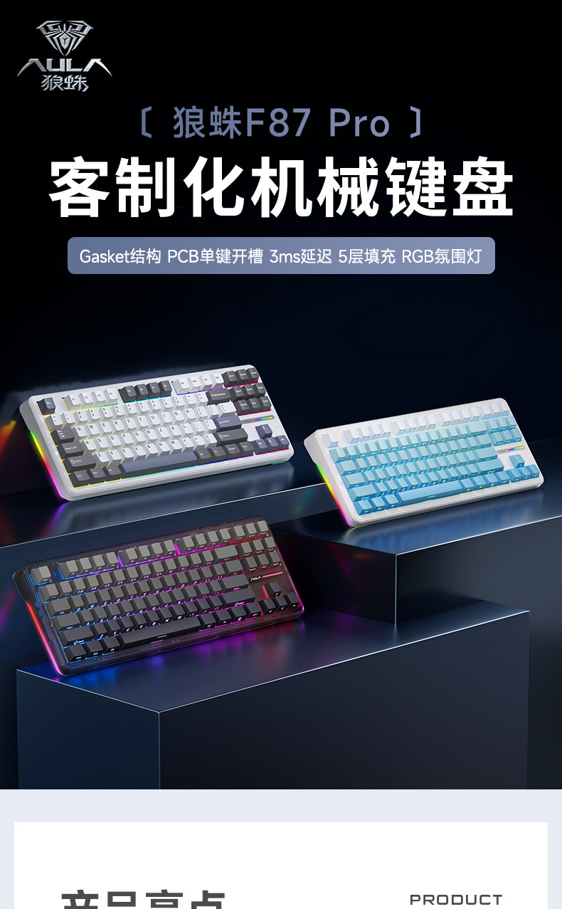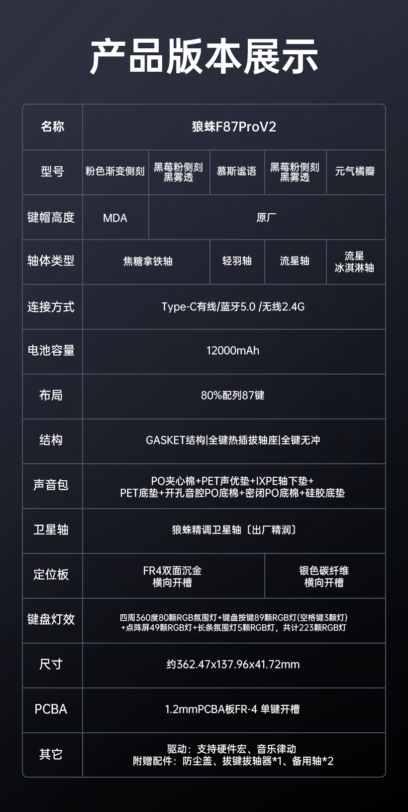 Wolf Spider F87Prov2 Wireless Mechanical Keyboard Customized with Three Modes, Bluetooth, Side Engraved, Dedicated for E-Sports Gaming, Mahjong Sound