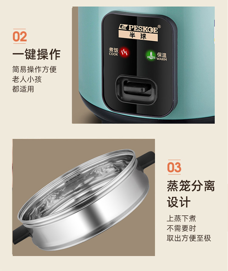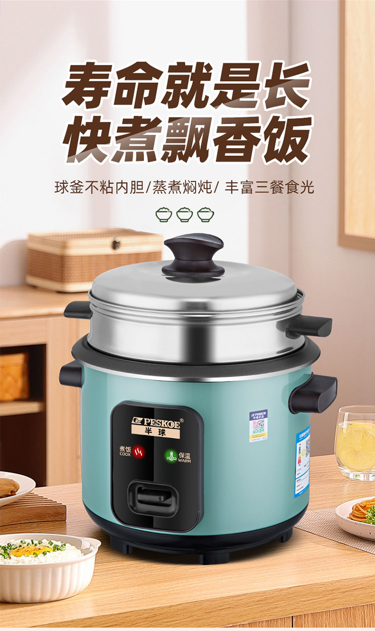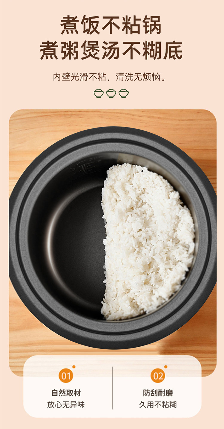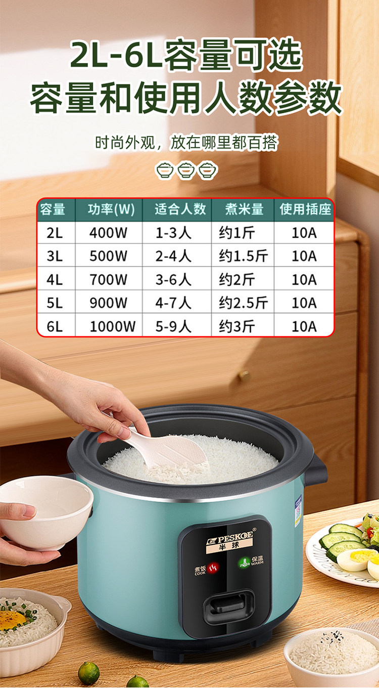 Hemisphere Rice Cooker for Home Use, Old-Fashioned Small Size for 1 Person, Mini Student Dormitory, Multi-Functional for Cooking Porridge and Heating, 2L Rice Cooker for 3 People
