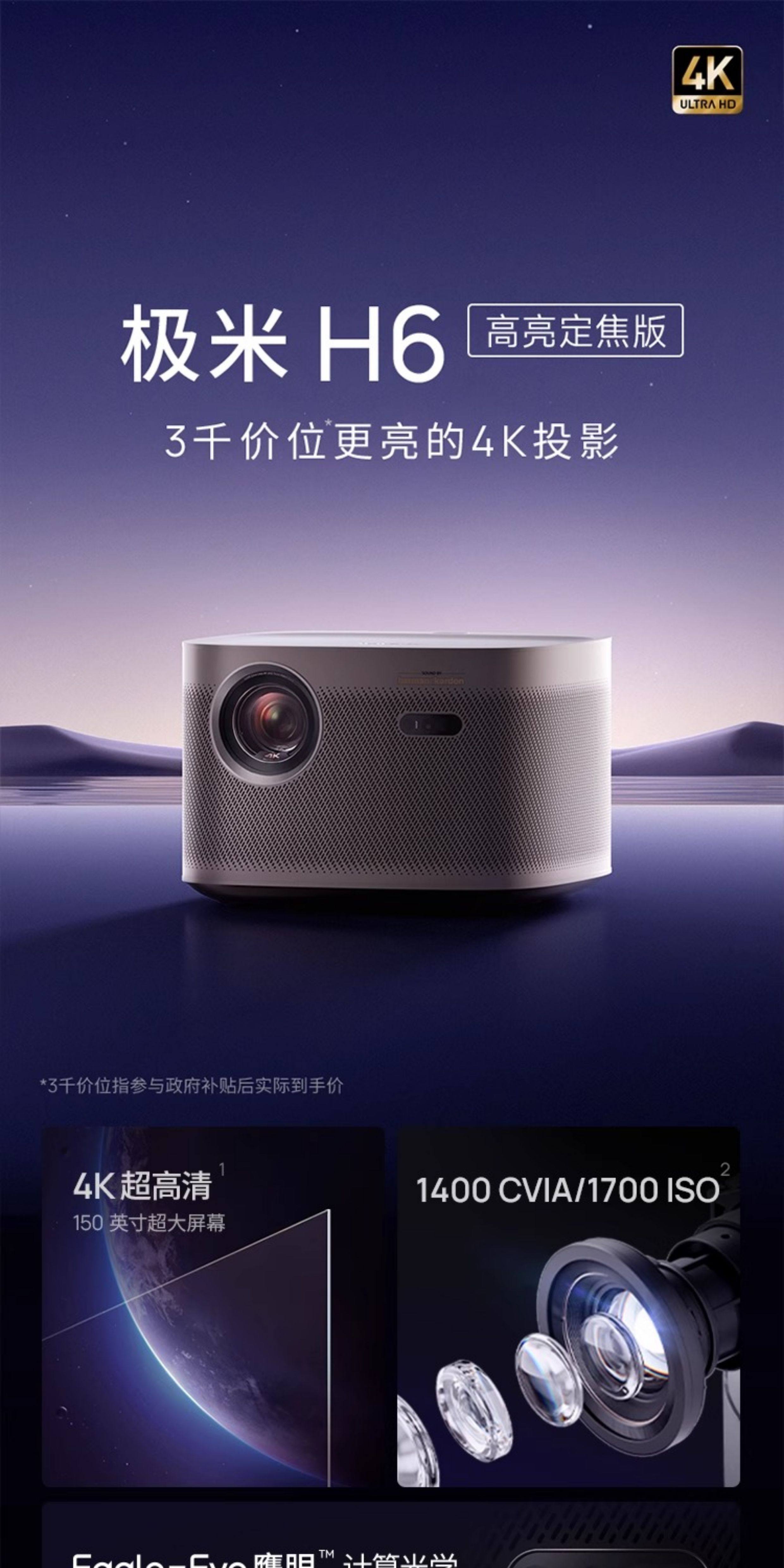 Xgimi H6 High Brightness 4K Projector New H3S Upgraded Version Hd Home Projector Wireless Mobile Screen Casting Bedroom White Wall Projection Home Theater XBYGIMI Xm03P
