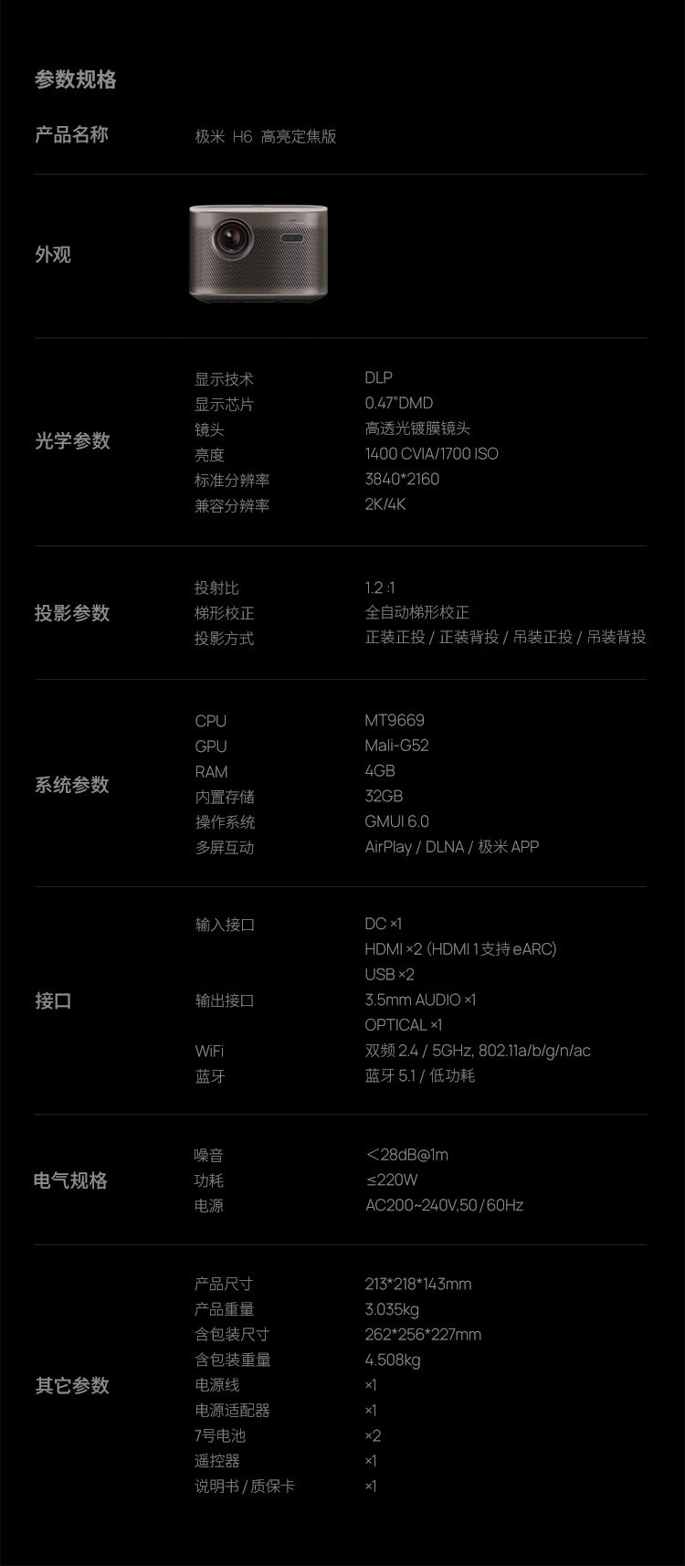 | Color Classification | Xgimi H6 High Brightness Edition 4K Theater Set Pre-Order/Deposit,Xgimi H6 High Brightness Edition - Projector Only + HDMI Cable + Resource Software App,Xgimi H6 High-Brightness Version + Floor Stand + HDMI High-Definition Cable,Xgimi H6 High Brightness Edition + Floor Stand + Portable Screen 100inch,Xgimi H6 High Brightness Edition + Ceiling Mount Bracket [Direct Projection White Wall Cost-Effective Combination],Xgimi H6 High-Brightness Version + Lifting Bracket + Electric High-Definition Curtain 100inch,Xgimi H6 High Brightness Edition + Ceiling Mount Bracket + Front-Projection Fresnel Lens,Xgimi H6 High Brightness Edition + Ceiling Mount Bracket + Front-Projection Fresnel Lens,Xgimi H6 High-Brightness Version + HDMI Screen Projection Cable + Resource Software App,Xgimi H6 High Brightness Edition [Global Overseas Version],Xgimi H6 High Brightness Version Projector (Global Overseas Edition) + Overseas Power Adapter [Suitable for 110V Regions],Xgimi H6 High Brightness Edition [Global Overseas Version] + Floor Stand + Free Hd Cable,Xgimi H6 High Brightness Edition [Global Overseas Version] + Floor Stand + Hd Portable Screen |