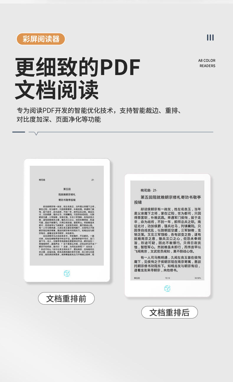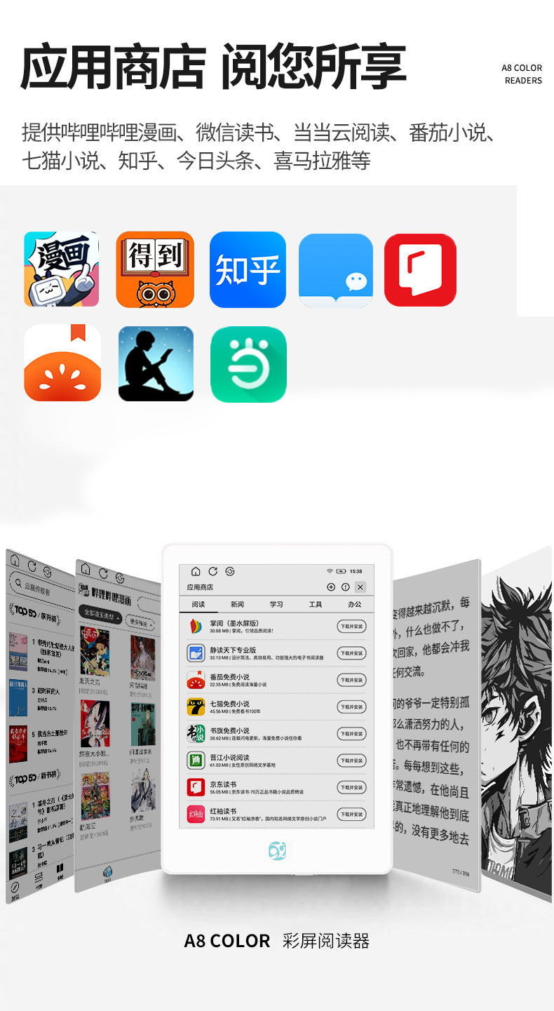 Chinese Obook A8 Color E-Ink Screen Reader 6inch Portable Android Open System E-Paper Book Reader for Reading Comics, Novels, and E-Books