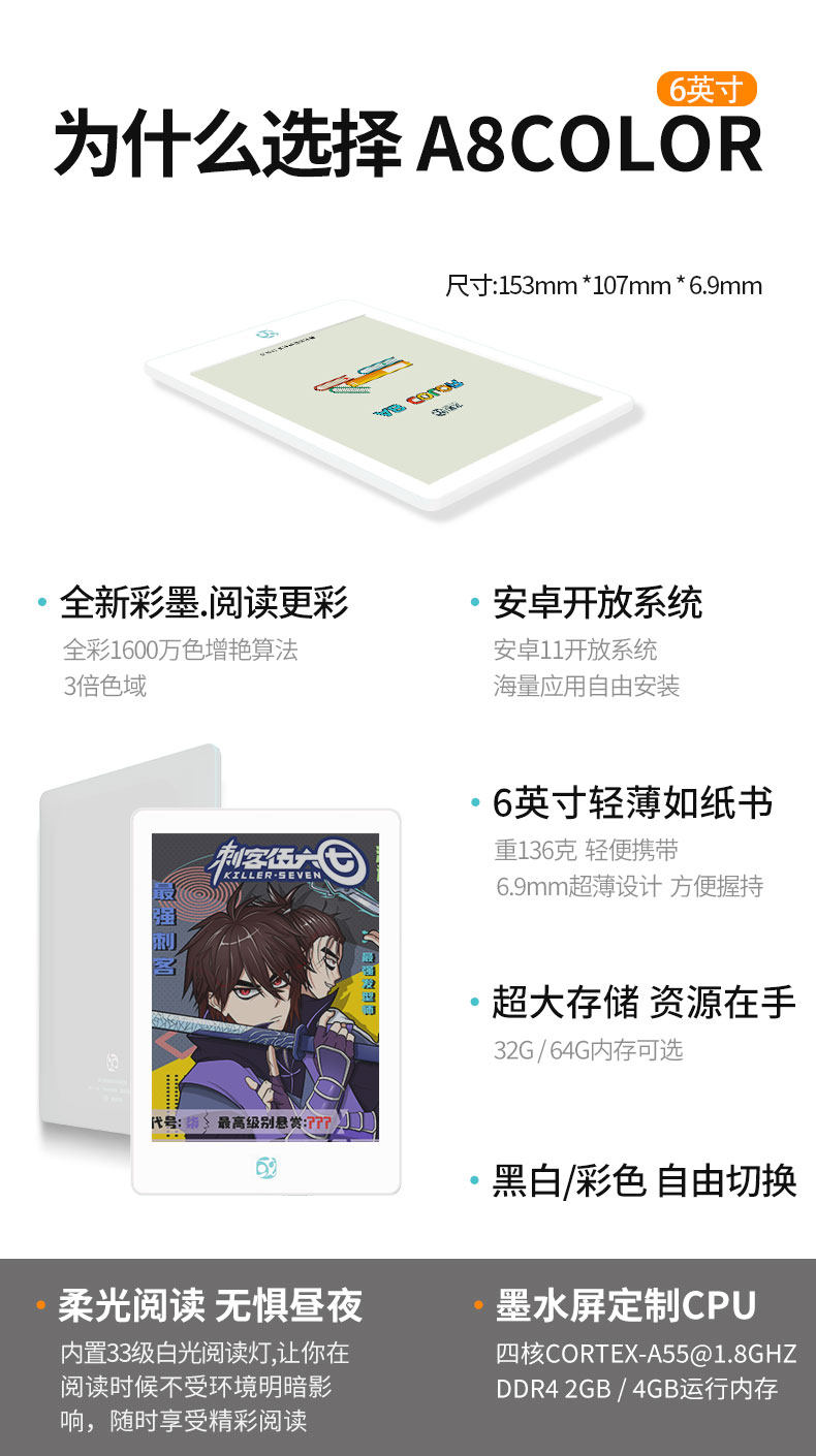 | Color Classification | A8Color Color Screen Reader (4+64g),A8Color Color Screen Reader (4+64g) + Moonlight Linglu Protective Case,A8Color Color Screen Reader (4+64g) + Lutaxiangyun Protective Case,A8Color Color Screen Reader (4+64g) + High-Grade Gray Protective Case,A8Color Screen Reader (4+64g) + Dream Blue Protective Case,A8Color Color Screen Reader (2+64g),A8Color Color Screen Reader (2+64g) + Moonlight Linglu Protective Case,A8Color Color Screen Reader (2+64g) + Lutaxiangyun Protective Case,A8Color Color Screen Reader (2+64g) + High-Grade Gray Protective Case,A8Color Screen Reader (2+64g) + Dream Blue Protective Case |