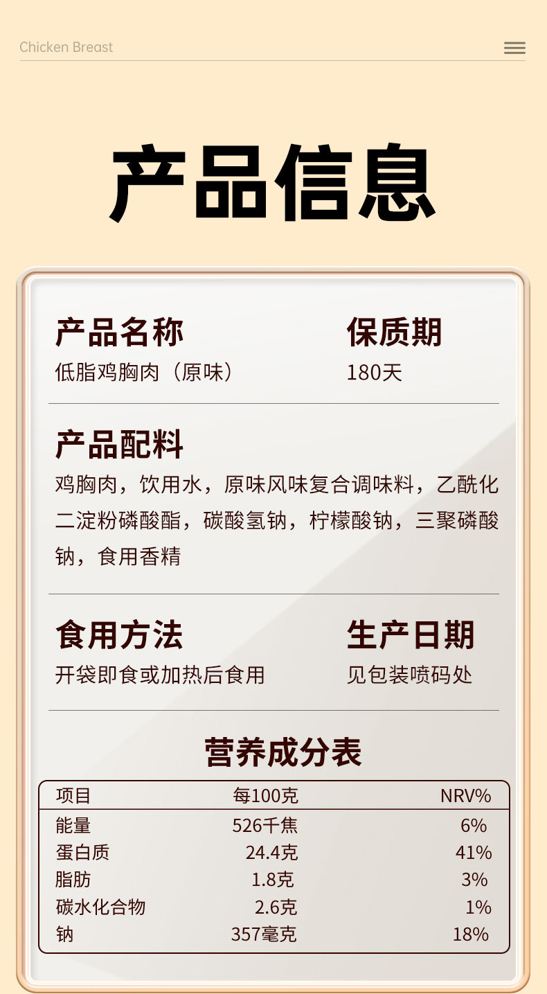 | Taste | ❤High Protein Chicken Breast Fitness Customized Meal Replacement❤,Original Chicken Breast [Buy 10 Get 10 Free] Total 20 Bags,Original + Black Pepper Flavor Chicken Breast [Buy 10 Get 10 Bags Free] 20 Bags in Total,Buy 10 Bags of Chicken Breast and Get 15 Free, for a Total of 25 Bags! [Original Flavor + Black Pepper + Orleans Seasoning],Buy 10 Chicken Breasts and Get 15 Bags Free, a Total of 25 Bags [Original + Black Pepper + Cumin],Buy 10 Bags of Chicken Breast and Get 20 Free, for a Total of 30 Bags! [Original Flavor + Black Pepper + Orleans Seasoning],Buy 10 Chicken Breasts and Get 20 Bags Free, a Total of 30 Bags [Original Flavor + Black Pepper Flavor],Buy 10 Chicken Breasts and Get 20 Bags Free, a Total of 30 Bags [Original Flavor + Orleans Flavor],Buy 10 Pieces of Chicken Breast and Get 20 Bags Free, a Total of 30 Bags [Black Pepper + Orleans Flavor],Buy 20 Pieces of Chicken Breast and Get 20 Bags Free, a Total of 40 Bags [Original Flavor + Cumin + Black Pepper + Orleans Flavor],❤Value-For-Money Low-Fat Set Meal with a Variety of Flavors That You Won’T Get Tired of❤,27 Packs [9 Chicken Breasts + 9 Chicken Meatballs + 9 Chicken Sausages] Mixed Flavor,45-Pack Set Meal [15 Chicken Breasts + 15 Chicken Meatballs + 15 Chicken Sausages] Mixed Flavor,60-Pack Set [20 Chicken Breasts + 20 Chicken Meatballs + 20 Chicken Sausages] Mixed Flavor,75-Pack Set Meal [25 Chicken Breasts + 25 Chicken Meatballs + 25 Chicken Sausages] Mixed Flavor,90-Pack Set Meal [30 Chicken Breasts + 30 Chicken Meatballs + 30 Chicken Sausages] Mixed Flavor |