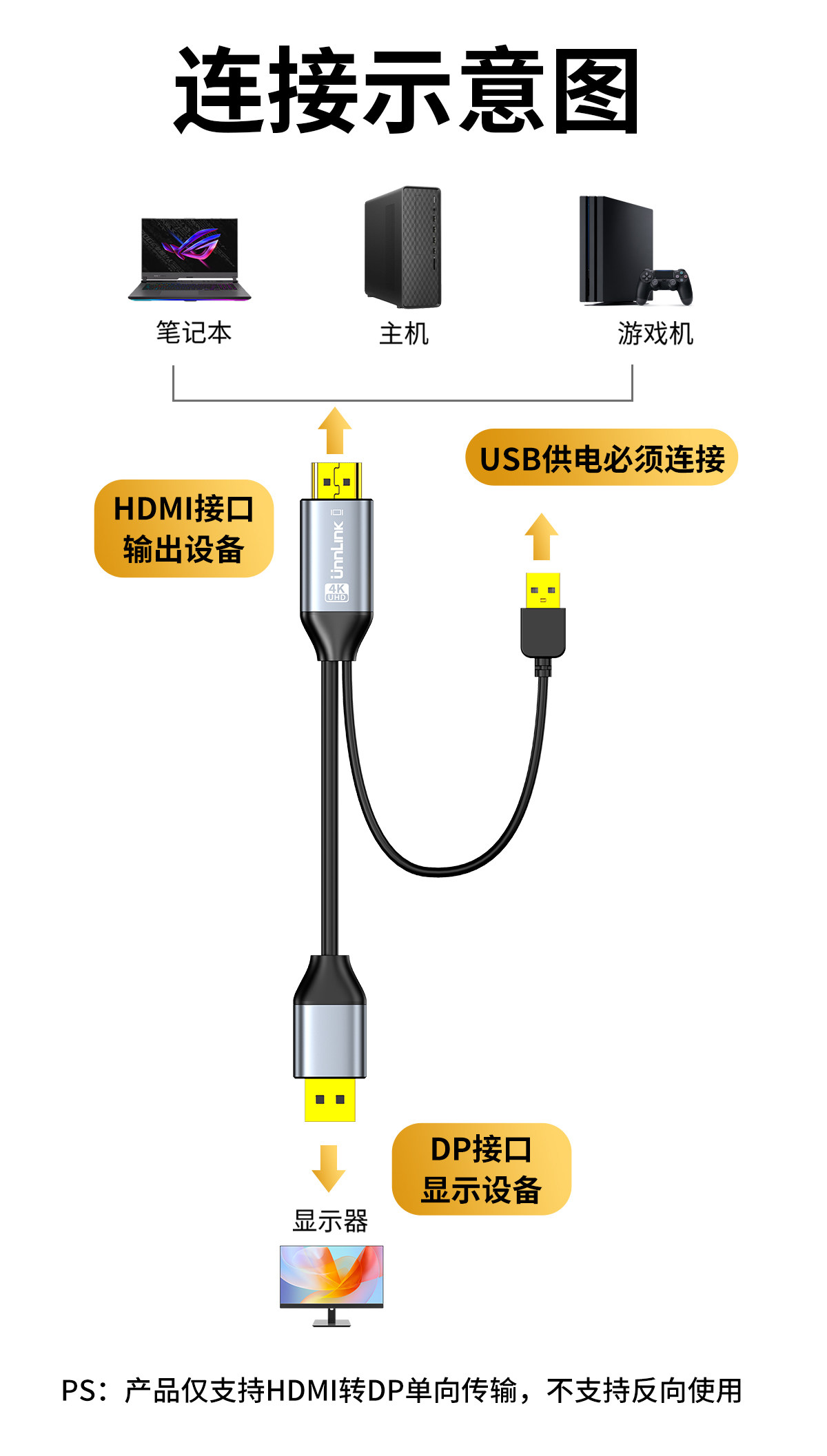 HDMI to Dp Cable Adapter 4K60 Laptop to Monitor Connection Cable High-Definition Video Adapter Cable