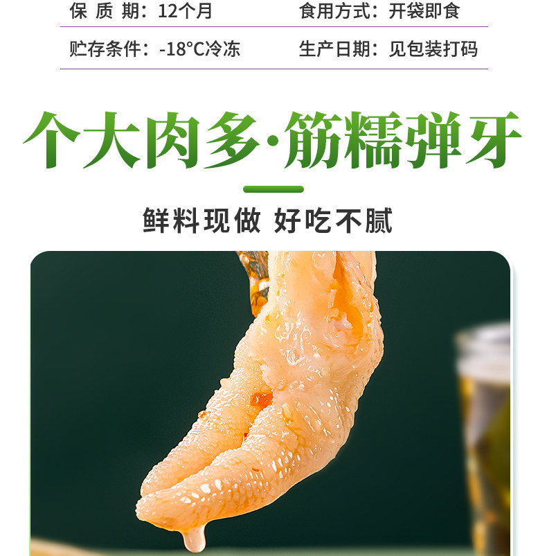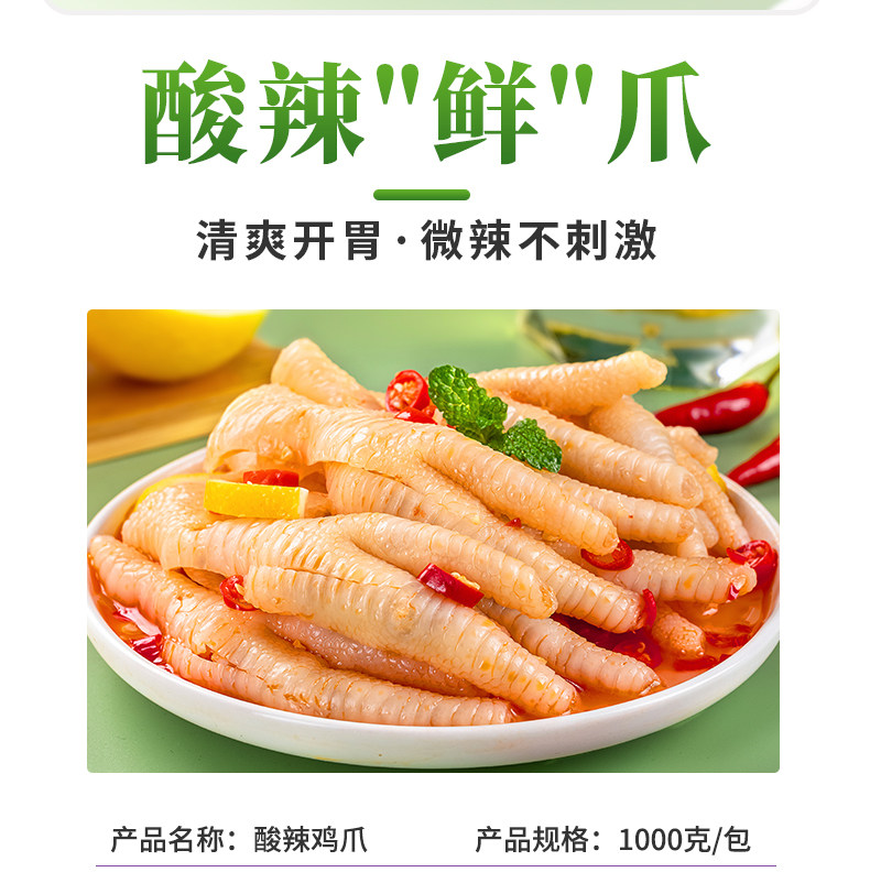 | Taste | 500g Lemon Chicken Feet (Slightly Spicy)*1 Pack,500g Old Vinegar Chicken Feet (Not Spicy)*1 Pack,1000g Pickled Vinegar Chicken Feet (Not Spicy)*1 Pack,1000g Lemon Chicken Feet (Slightly Spicy)*1 Pack,1000g Hot and Sour Chicken Feet (Medium Spicy)*1 Pack,[Full Box Commercial Discount] 1000g Vinegar Chicken Feet (Not Spicy) * 10 Packs,[Full Box Commercial Discount] 1000g Lemon Chicken Feet (Slightly Spicy)*10 Packs,[Full Box Commercial Discount] 1000g Hot and Sour Chicken Feet (Medium Spicy) * 10 Packs |