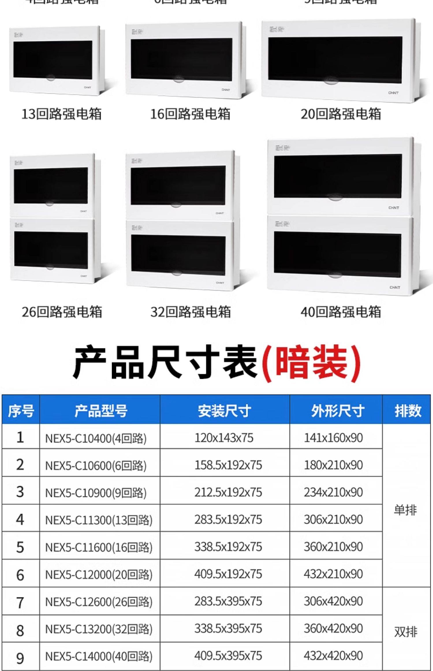 | Color Classification | Rose Red,Dark Gray,Red,Milky White,Black,Empty Box for Strong Current Box [Surface Mounted 4 Circuits],Empty Box for Strong Current Box [Surface Mounted 6 Circuits],Empty Box for Strong Current Box [Surface Mounted 9 Circuits],Empty Box for Strong Current Box [Surface Mounted 13 Circuits],Empty Box for Strong Current Box [Surface Mounted 16 Circuits],Empty Box for Strong Current Box [Surface Mounted 20 Circuits],Empty Box for Strong Current Box [Surface Mounted 26 Circuits],Empty Box for Strong Current Box [Concealed Installation of 4 Circuits],Empty Box for Strong Current Box [Concealed 6 Circuits],Empty Box for Strong Current Box [Concealed 9 Circuits],Empty Box for Strong Current Box [Concealed Installation of 13 Circuits],Empty Box for Strong Current Box [Concealed Installation of 16 Circuits],Empty Box for Strong Current Box [Concealed Installation of 20 Circuits],Chint Surface-Mounted 2-Way (2P Circuit Breaker Branch),Chint Surface-Mounted 4-Way (2P Circuit Breaker Branch),Chint Surface-Mounted 6-Way (2P Circuit Breaker Branch),Chint Surface-Mounted 8-Way (2P Circuit Breaker Branch),Chint Surface-Mounted 2-Way (Leakage Protection Branch),Chint Surface Mounted 3-Way (Leakage Protection Branch),Chint Surface-Mounted 4-Way (Leakage Protection Branch),Chint Surface Mounted 5-Way (Leakage Protection Branch),Chint Surface Mounted 6-Way (Leakage Protection Branch),Chint Surface-Mounted 7-Way (Leakage Protection Branch),Chint Surface Mounted 8-Way (Leakage Protection Branch),Chint Surface-Mounted 9-Way (Leakage Protection Branch),Chint Concealed 2-Way (Leakage Protection Branch),Chint Concealed 3-Way (Leakage Protection Branch),Chint Concealed 4-Way (Leakage Protection Branch),Chint Concealed 5-Way (Leakage Protection Branch),Chint Concealed 6-Way (Leakage Protection Branch),Chint Concealed 7-Way (Leakage Protection Branch),Chint Concealed 8-Way (Leakage Protection Branch),Chint Concealed 9-Way (Leakage Protection Branch),Outdoor Waterproof Surface-Mounted (2-Circuit Circuit Breaker),Outdoor Waterproof Surface-Mounted (4-Circuit Circuit Breaker),Chint Concealed 2-Way (2P Circuit Breaker Branch),Chint Concealed 4-Way (2P Circuit Breaker Branch),Chint Concealed 6-Way (2P Circuit Breaker Branch),Chint Concealed 8-Way (2P Circuit Breaker Branch),Chint Surface Mounted 5-Way (1P Circuit Breaker Branch),Chint Surface-Mounted 9-Way (1P Circuit Breaker Branch),Chint Surface-Mounted 6-Way (Leakage Protection Branch with Over- and Under-Voltage),Chint Concealed 5-Way (1P Circuit Breaker Branch),Chint Concealed 9-Way (1P Circuit Breaker Branch),Chint Concealed 6-Way (Leakage Protection Branch with Over- and Under-Voltage),Chint Distribution Box, Single Room, Single Bathroom, Concealed Installation,Chint One Bedroom, One Bathroom and One Kitchen, Concealed Installation,Chint One Bedroom, One Living Room, One Bathroom, and One Kitchen - Concealed Installation,Chint Two Bedrooms, One Living Room, Two Bathrooms and One Kitchen, Concealed Installation,Chint Three Bedrooms, One Living Room, Three Bathrooms and One Kitchen, Concealed Installation,Chint One Bedroom, One Bathroom and One Kitchen, Surface Mounted,Chint Two Bedrooms, One Living Room, Two Bathrooms and One Kitchen, Surface Mounted,Chint Distribution Box, One Room, One Bathroom, Surface Mounted,Chint One Bedroom, One Living Room, One Bathroom, and One Kitchen - Surface Mounted,Chint Three Bedrooms, One Living Room, Three Bathrooms and One Kitchen, Surface Mounted,To Customize Other Configurations, Please Contact Customer Service 13750338396 |