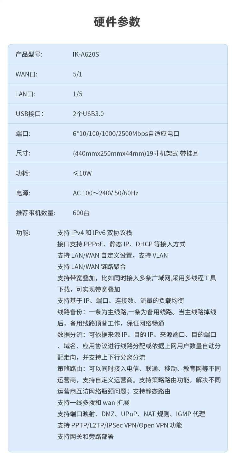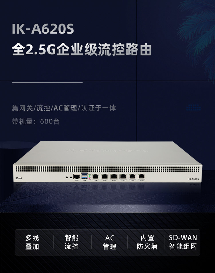 Aikuai Router 2.5g Multi-Network Aggregation Router Ikuai Wired Enterprise-Grade Multi-Wan Port Broadband Overlay Behavior Management Firewall Supports Ipv6 Virtual Machine A620S Without Wifi