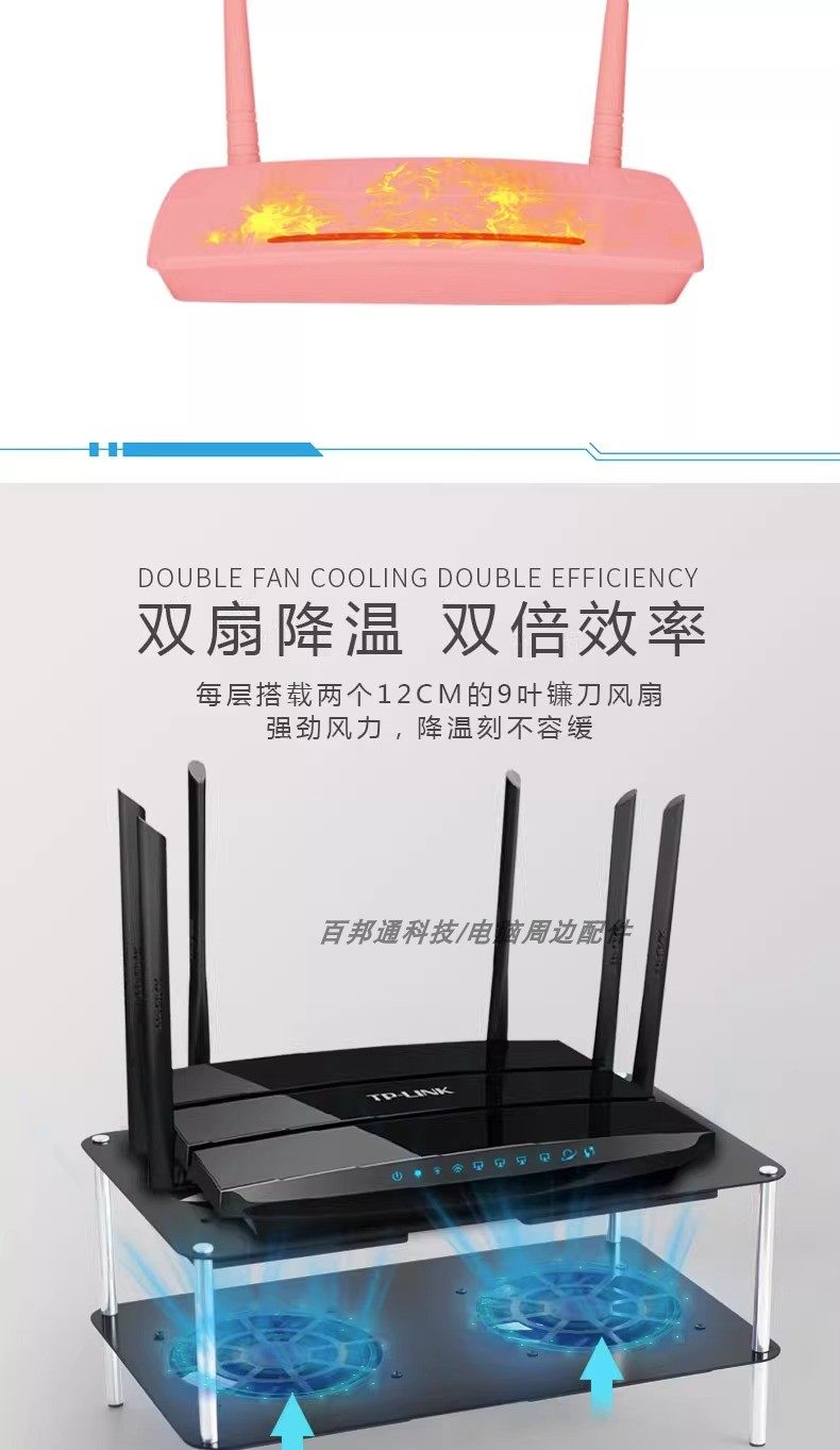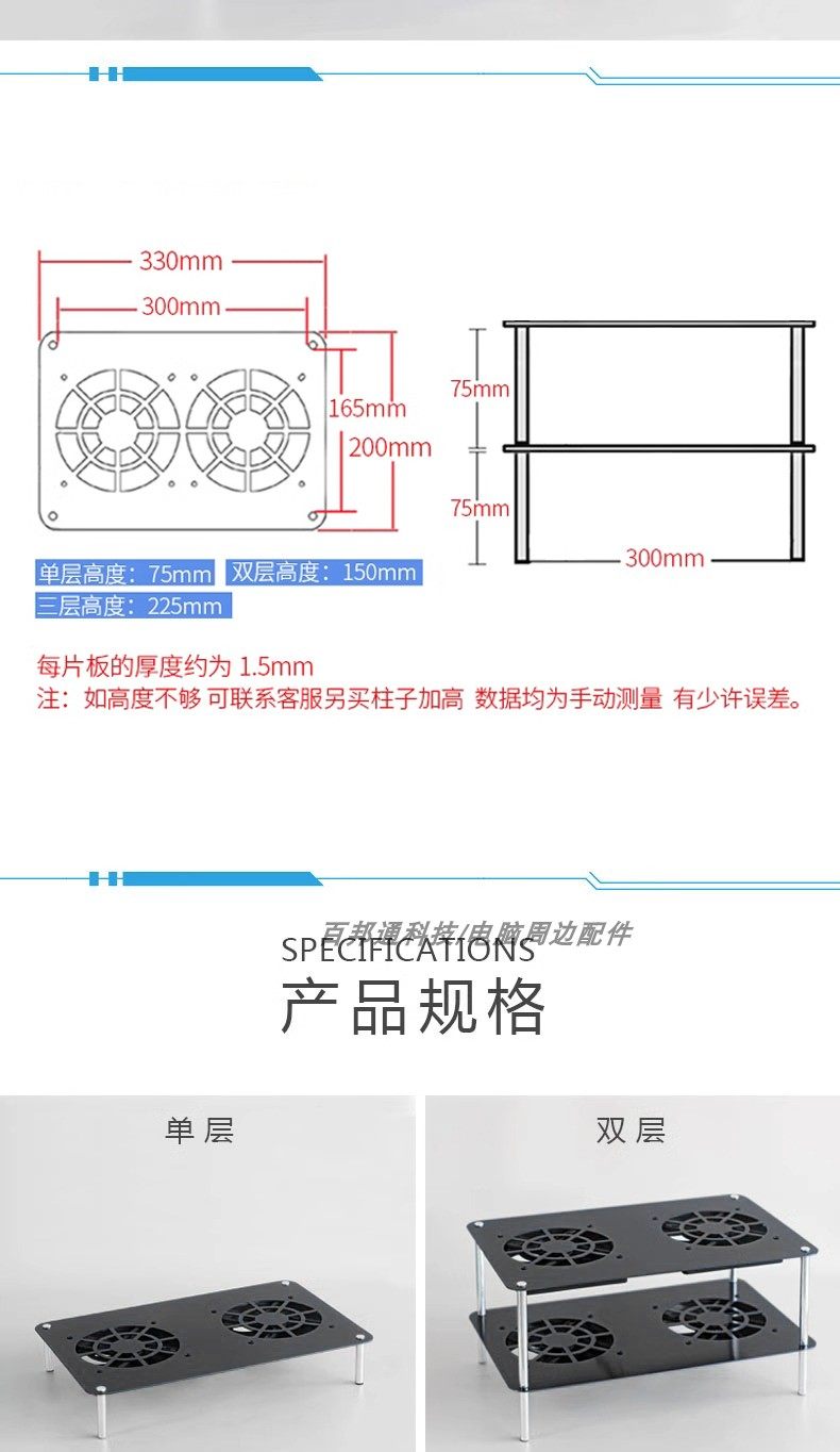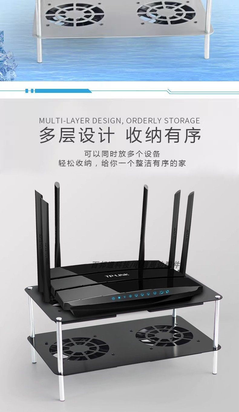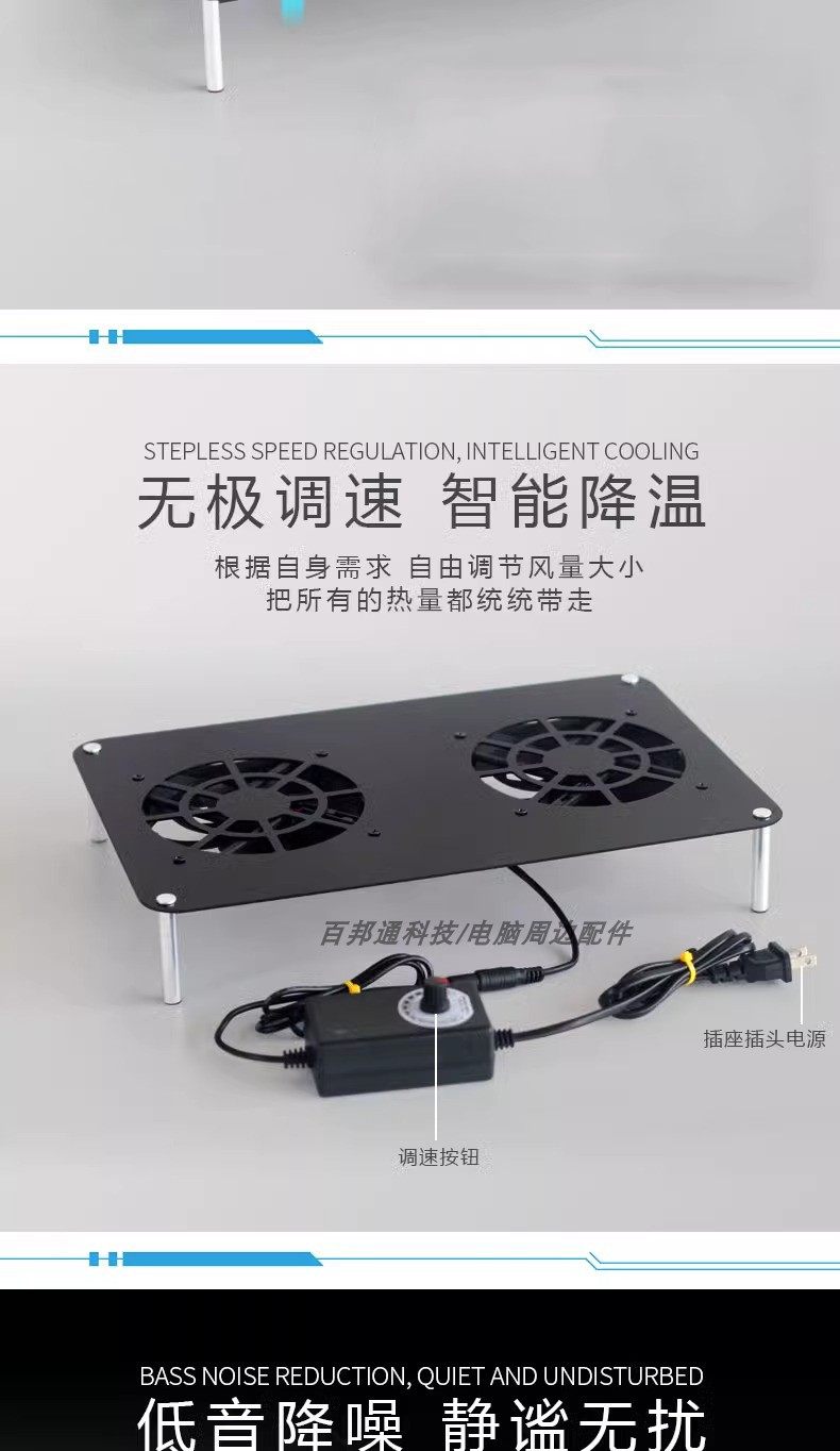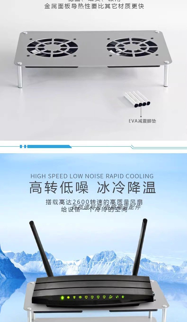 Extended Large Router Cooling Aluminum Plate Bracket Switch Optical Modem Set-Top Box Radiator Fan Speed Adjustment Silent