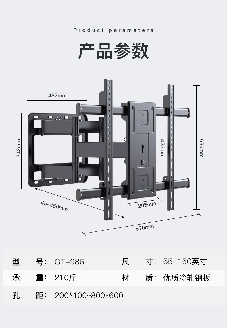 | Color Classification | [New Gt-8]40mm Away from the Wall/600X400 Hole Spacing/Bearing 75kg,[Type a Gt-965]45mm Away from the Wall/600X500 Hole Spacing/Bearing 80kg,[Model B Gt-62]45mm Away from the Wall/800X600 Hole Spacing/Bearing 100kg,[C Model Gt-986]45mm Away from the Wall/900X600 Hole Spacing/Bearing 100kg,[D Type Gt-6]42mm Away from the Wall/900X600 Hole Spacing/Bearing 120kg,[E Type Gt-6Plus]42mm Away from the Wall/1200X600 Hole Spacing/Bearing 120kg |