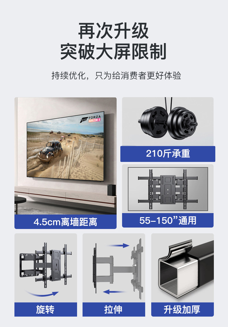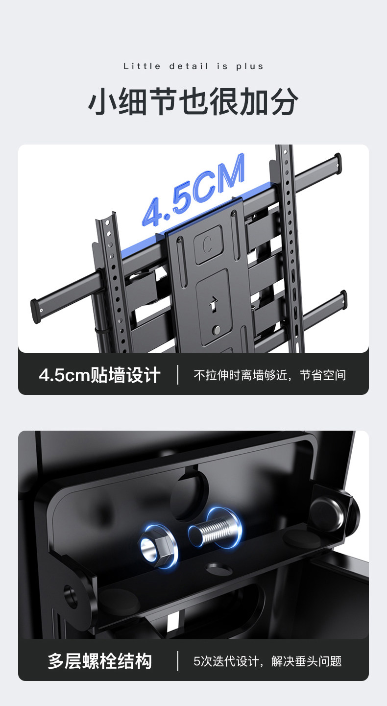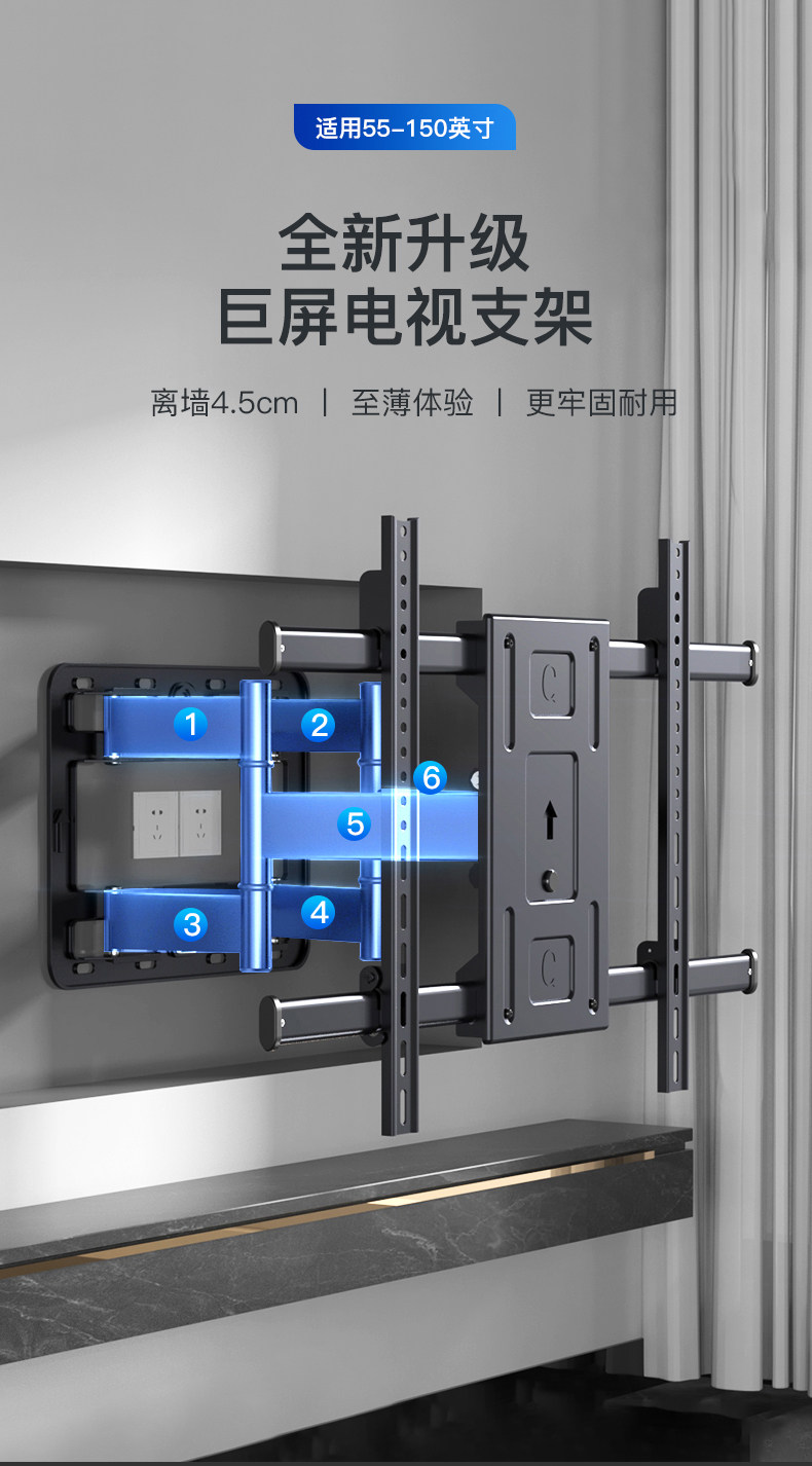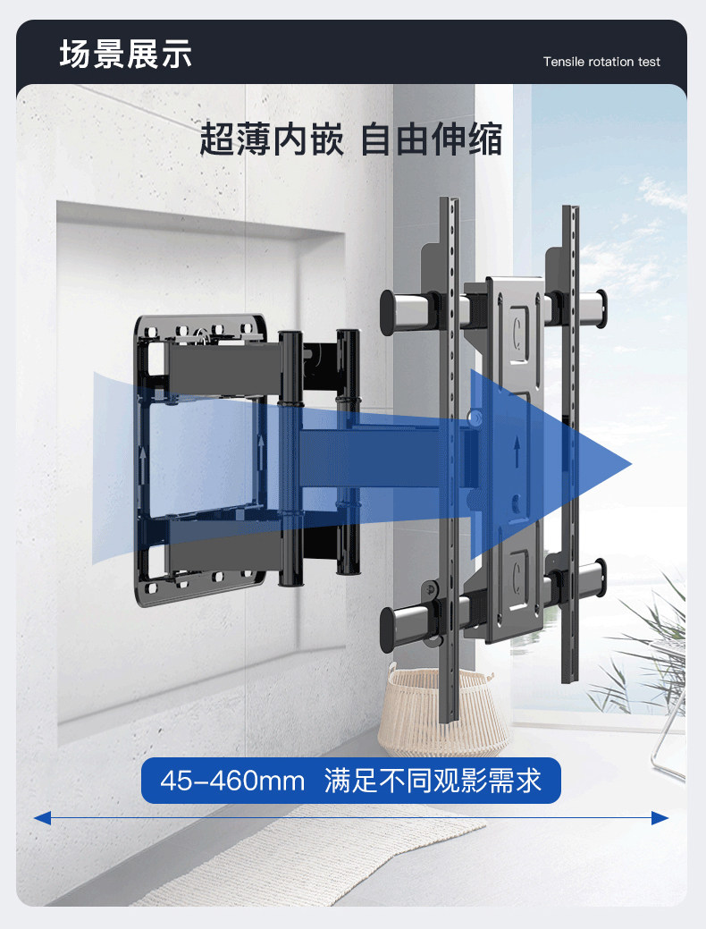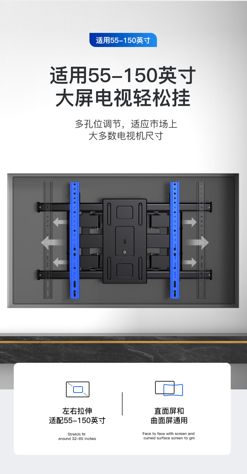 Ultra-Thin Tv Mount, Telescopic and Rotatable, Wall-Mounted Bracket, Universal for 55, 65, 75, 85, 100inch Inch All-In-One Machines