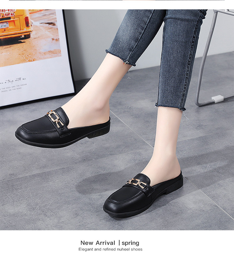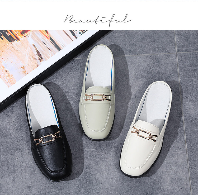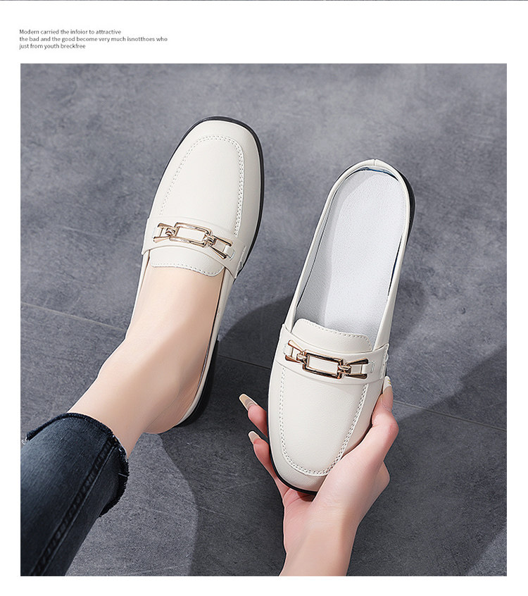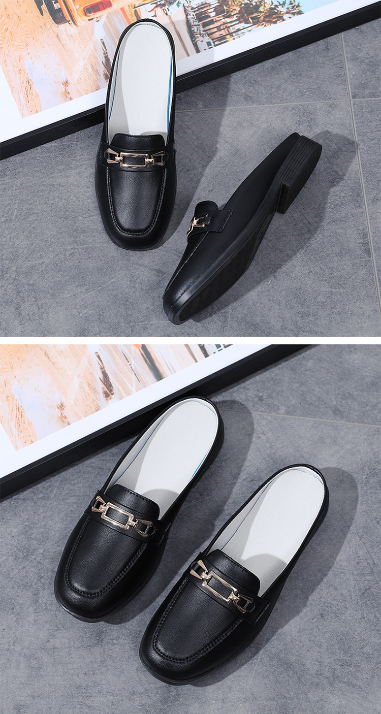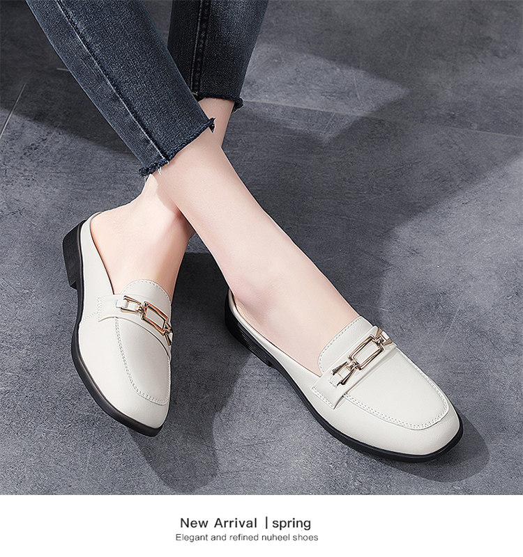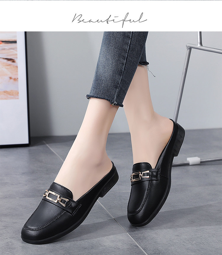 Special Offer Genuine Leather Half-Slip-On Women's Shoes 2026 Spring New Style Lazy Slip-On Flat Sandals for Outdoor Wear