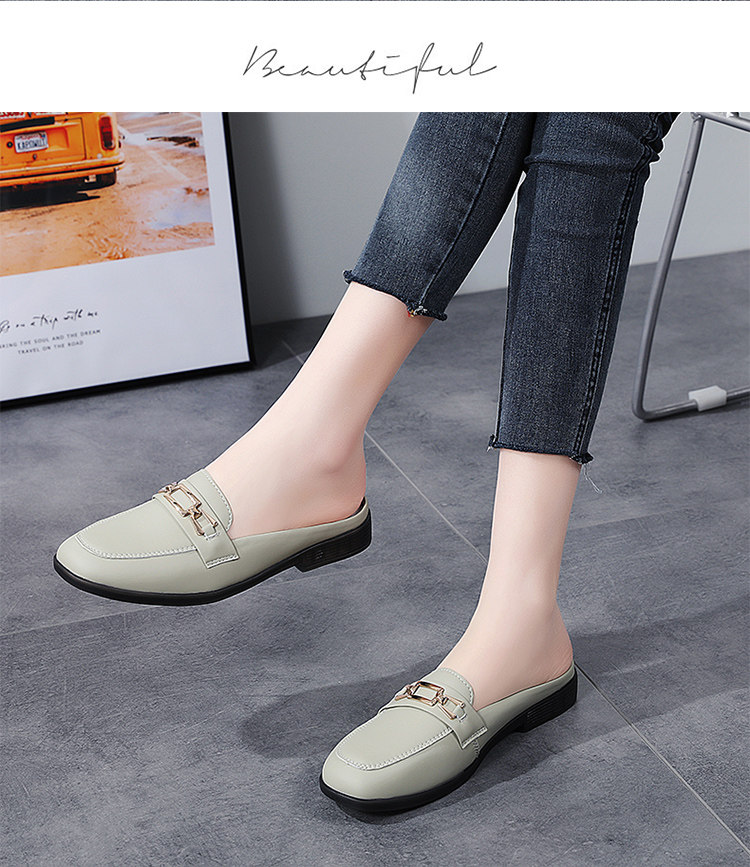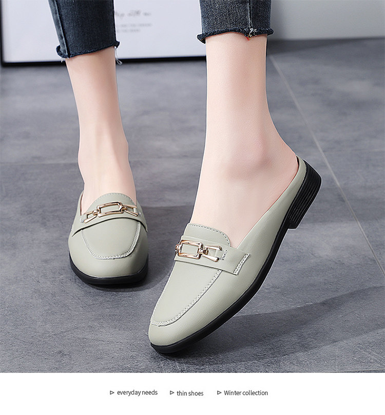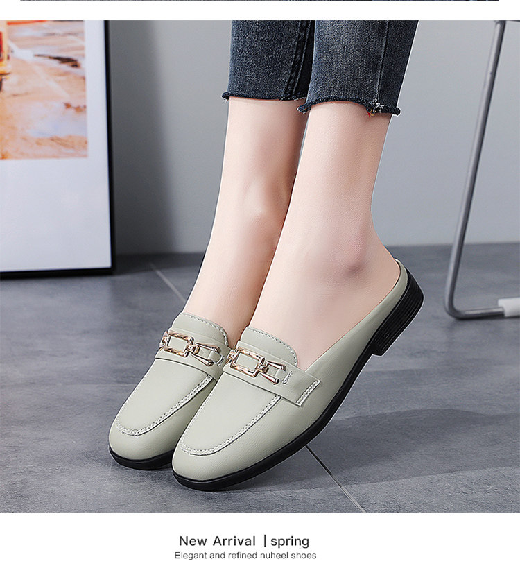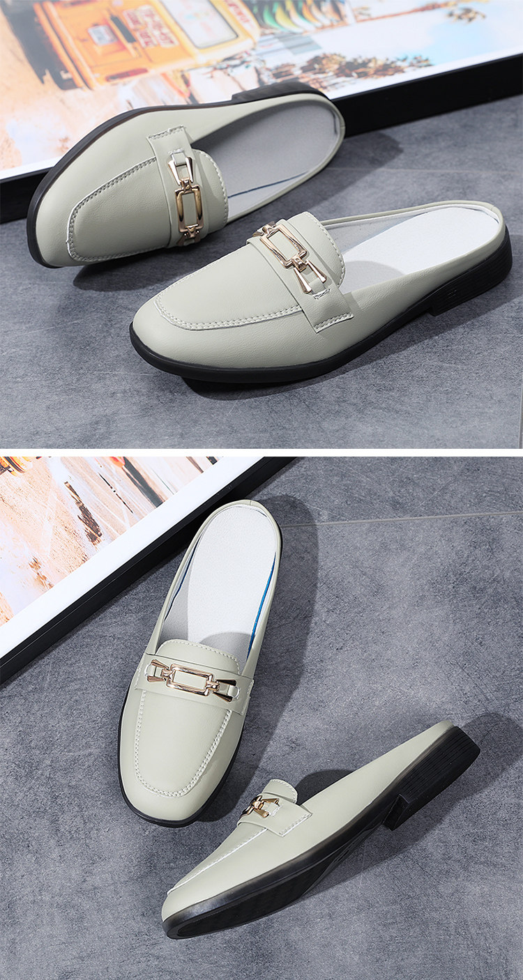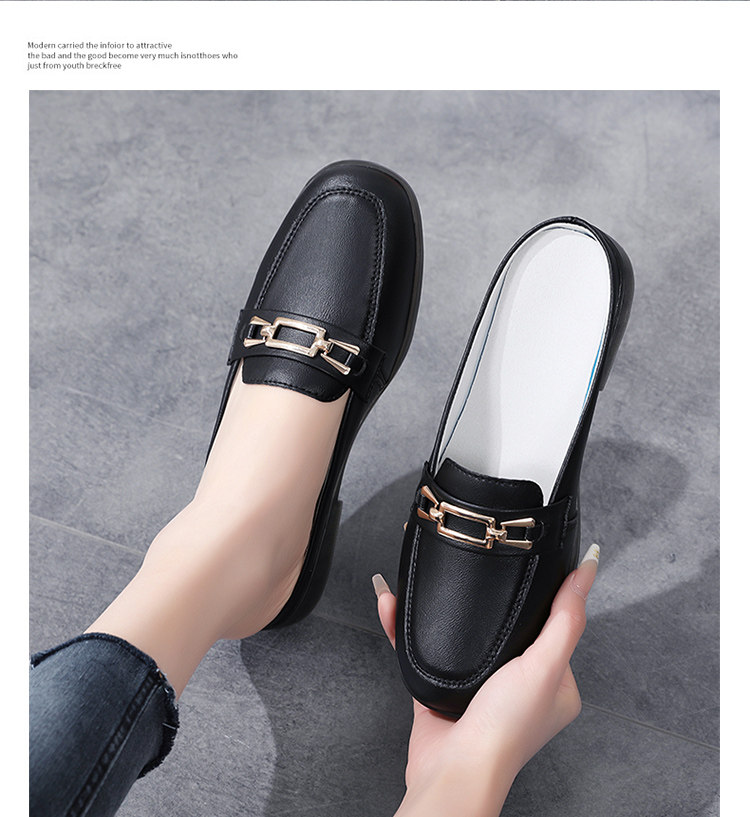 Special Offer Genuine Leather Half-Slip-On Women's Shoes 2026 Spring New Style Lazy Slip-On Flat Sandals for Outdoor Wear