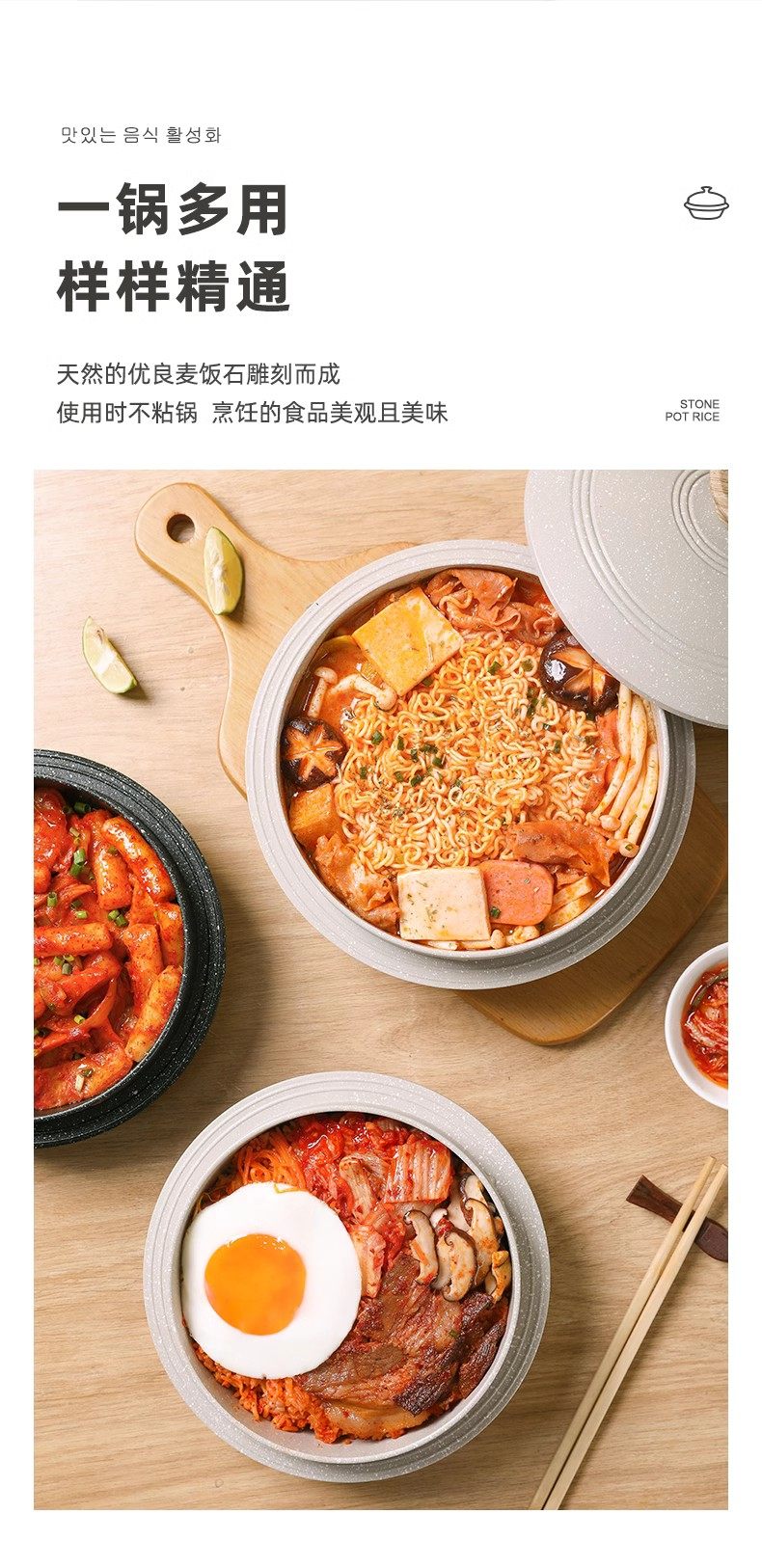 Korean Imported Household Maifan Stone Pot, Special Pot for Bibimbap, High-Temperature Resistant, Suitable for Soup and Claypot Rice, Compatible with Induction Cookers and Gas Stoves
