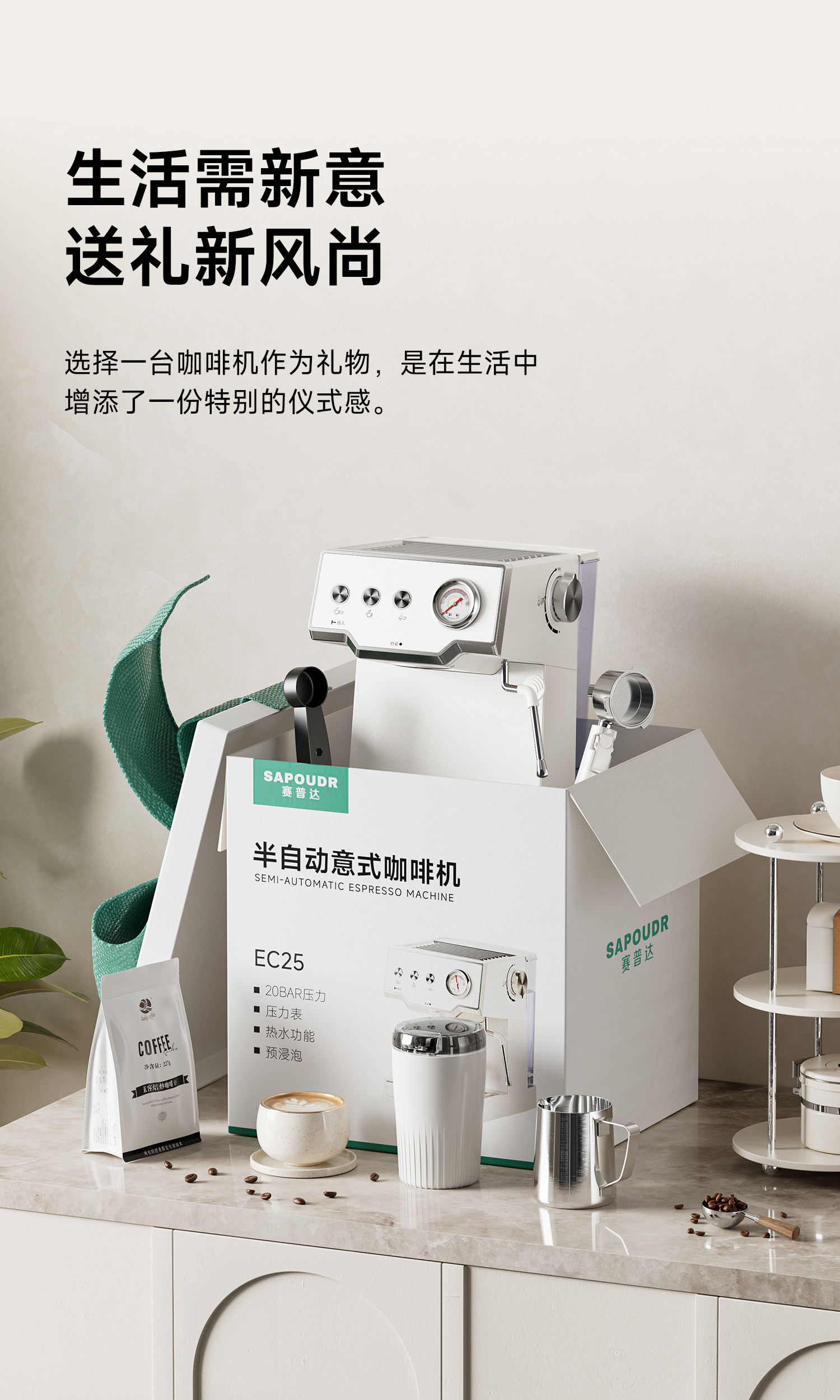 New Product & Gift [Latte Art Coffee Machine] Saipuda Ec25 Small Household Semi-Automatic Espresso Machine with Steam Milk Frother