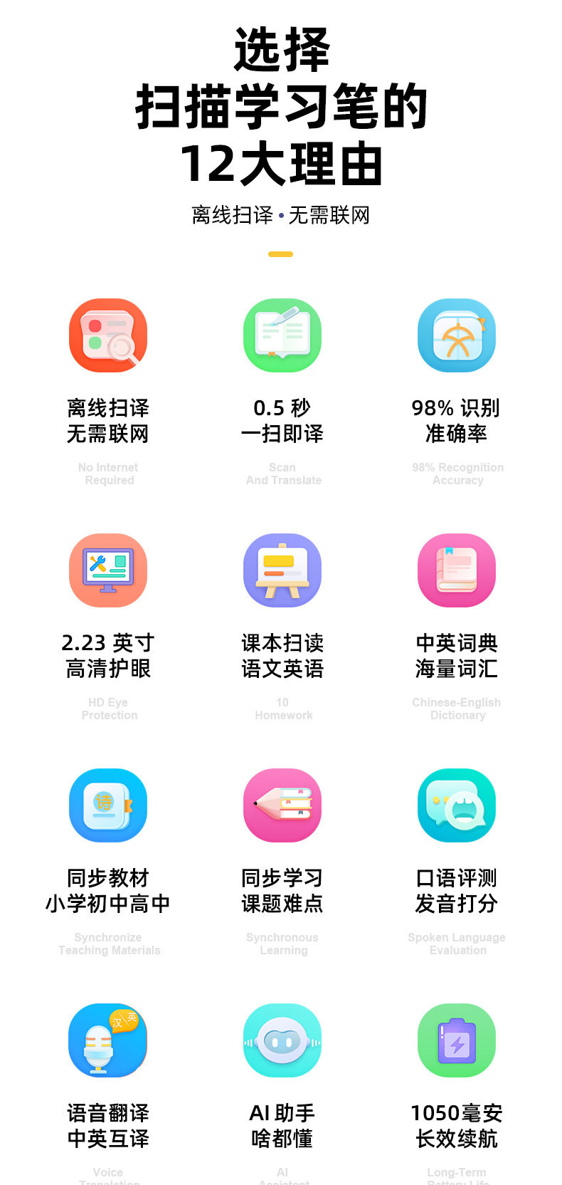English Smart Offline Reading Pen, Scanning Pen, Dictionary Pen, Smart Learning Translation Pen, Universal for Primary and Secondary School Students