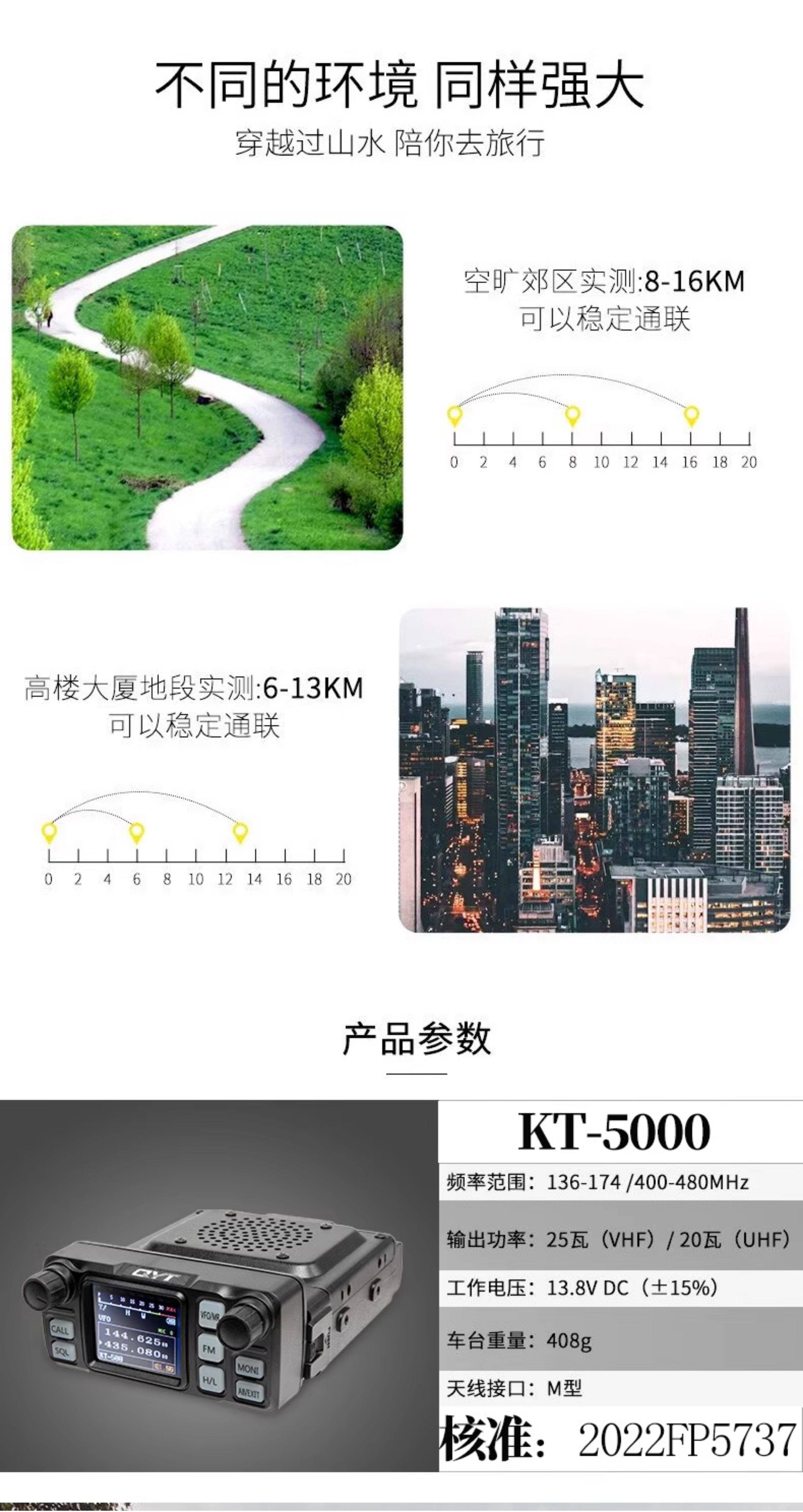 Quanyi Car Radio Kt5000 Panel Separable Chinese Mini Car Radio Walkie-Talkie High Power for Self-Driving Off-Road