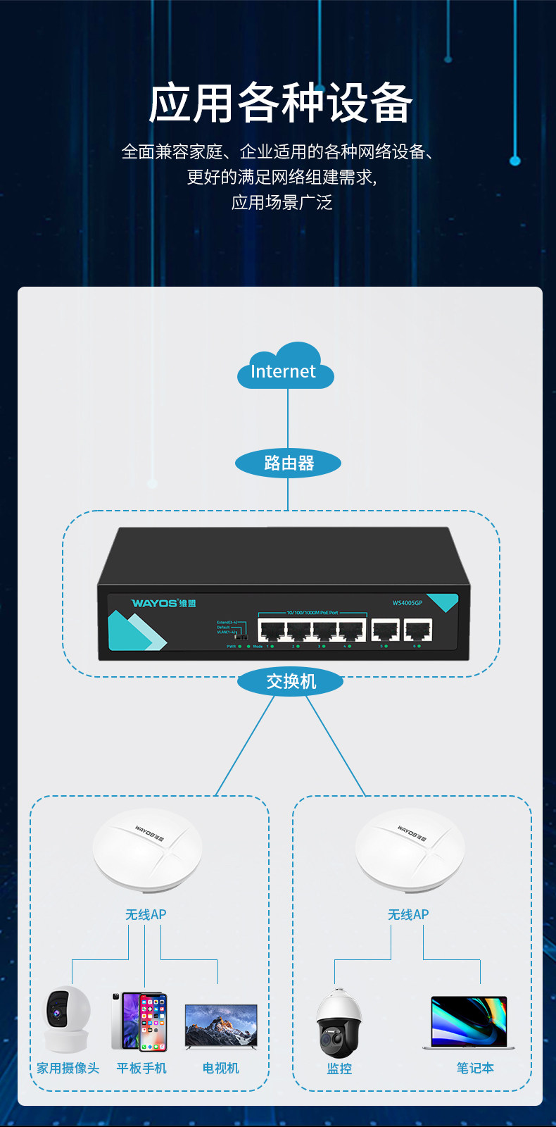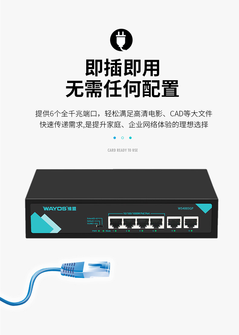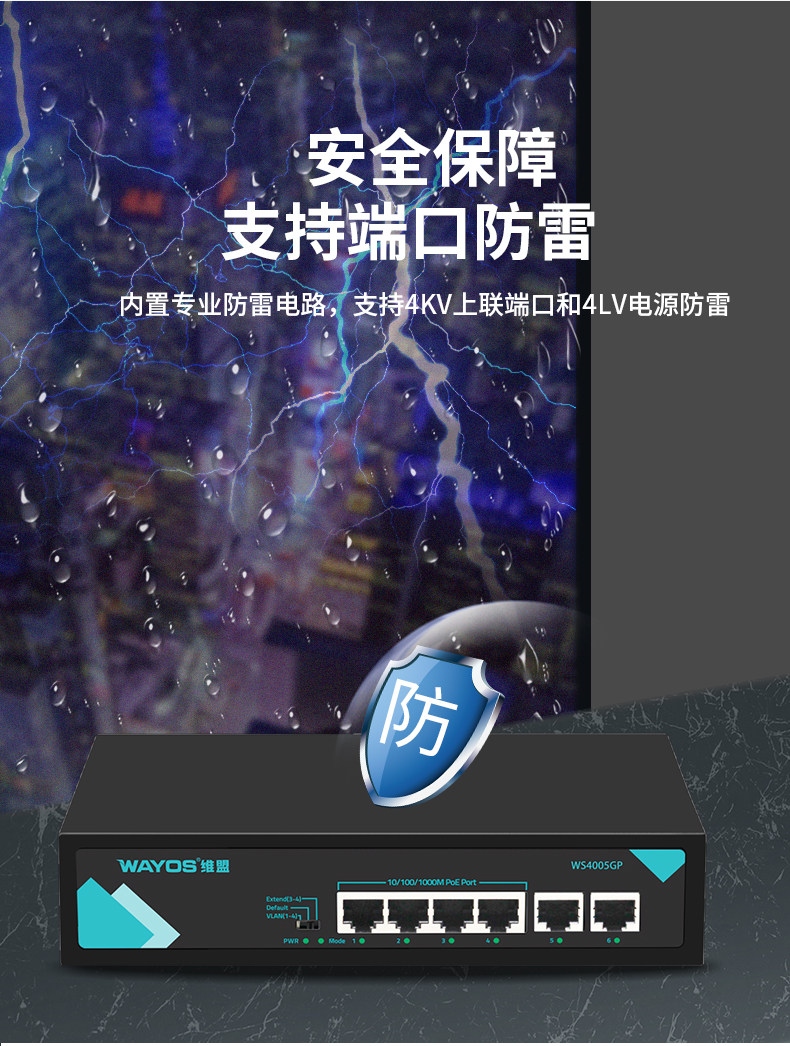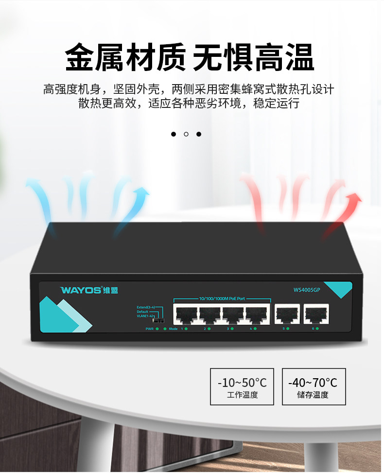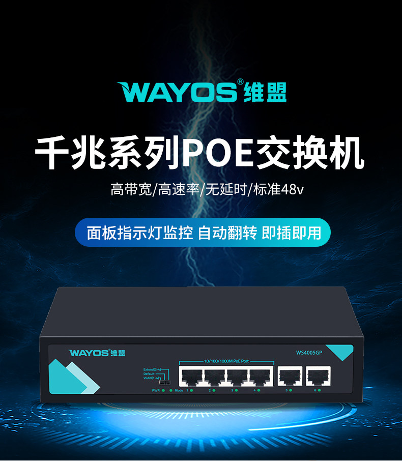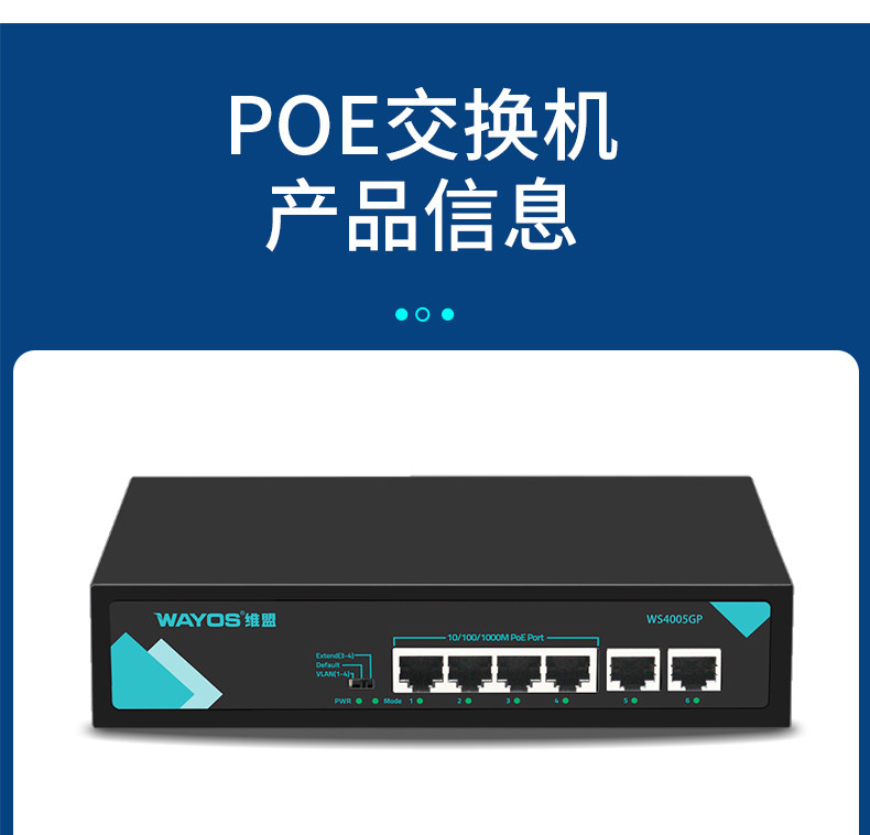 Wayos Ws40005Gp/4-Port Poe Powered Full Gigabit Switch Ethernet Office Dormitory Factory Enterprise Monitoring Management Wireless Ap Network Splitter Switch