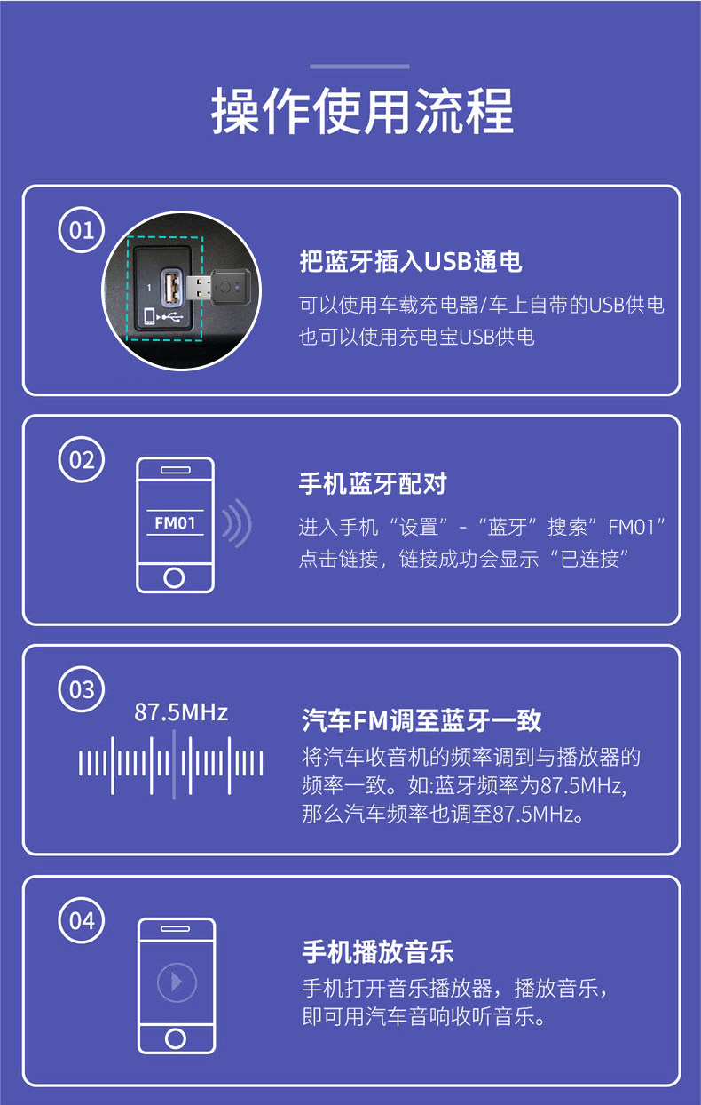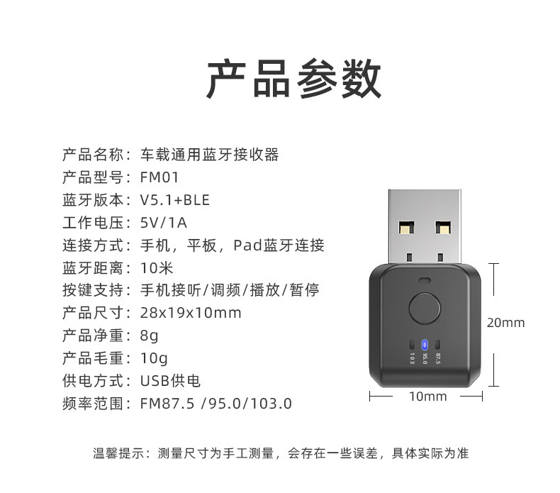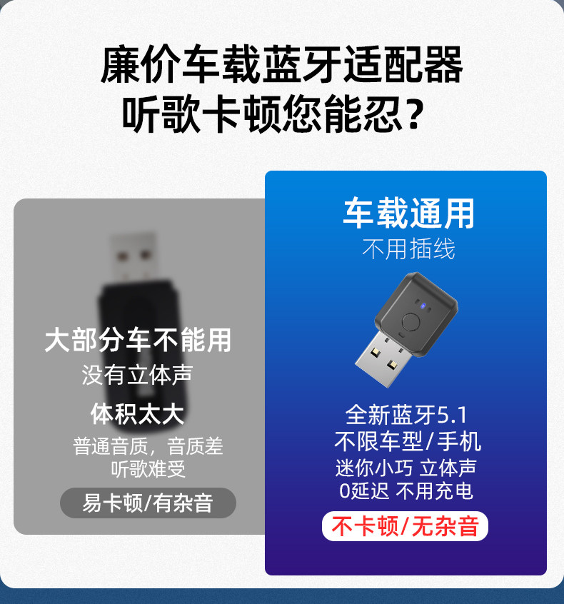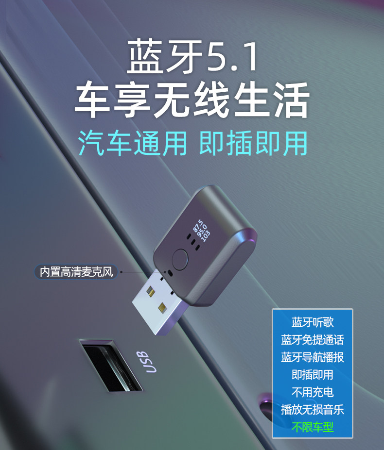USB Car Bluetooth Receiver 5.1 Car Audio Fm Transmitter Audio Conversion Call Lossless Stereo Universal