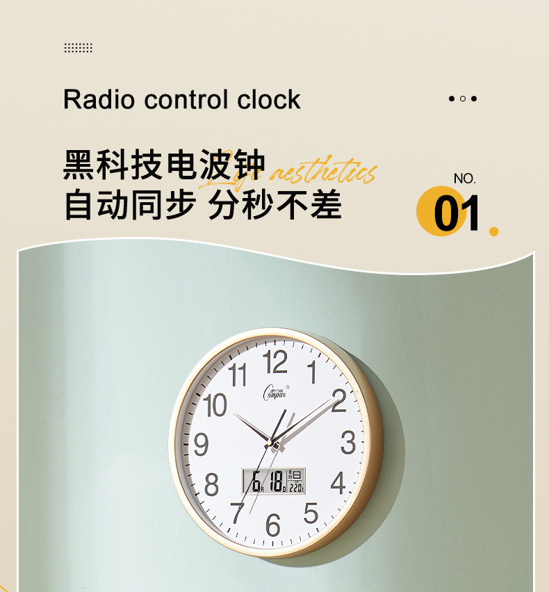Kangbas Smart Wall Clock Modern Minimalist Radio-Controlled Clock Automatic Time Setting Living Room Home Wall-Mounted Silent Clock Wall Watch