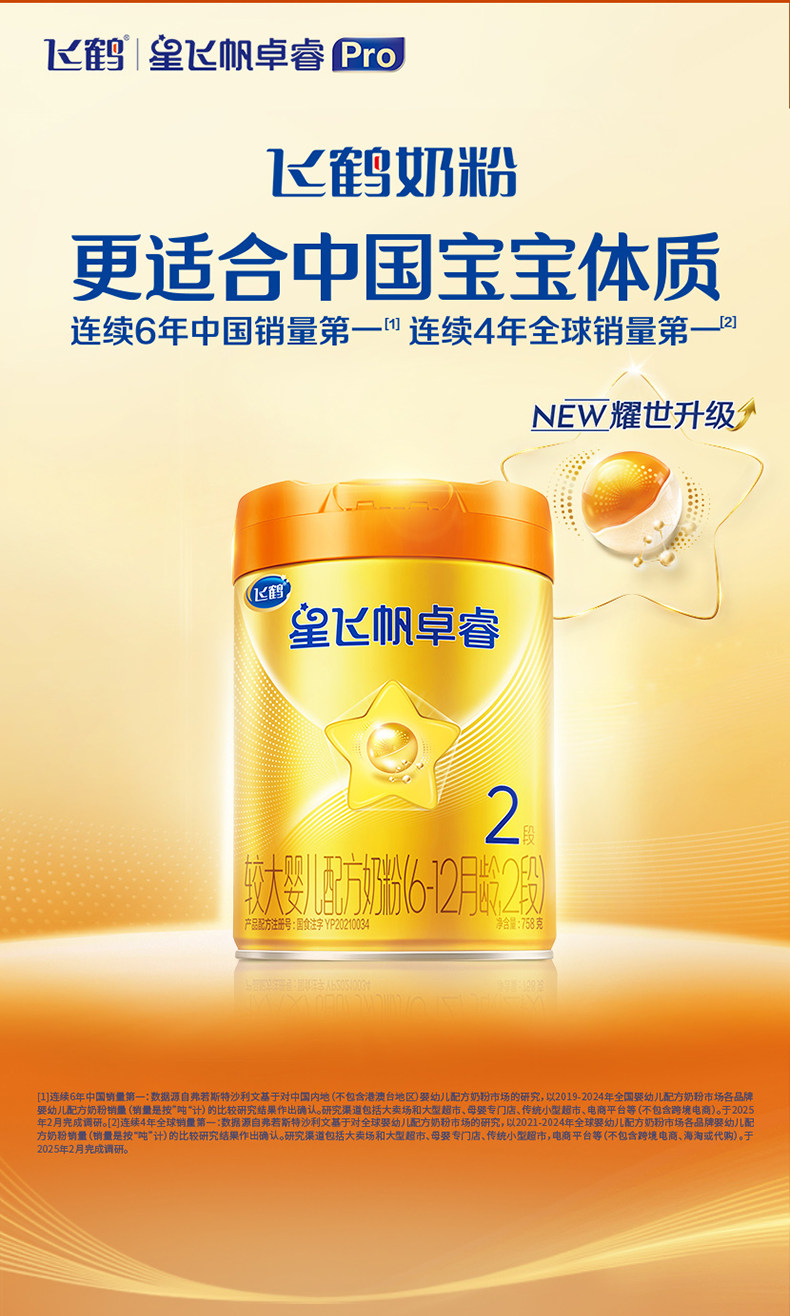 Be the First to Buy | Feihe Xingfeifan Zhuorui Proa2Β-Casein 2-Stage Infant Milk Powder 758g*6 Cans