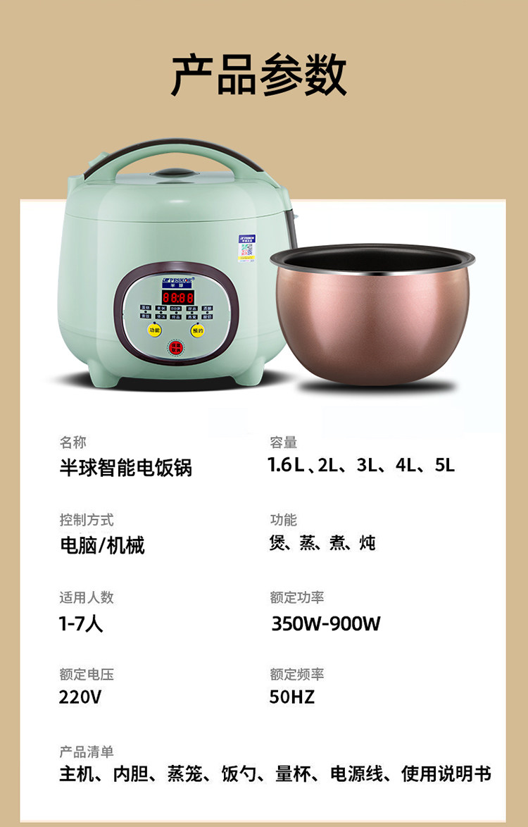 | Color Classification | Mechanical 1.6L Standard Non-Stick Inner Pot - Single Serving,Mechanical 1.6L Ball-Shaped Kettle with Non-Stick Inner Pot, Single Serving,Mechanical 2.0L Spherical Kettle Non-Stick Bladder for 1-3 People,Mechanical 3.0L Spherical Kettle Non-Stick Bladder for 2-4 People,Mechanical 4.0L Spherical Kettle with Non-Stick Bladder for 3-6 People,Mechanical 5.0L Spherical Kettle with Non-Stick Bladder for 4-7 People,Smart 1.6L Ball-Shaped Kettle with Non-Stick Inner Pot - Single Serving,Smart 2.0L Spherical Kettle Non-Stick Bladder for 1-2 People,Smart 3.0L Spherical Kettle Non-Stick Bladder for 2-4 People,Smart 4.0L Spherical Kettle with Non-Stick Bladder for 3-6 People,Smart 5.0L Spherical Kettle with Non-Stick Bladder for 4-7 People |