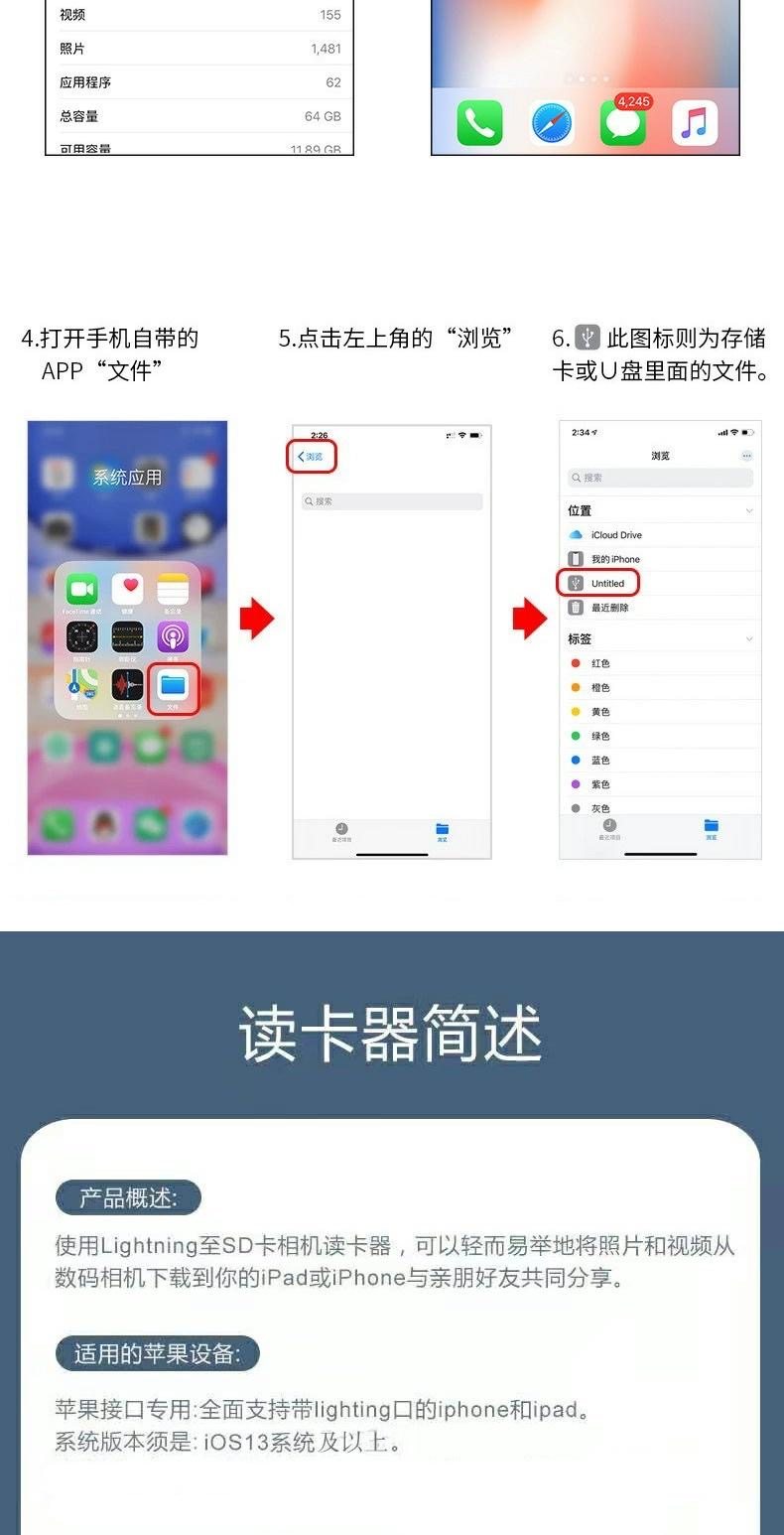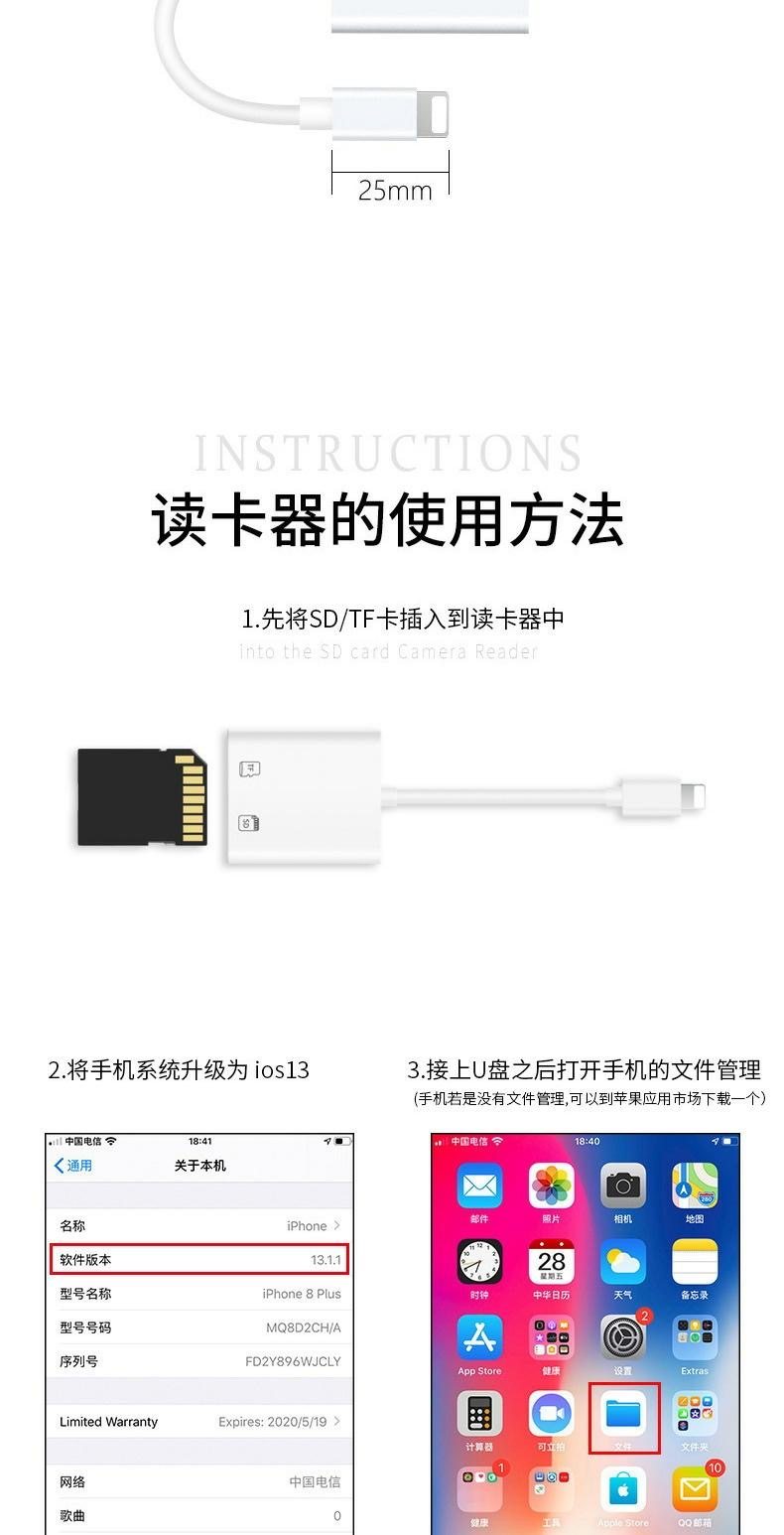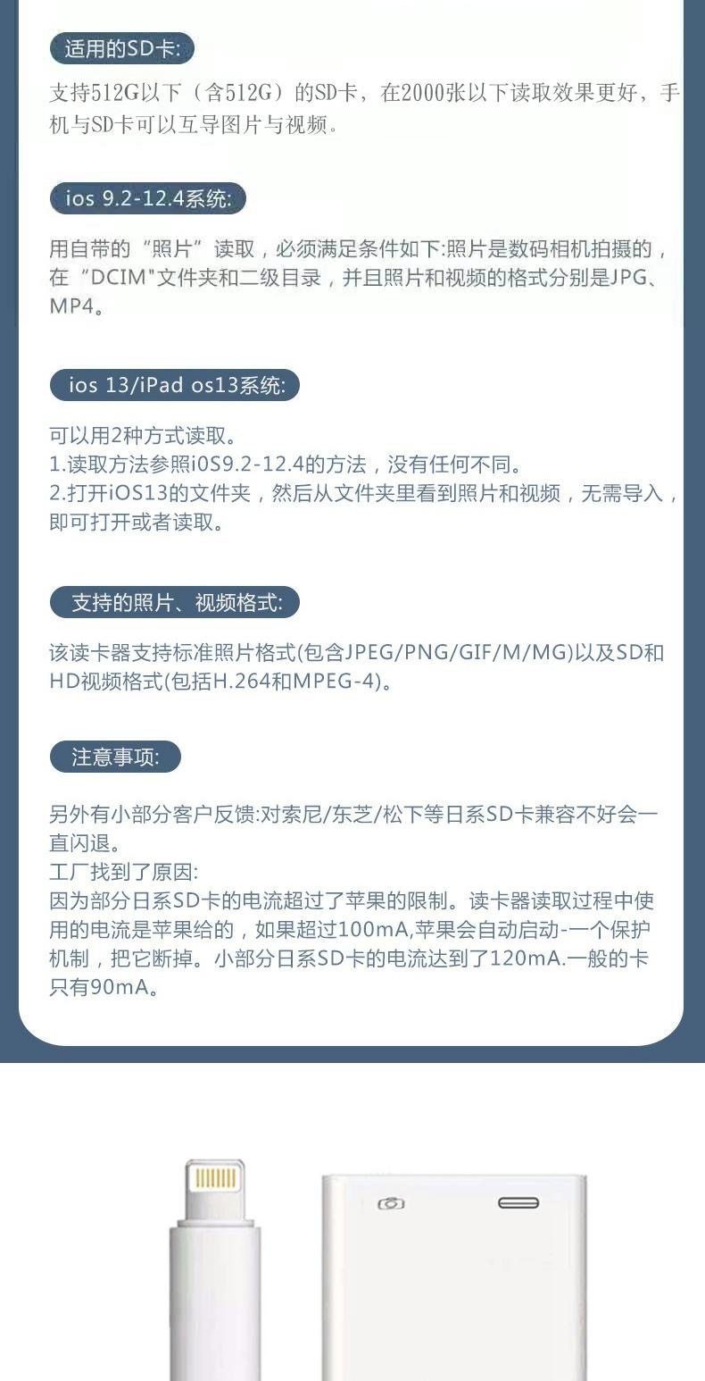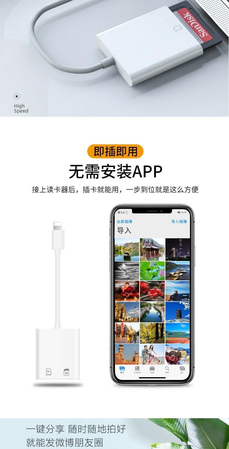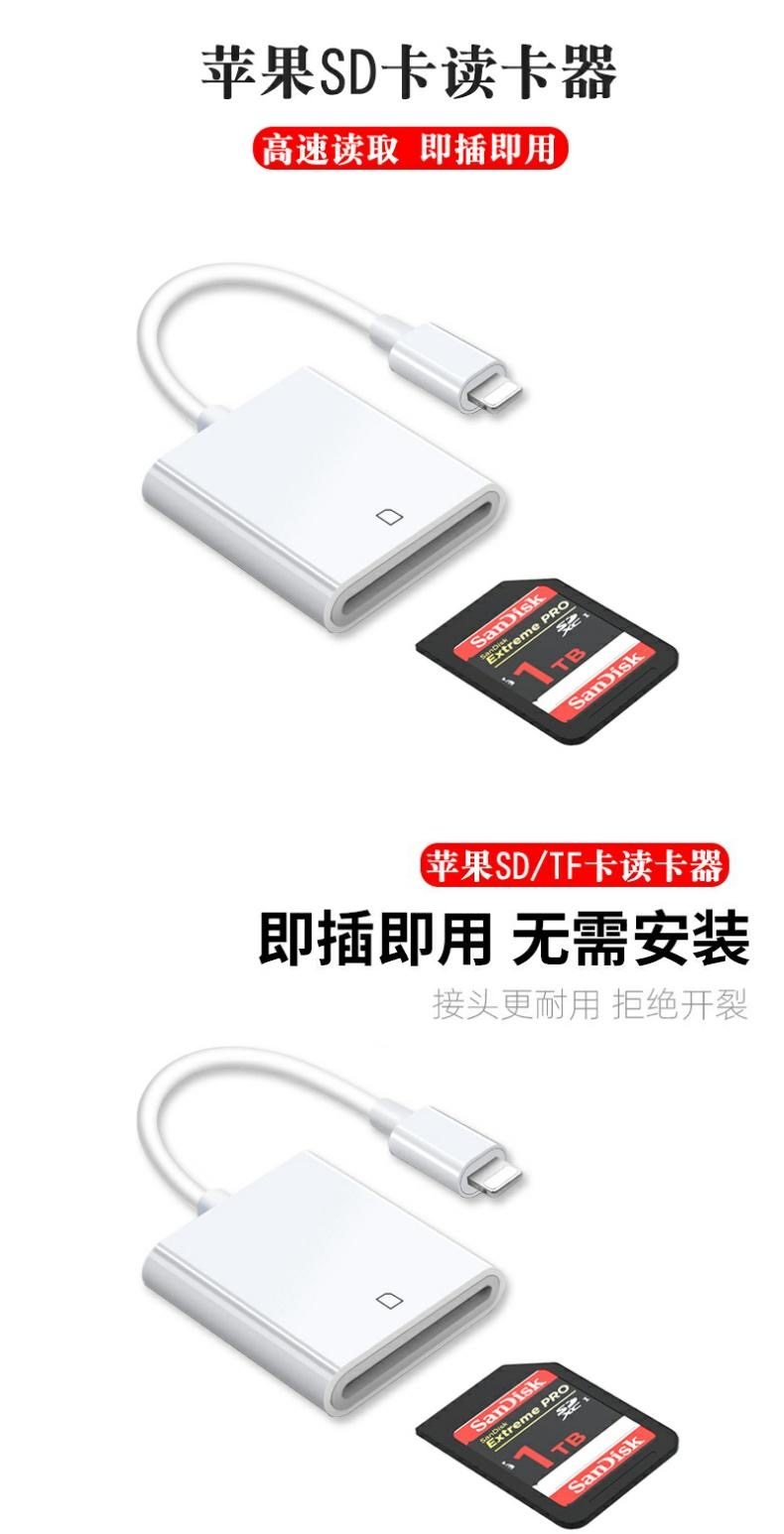 | Color Classification | Usb2.0, Apple Lighting to Sd/Tf Card [Supports Sd/Tf Card/Export and Import* Comes with Tf Card Holder],Usb2.0, Usb-C (Type-C) to Sd/Tf Card [Supports Sd/Tf Card/Export and Import* Comes with Tf Card Holder],Usb2.0, Single-Port Apple Phone Otg Converter (Supports U Disk Expansion/Mouse/Keyboard/Camera, Etc.),Usb2.0, Dual-Port Apple Phone Otg Converter (Supports Wireless Microphone/Computer Hard Drive/U Disk/Mouse/Keyboard/Game Controller/Sound Card/Camera, Etc.) |