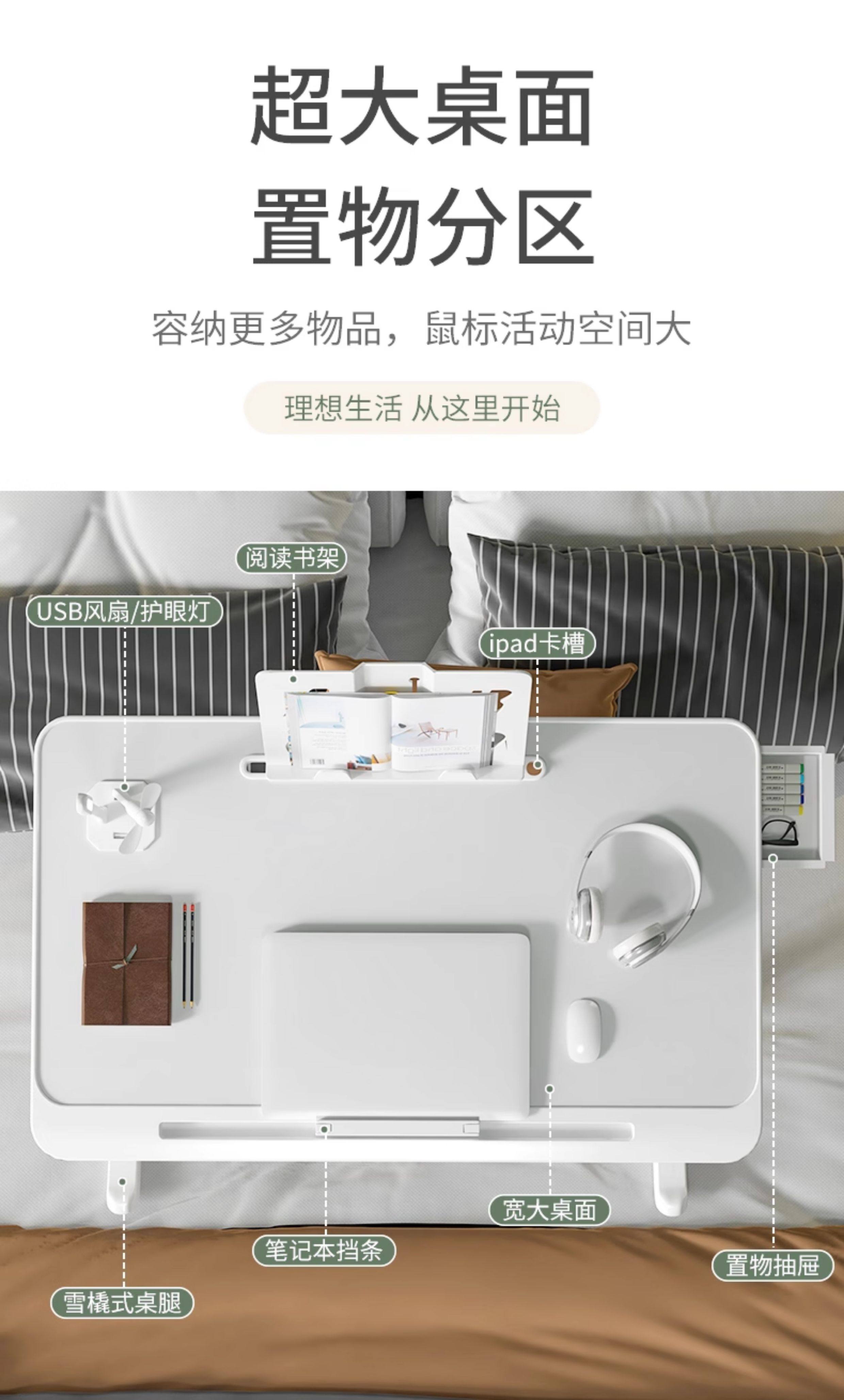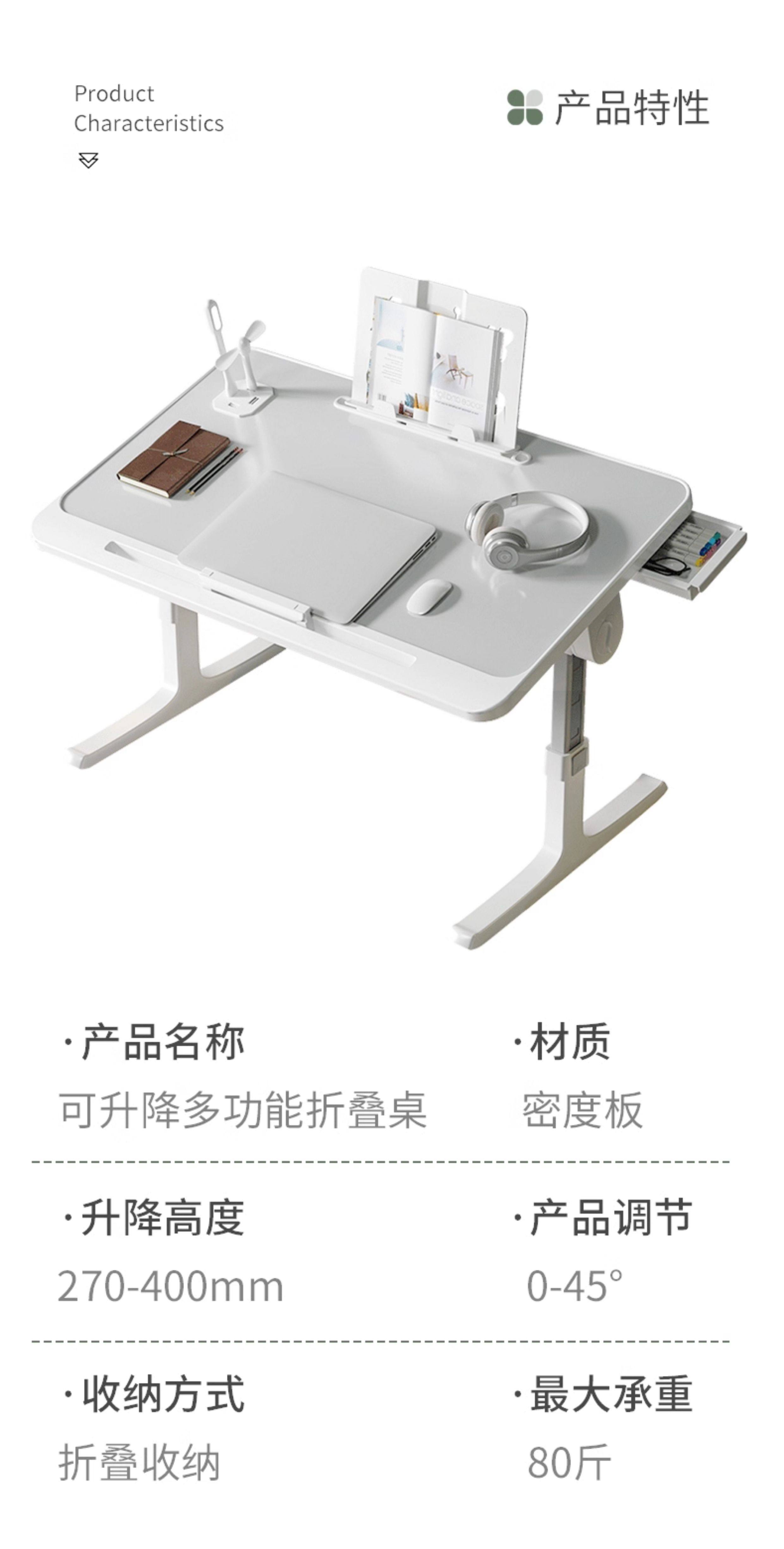 Foldable Bed Study Desk, Simple Dormitory Essential for Students in Upper Bunks, Writing Desk for Bed, Height-Adjustable Stand, Home Office Study, Bay Window Lazy Laptop Desk, Small Table