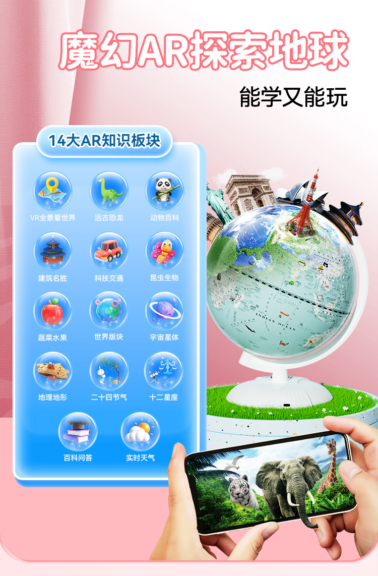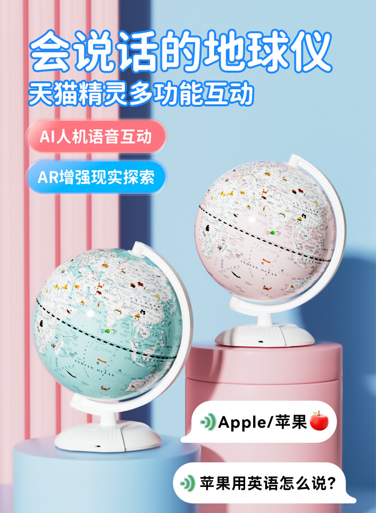 Tmall Genie Globe Children's Educational Talking Table Lamp Gemini Macaron Ar Glowing 3D Floating Pink Light Girl Boy Birthday Gift Ai Smart Night Light Ornament