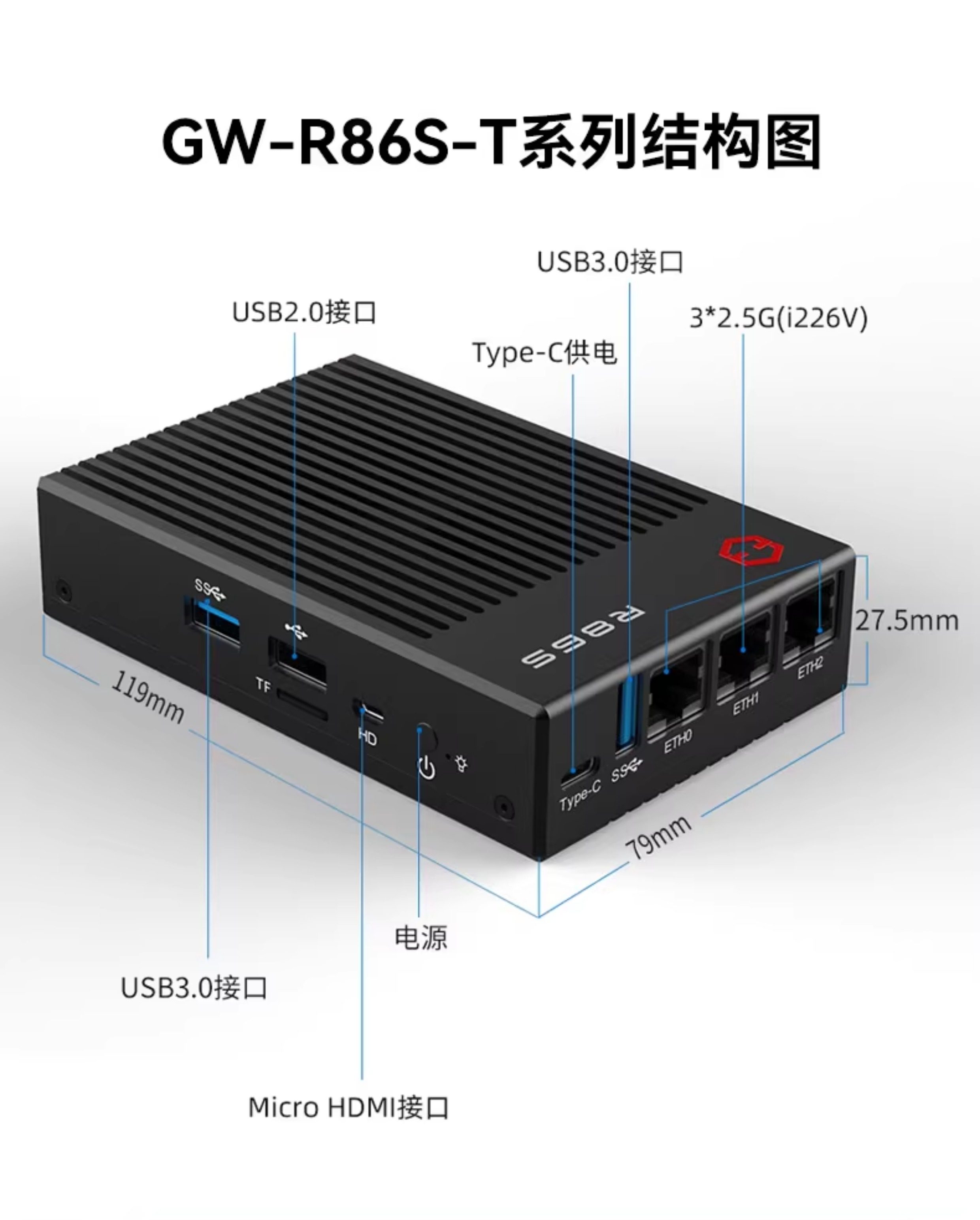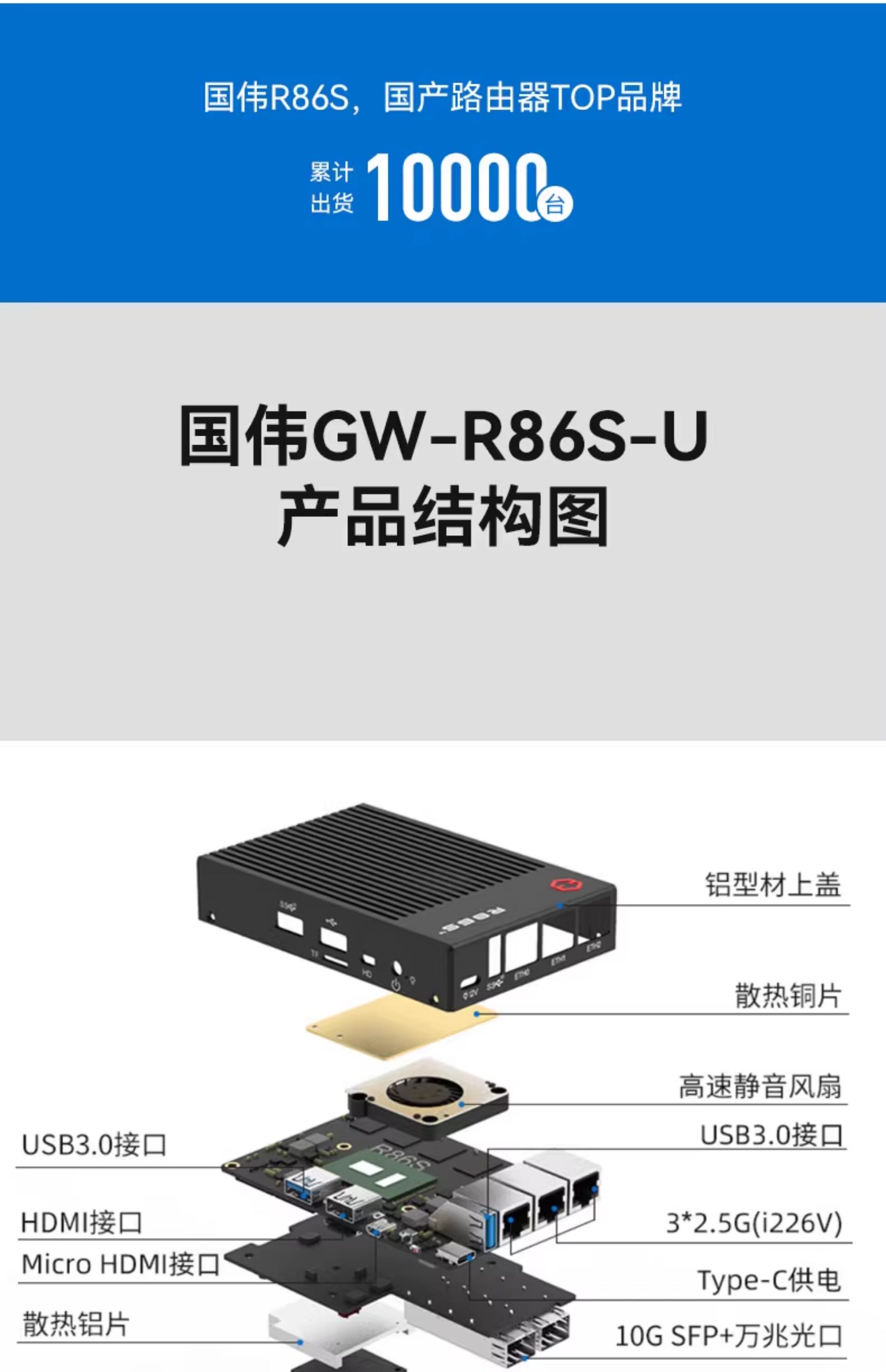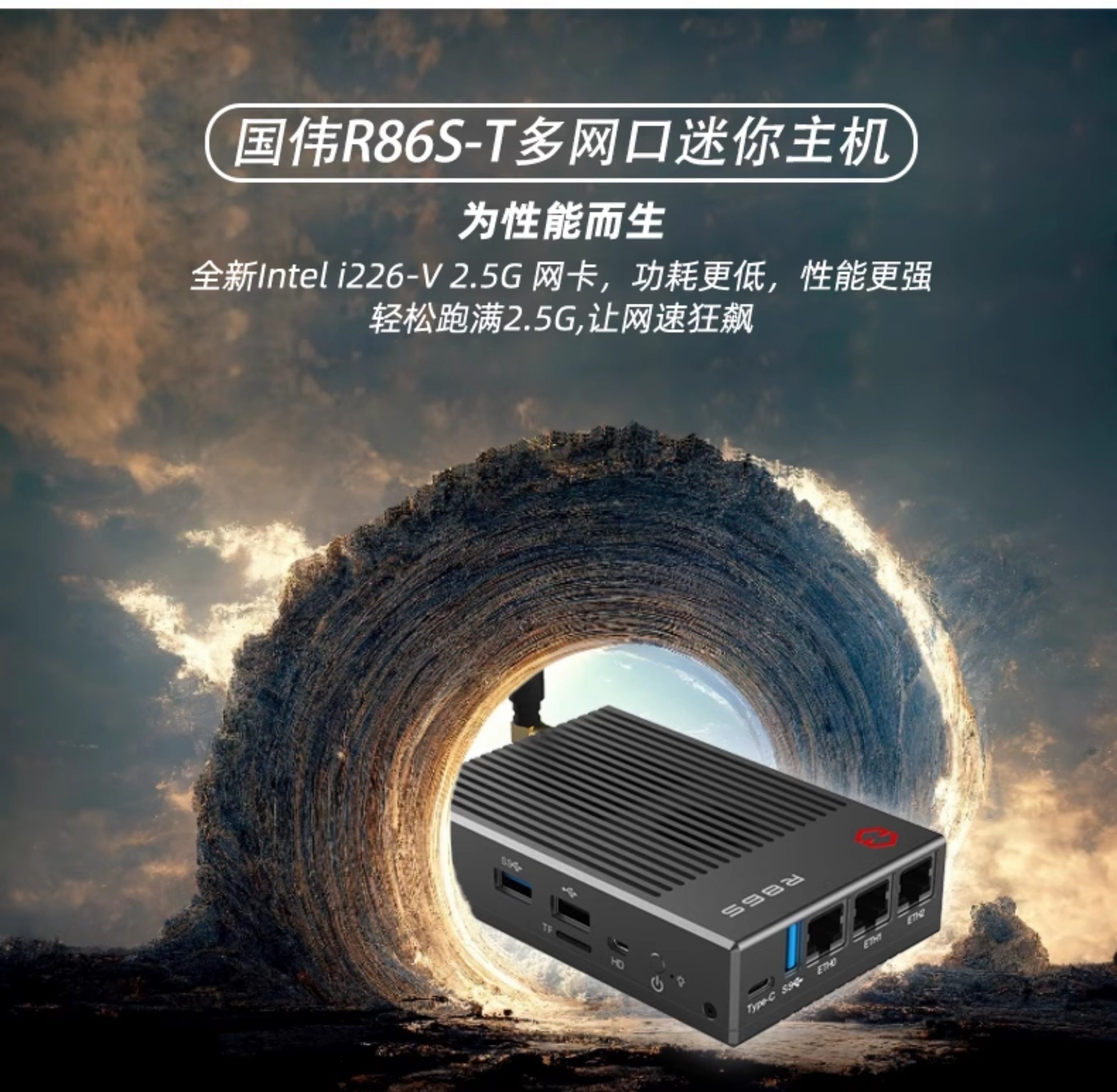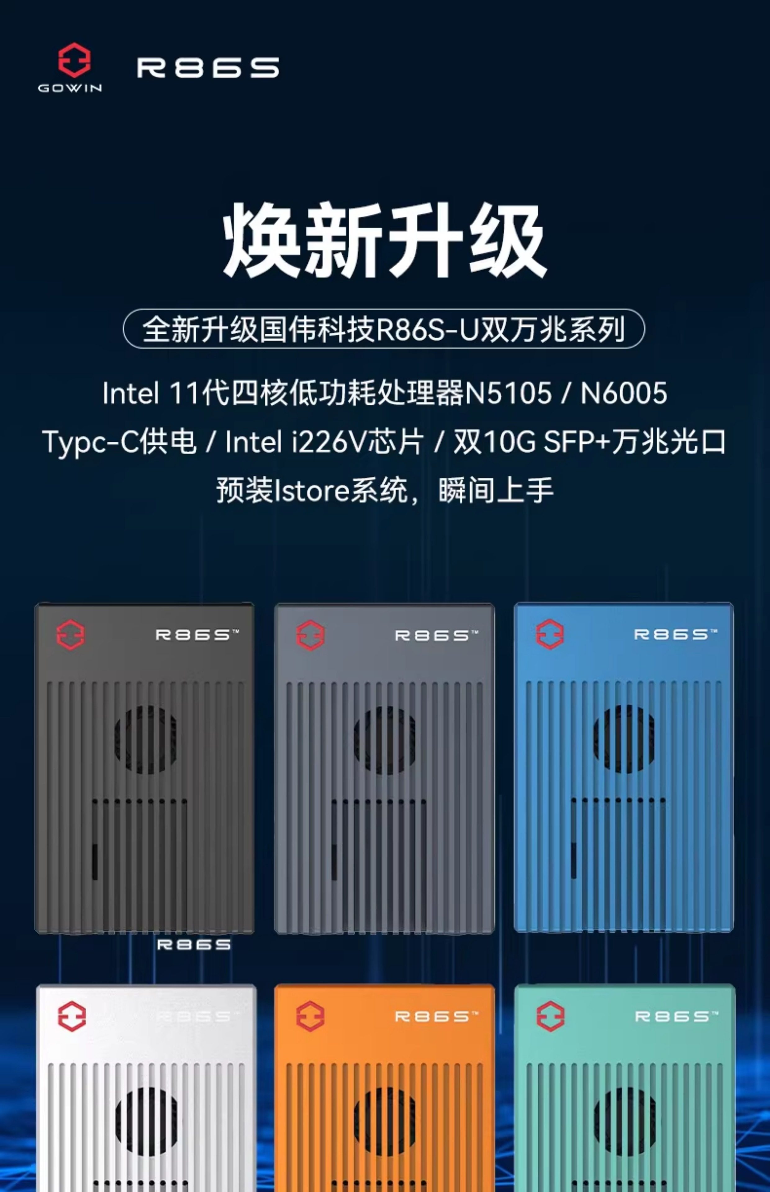 New Guowei R86S 10 Gigabit Optical Port Router 2.5g Multi-Network Port I226Vn6005 Industrial Control Host