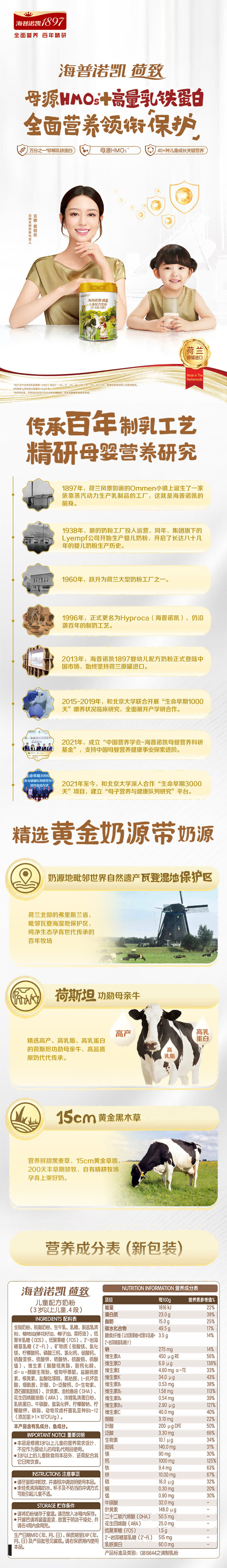 Hepnokai 1897 Dutch Imported Formula Milk Powder for Kidsren and Students, Stage 4 (3-6 Years Old)